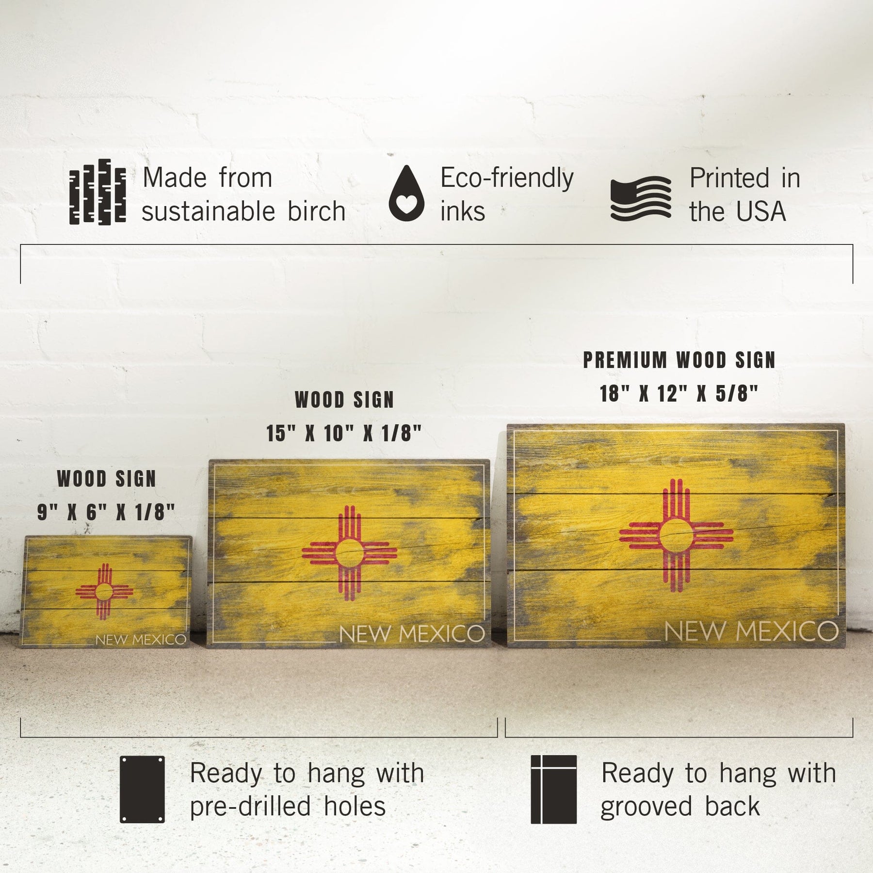Rustic New Mexico State Flag, Lantern Press Artwork, Wood Signs and Postcards