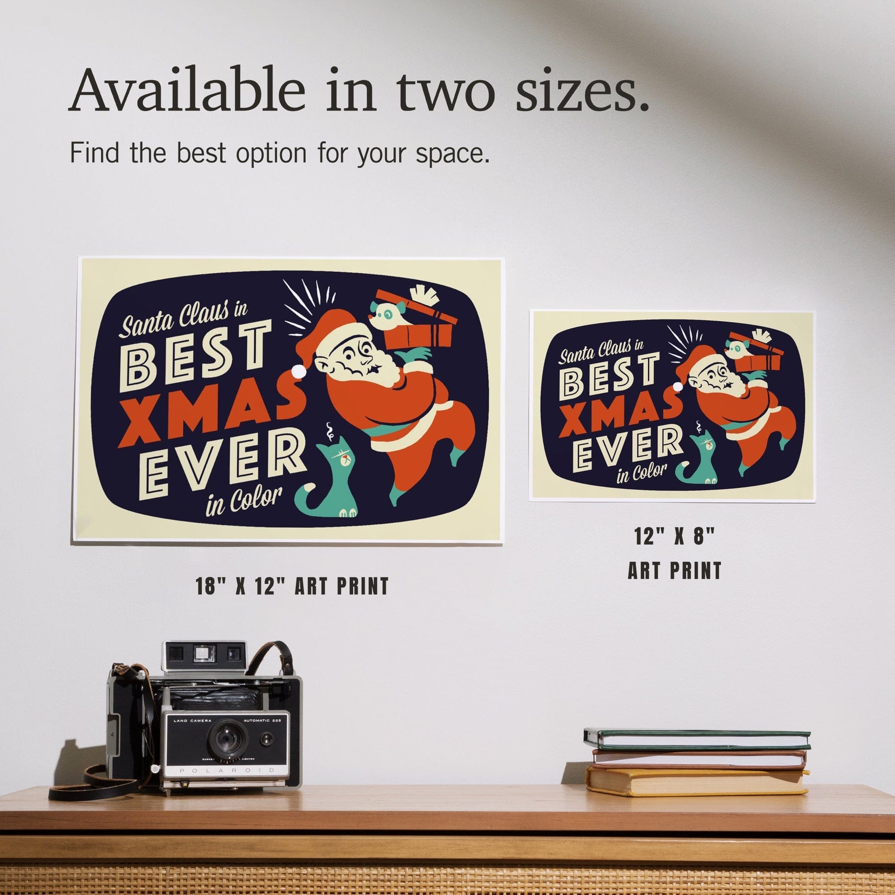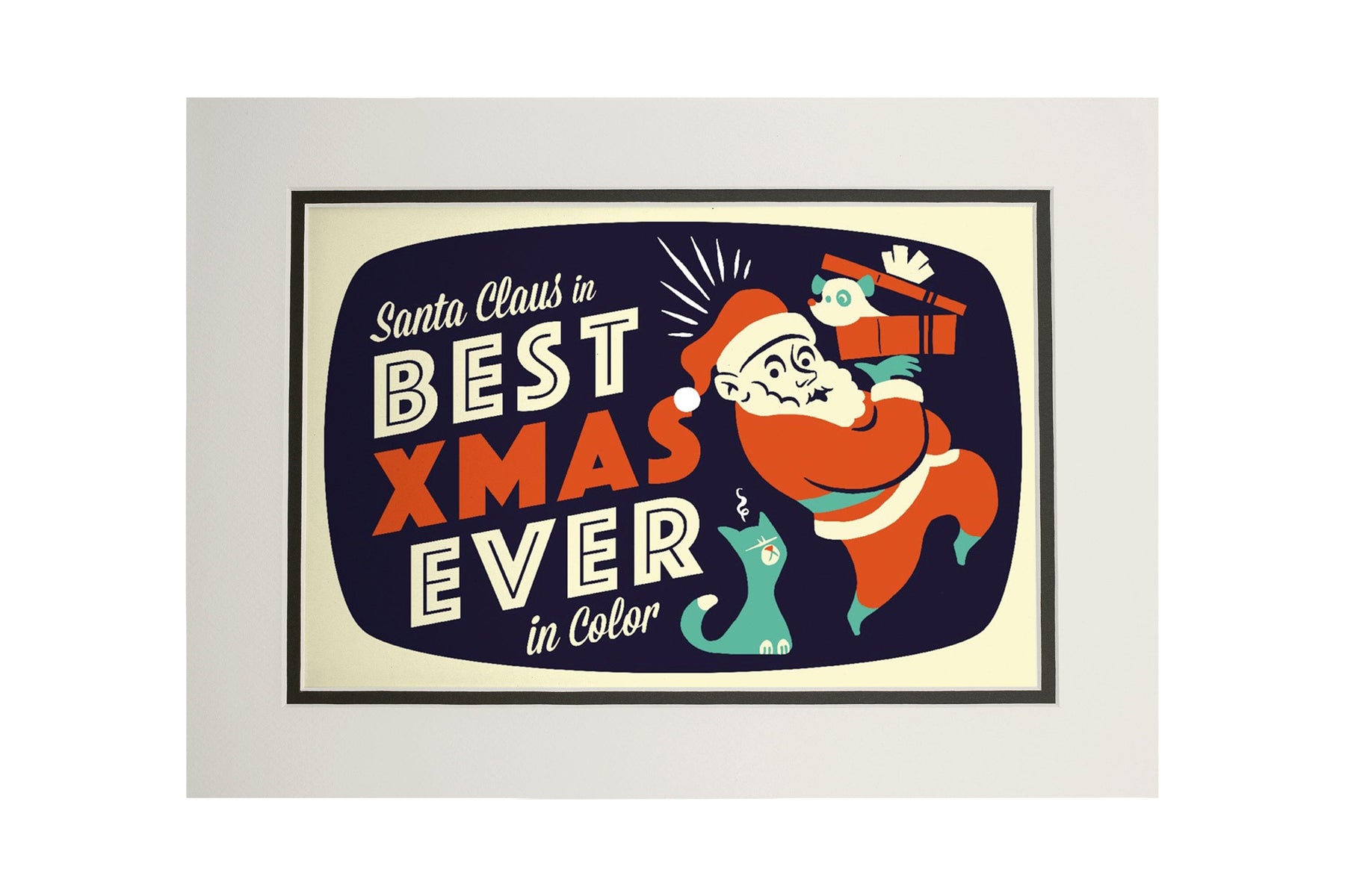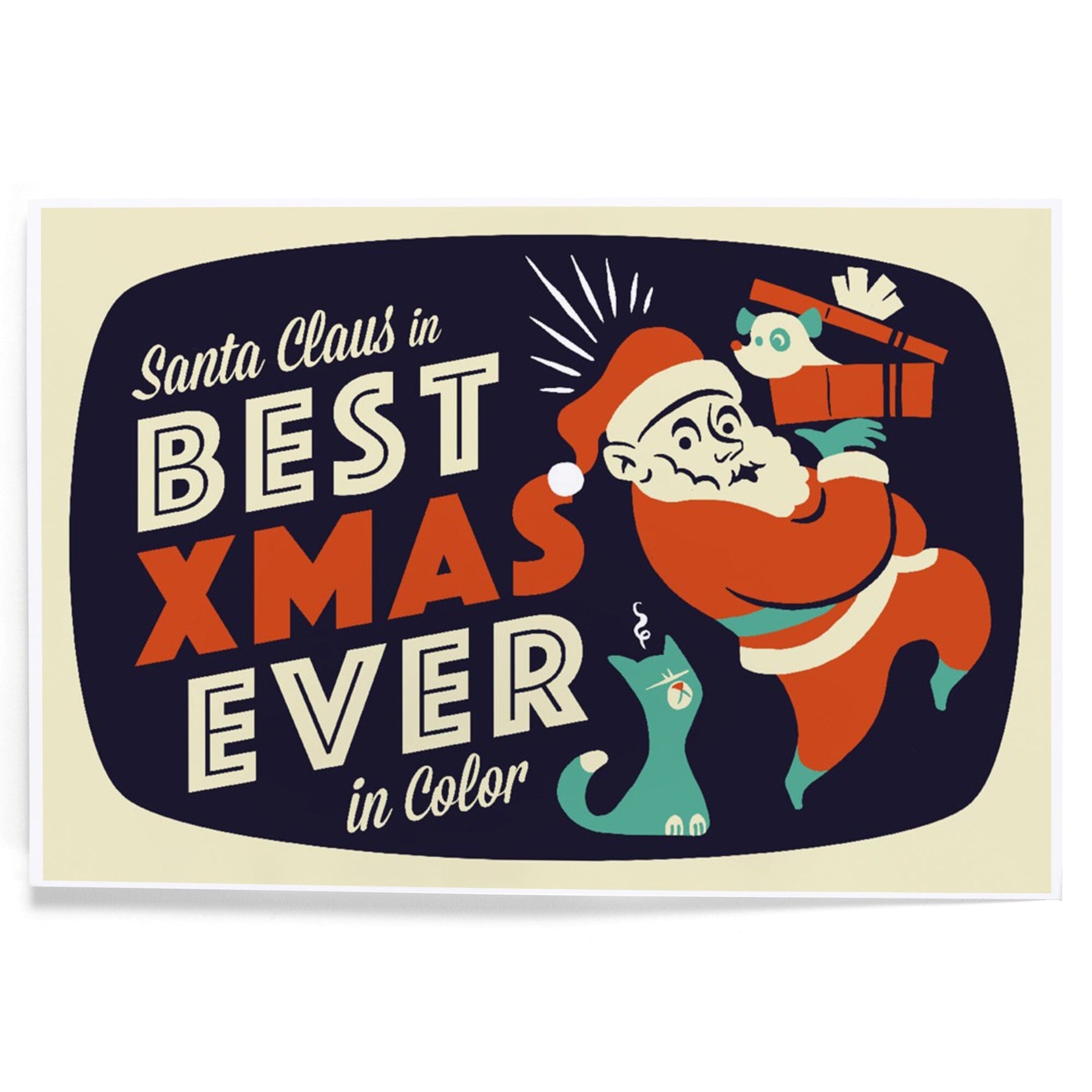 Santa on Television, Retro Christmas, Art & Giclee Prints