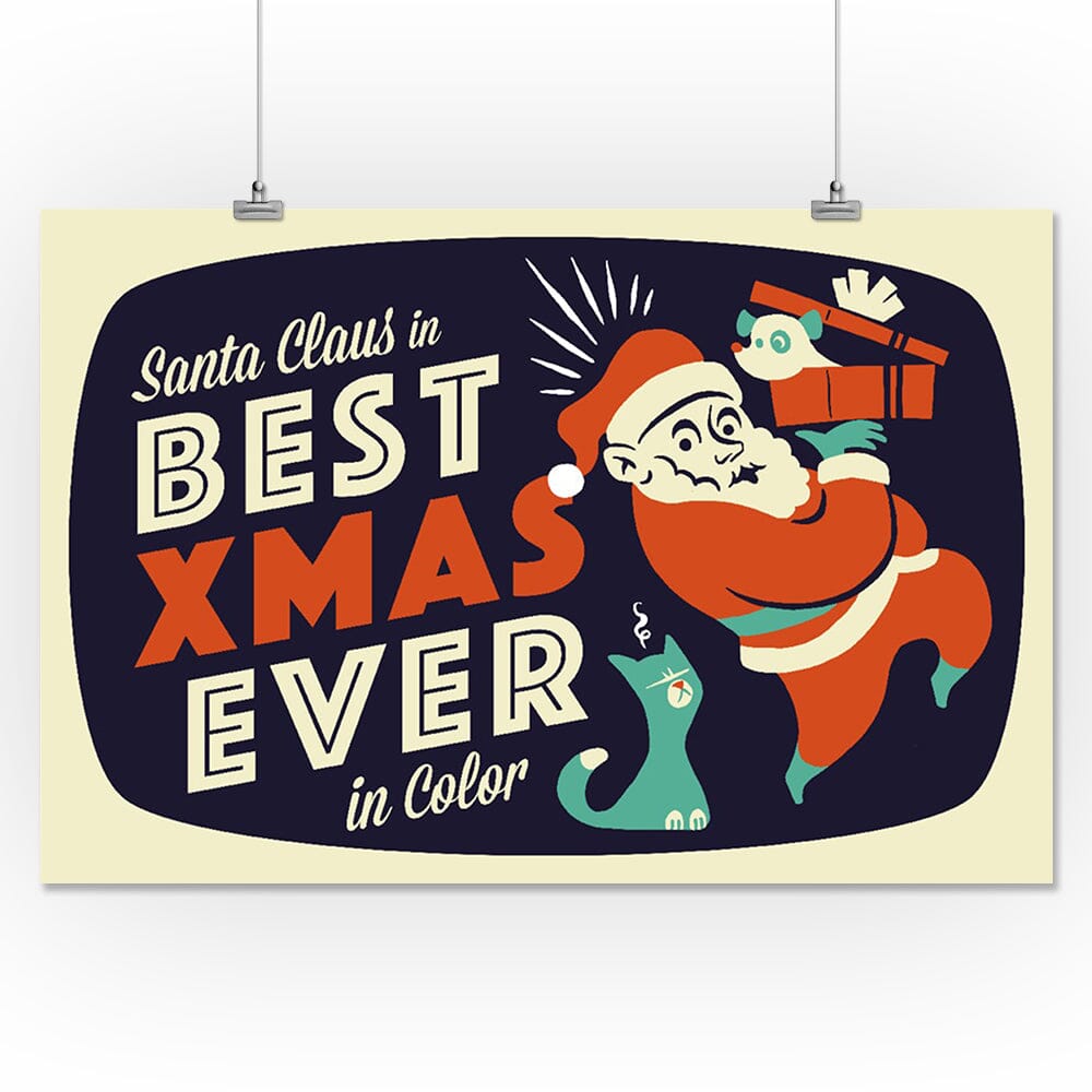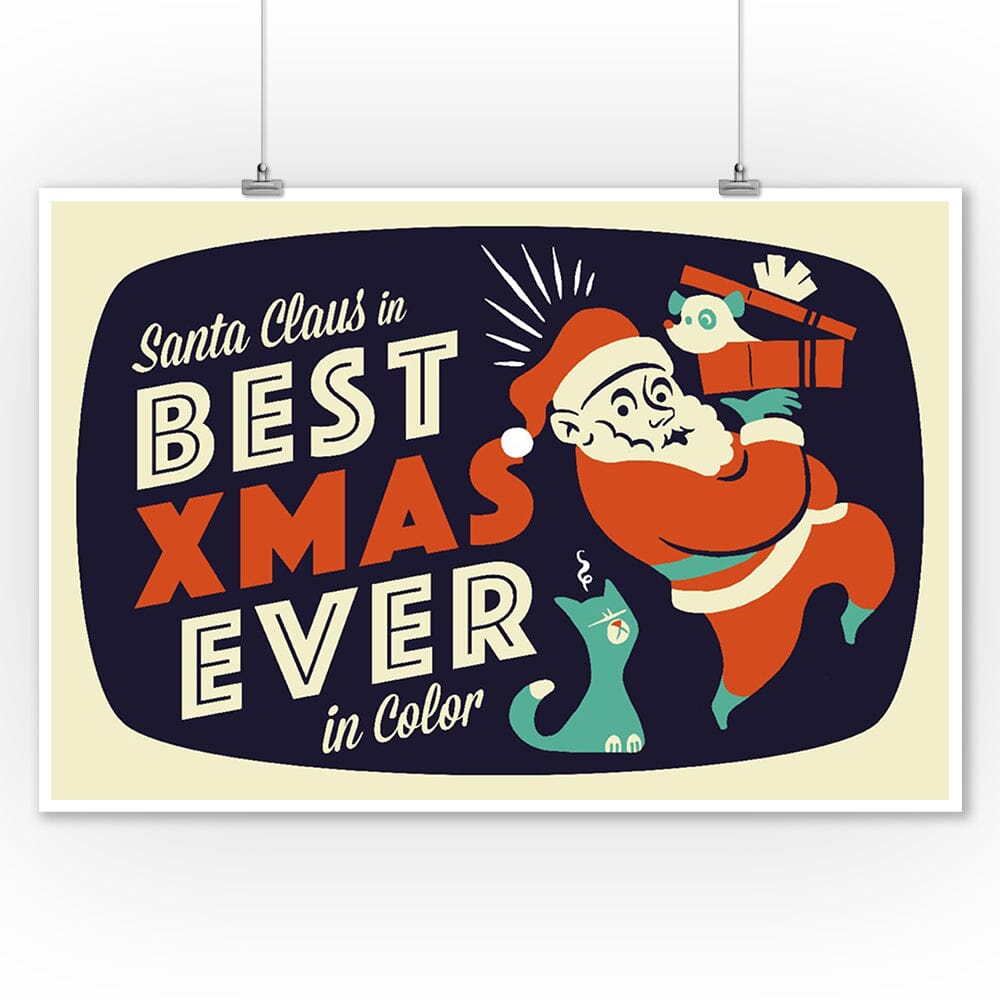 Santa on Television, Retro Christmas, Art & Giclee Prints Art Lantern Press