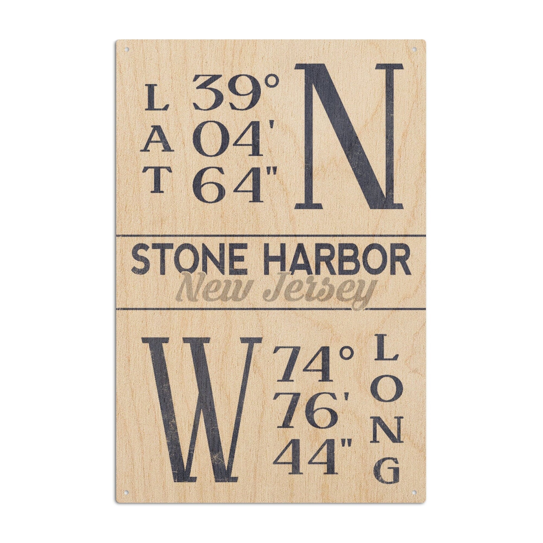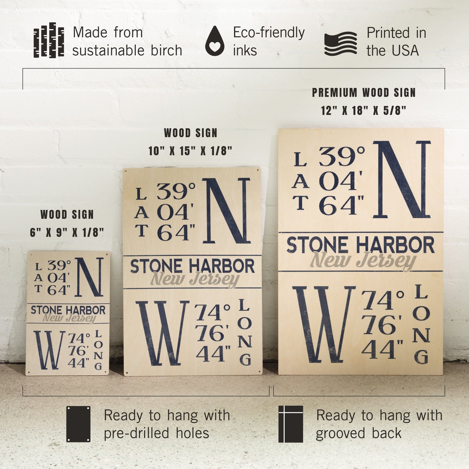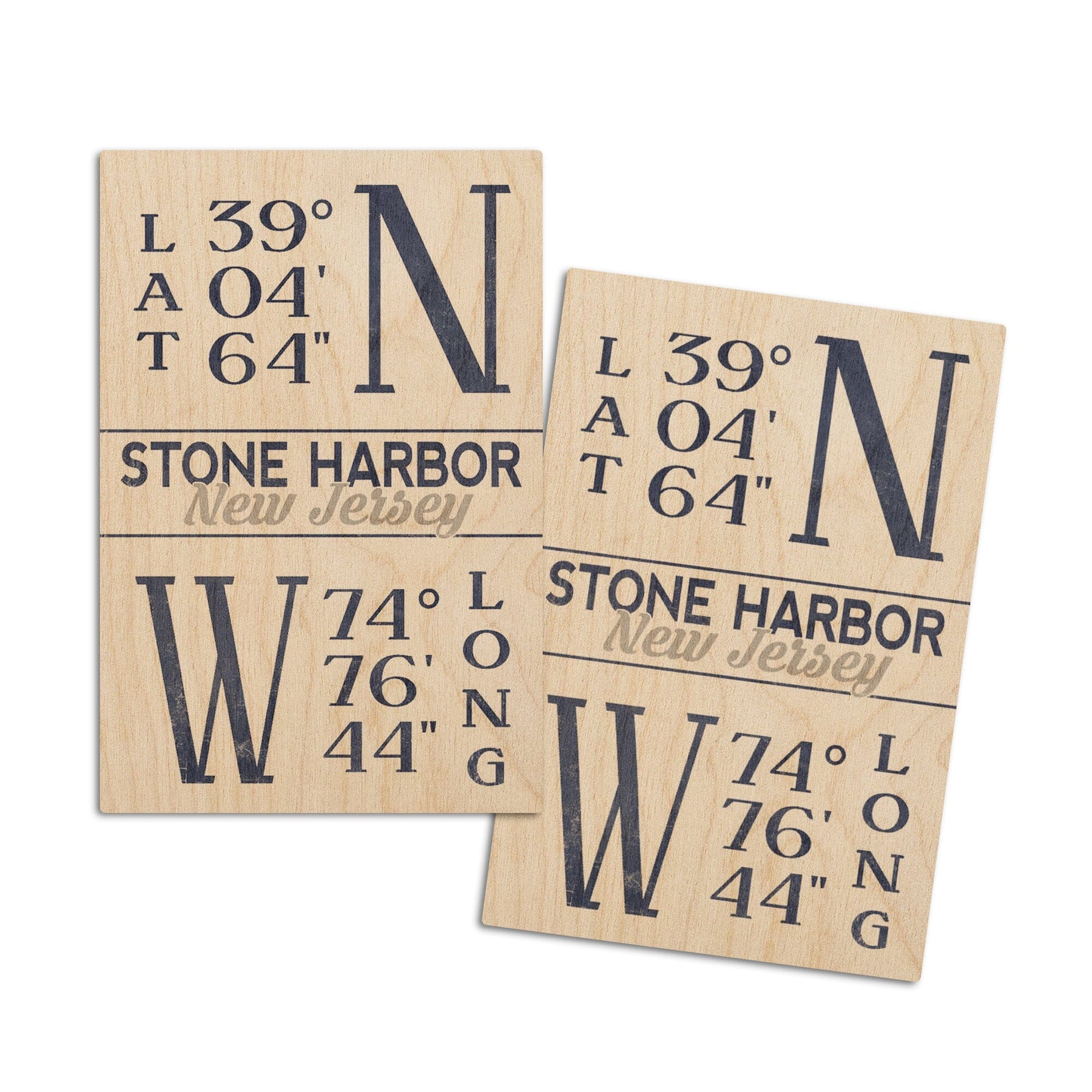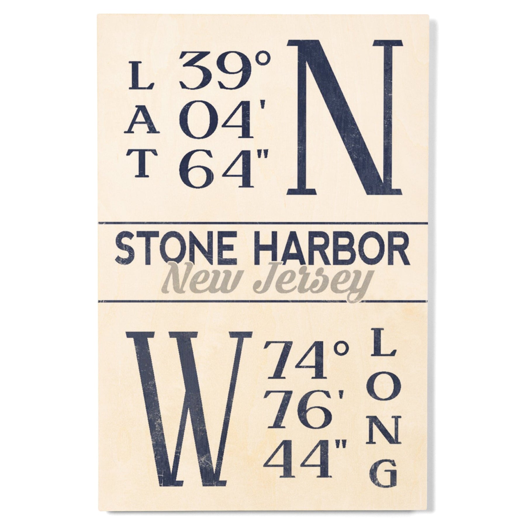 Stone Harbor, New Jersey, Latitude & Longitude (Blue), Lantern Press Artwork, Wood Signs and Postcards Wood Lantern Press