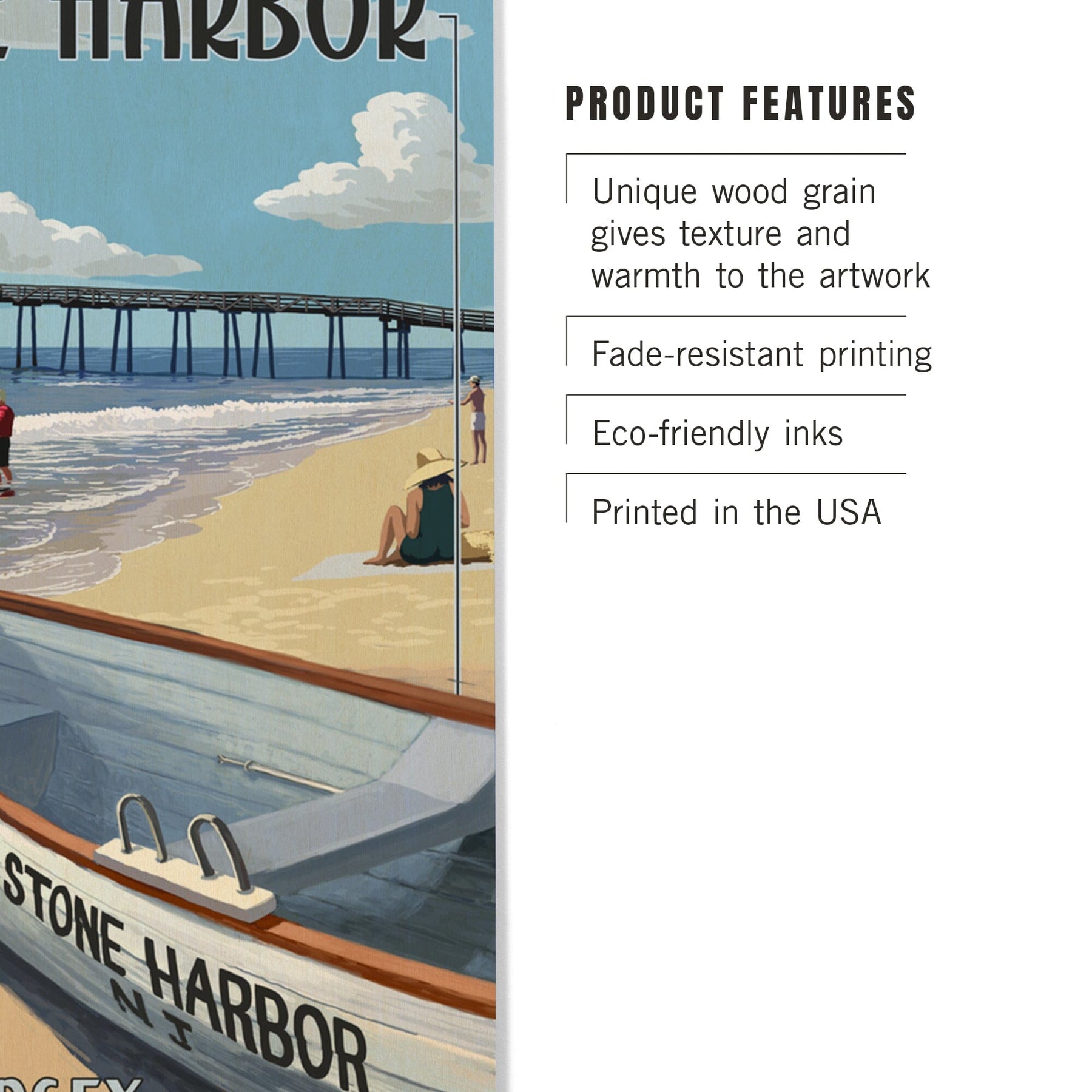 Stone Harbor, New Jersey, Lifeboat, Lantern Press Poster, Wood Signs and Postcards Wood Lantern Press