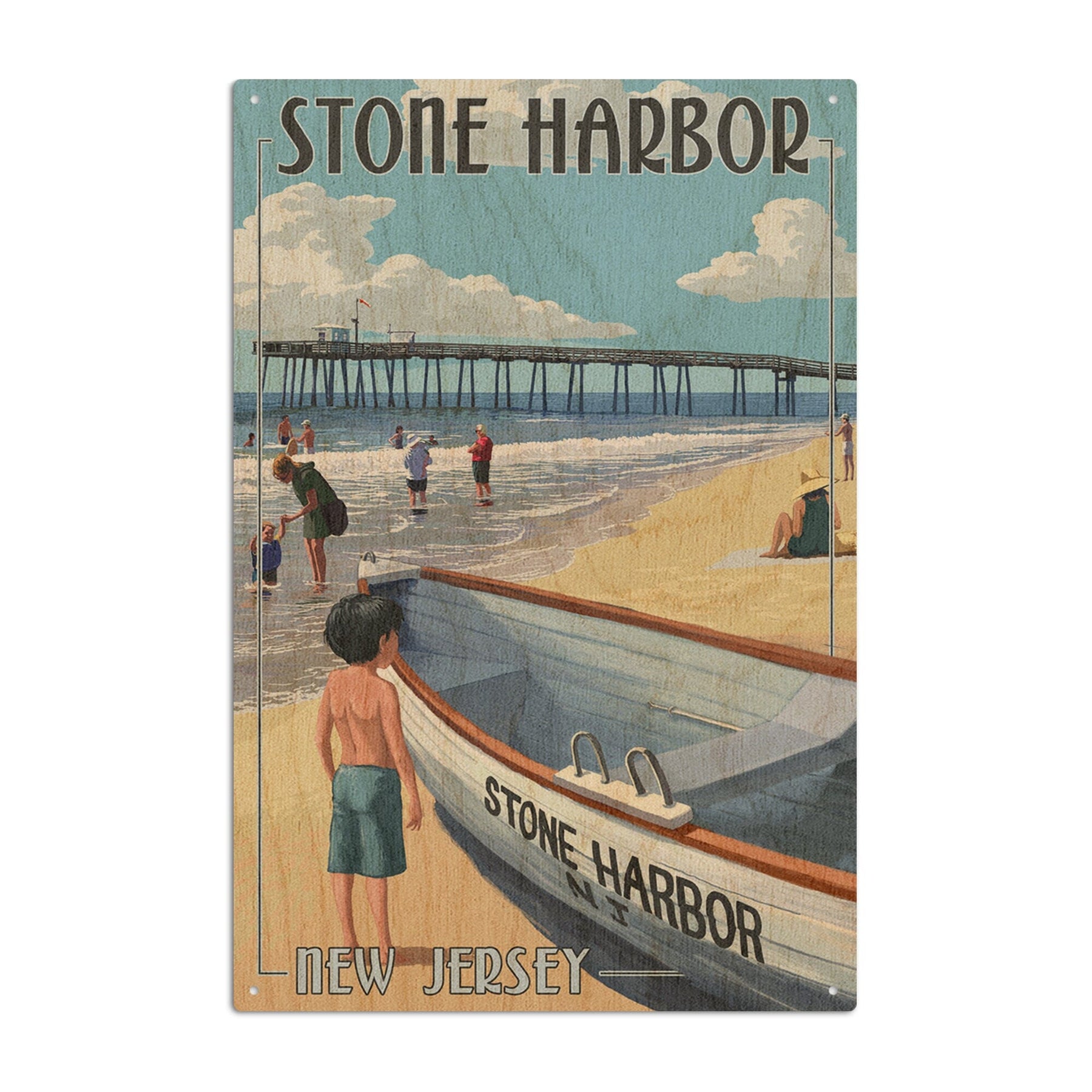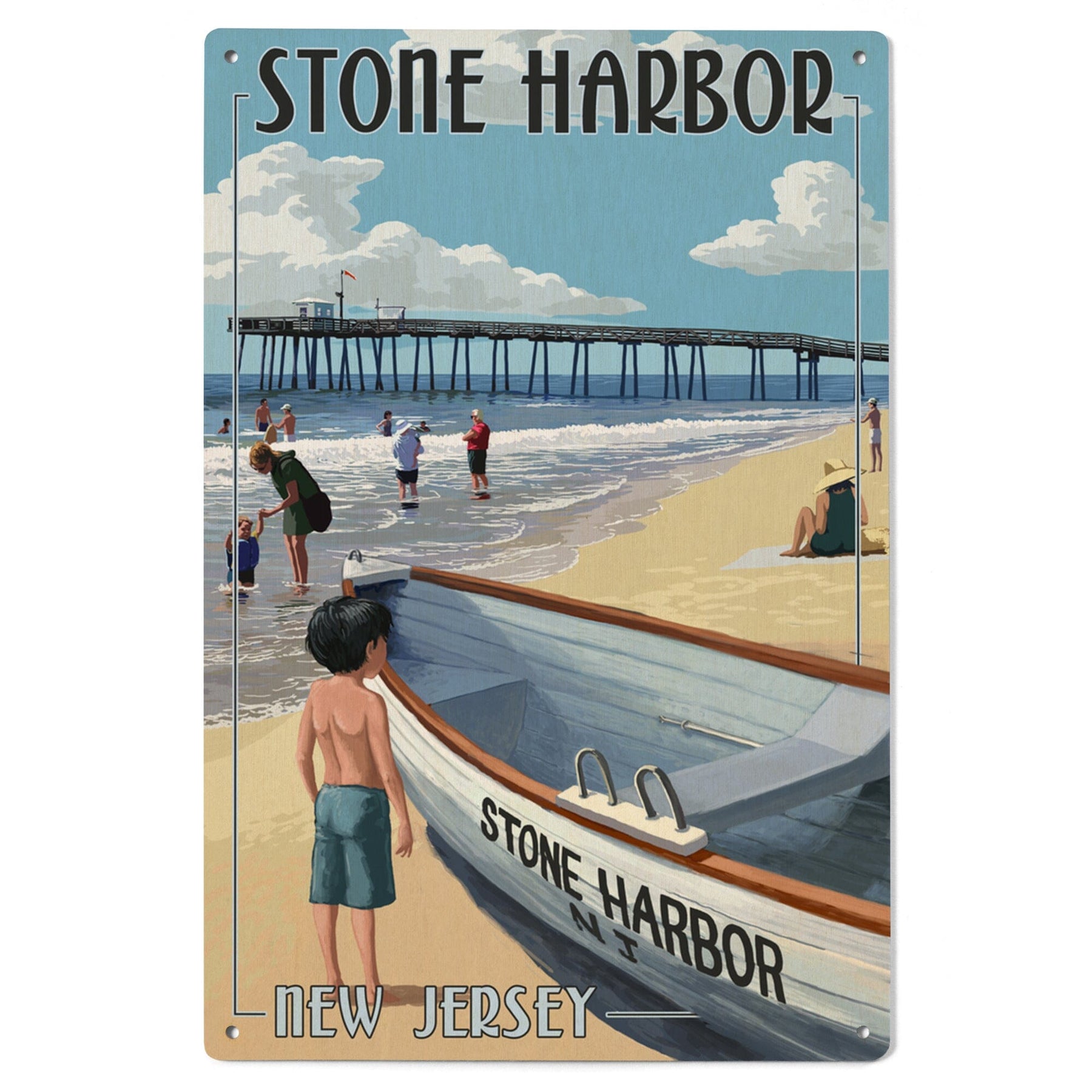 Stone Harbor, New Jersey, Lifeboat, Lantern Press Poster, Wood Signs and Postcards