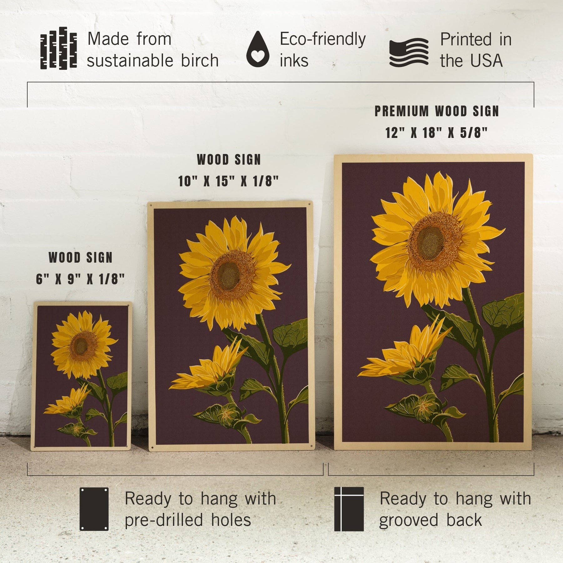 Sunflowers, Letterpress, Lantern Press Artwork, Wood Signs and Postcards Wood Lantern Press