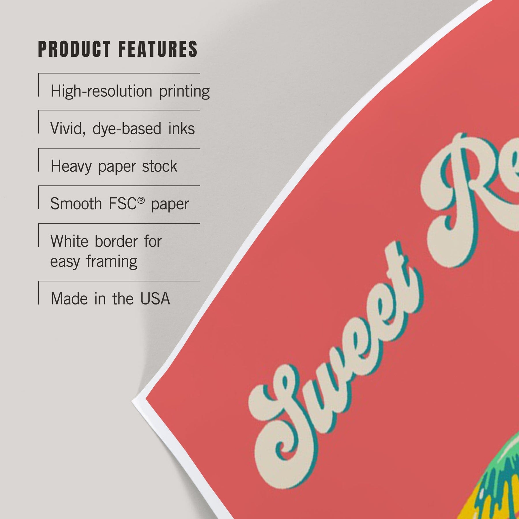 • Art prints include white borders along all edges of at least 1/4 inch