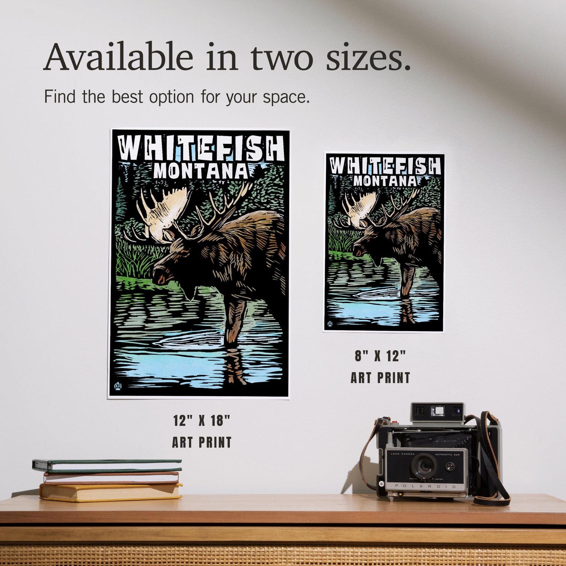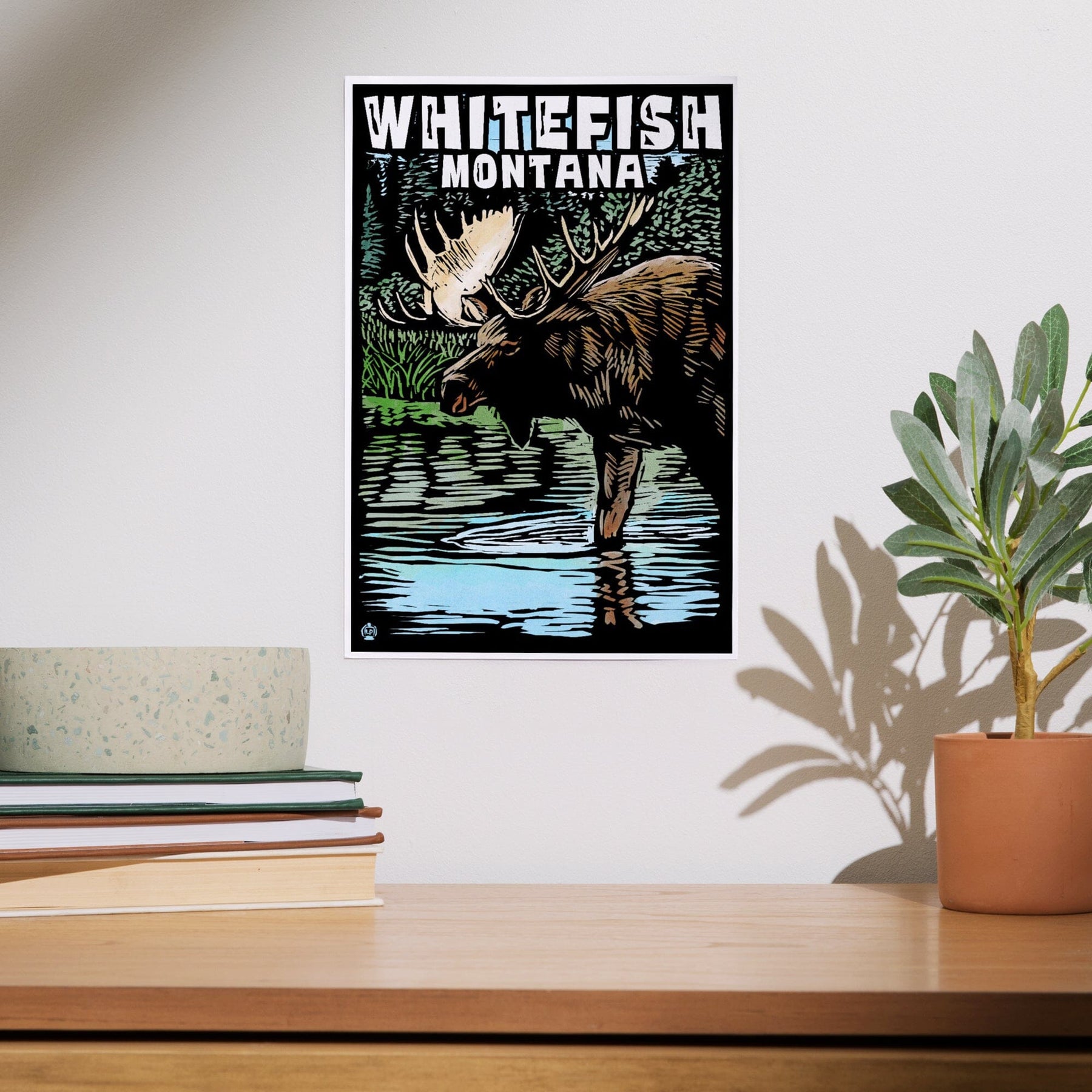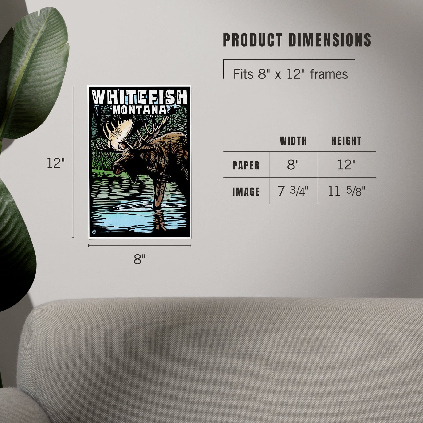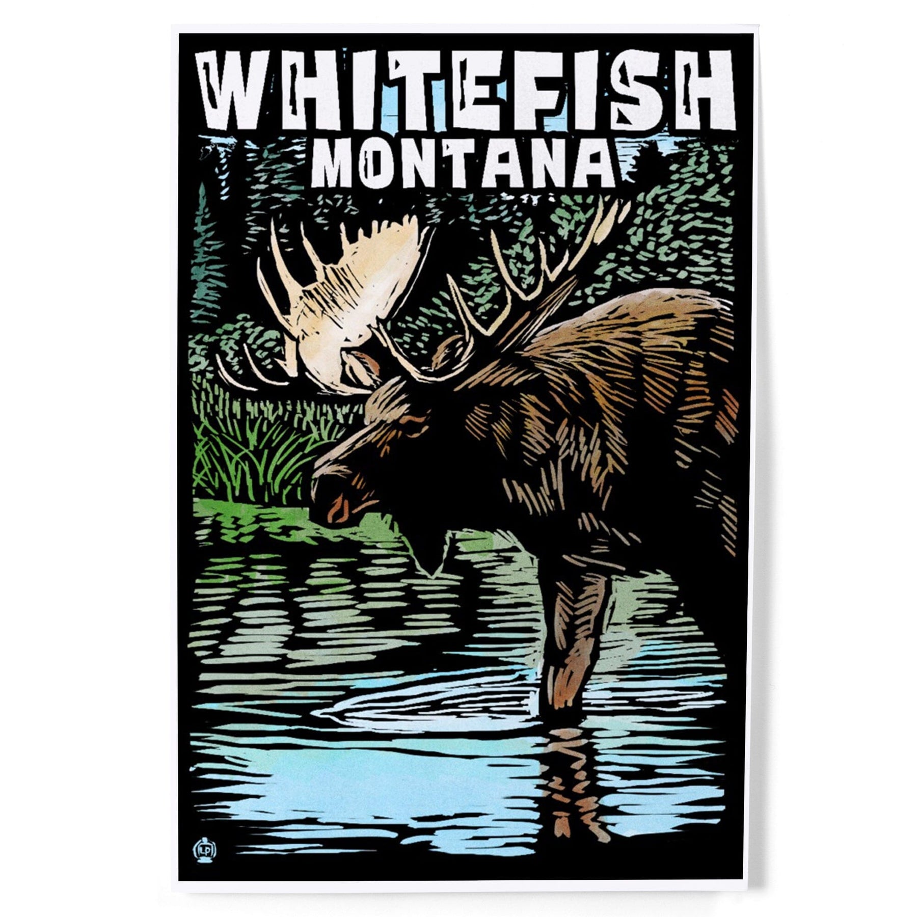 Whitefish, Montana, Moose, Scratchboard, Art & Giclee Prints Art Lantern Press