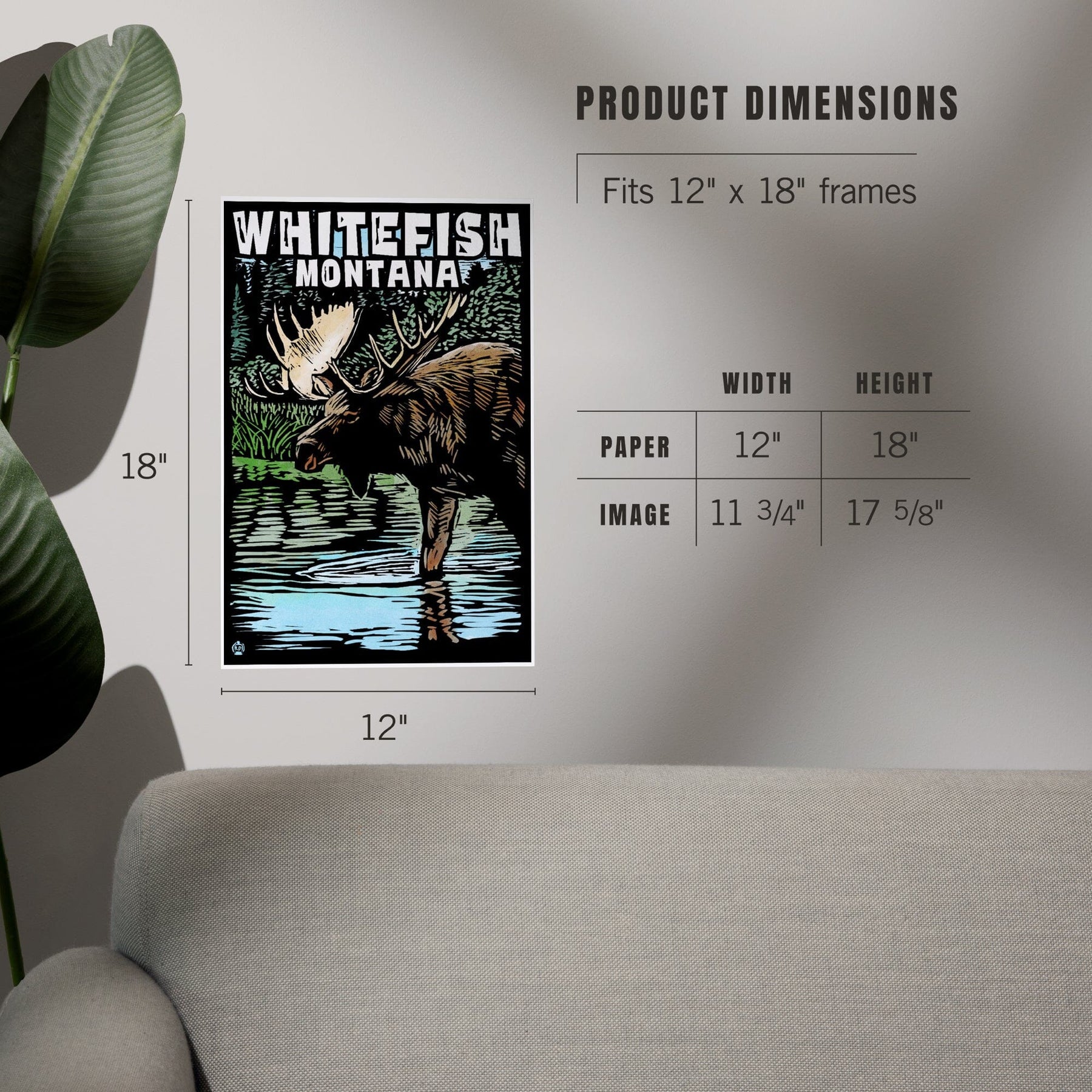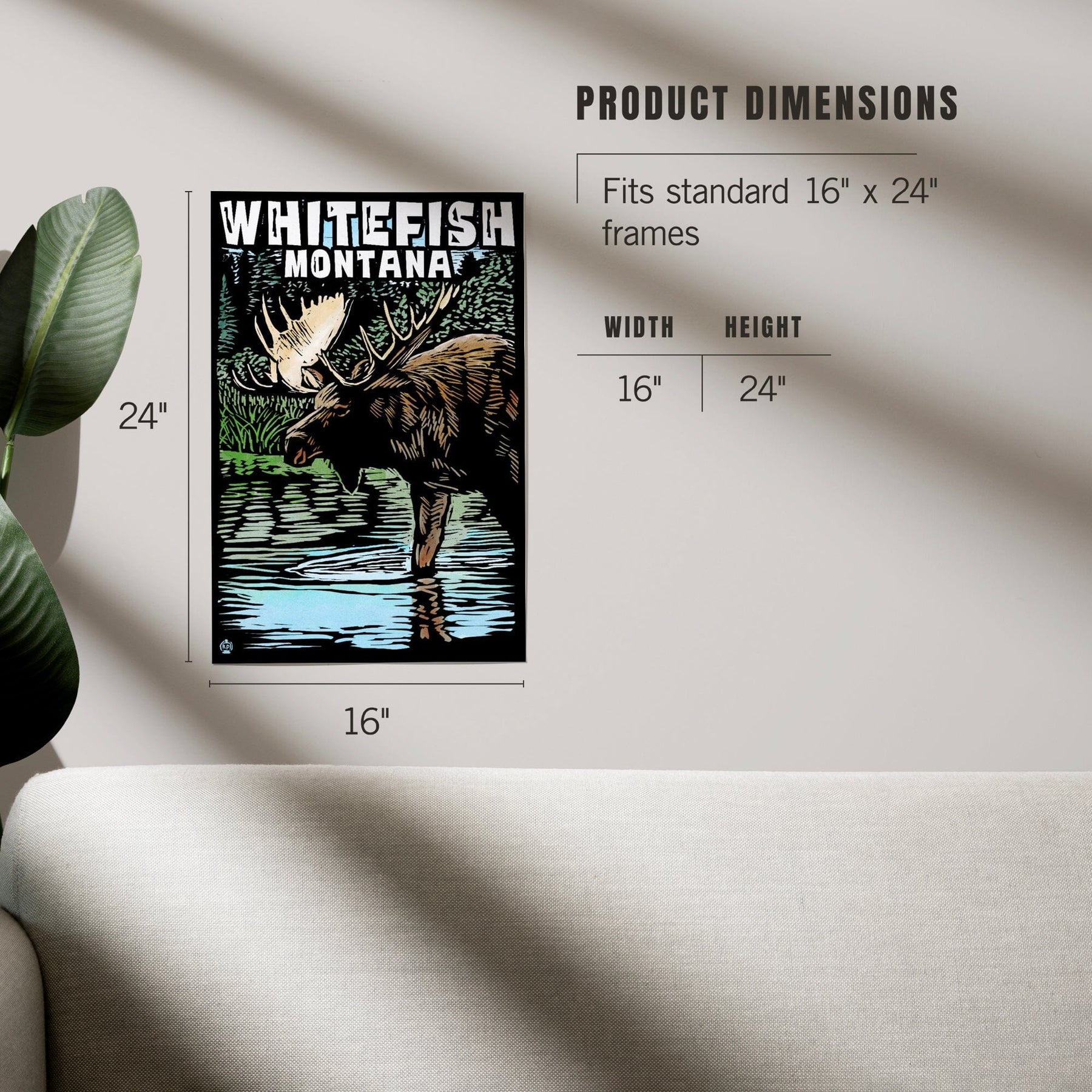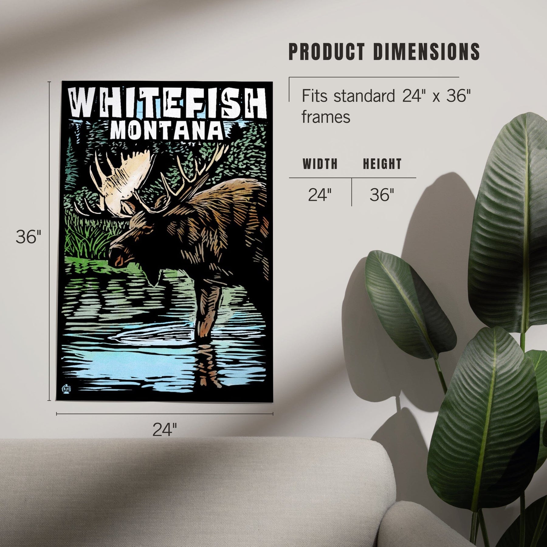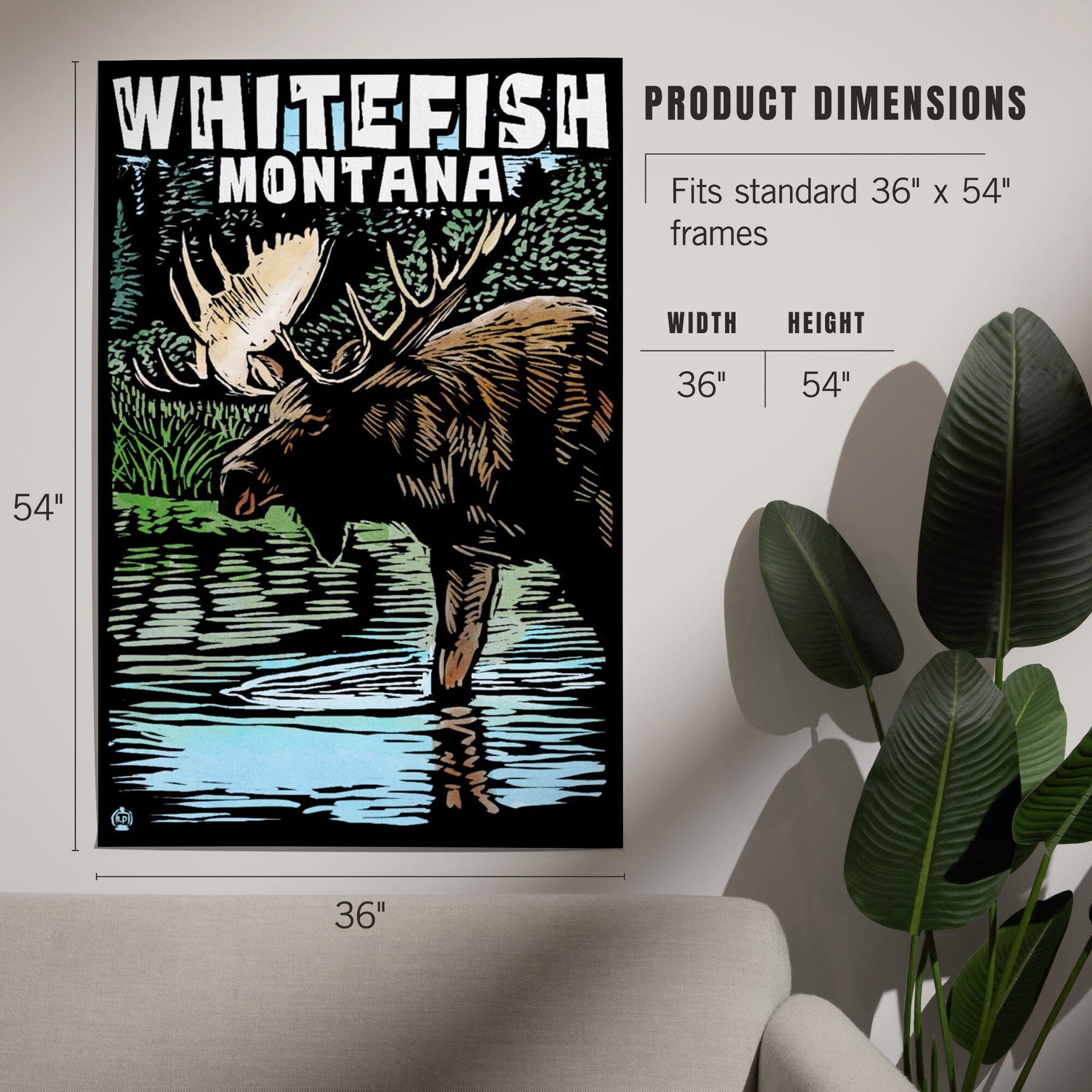 Whitefish, Montana, Moose, Scratchboard, Art & Giclee Prints Art Lantern Press