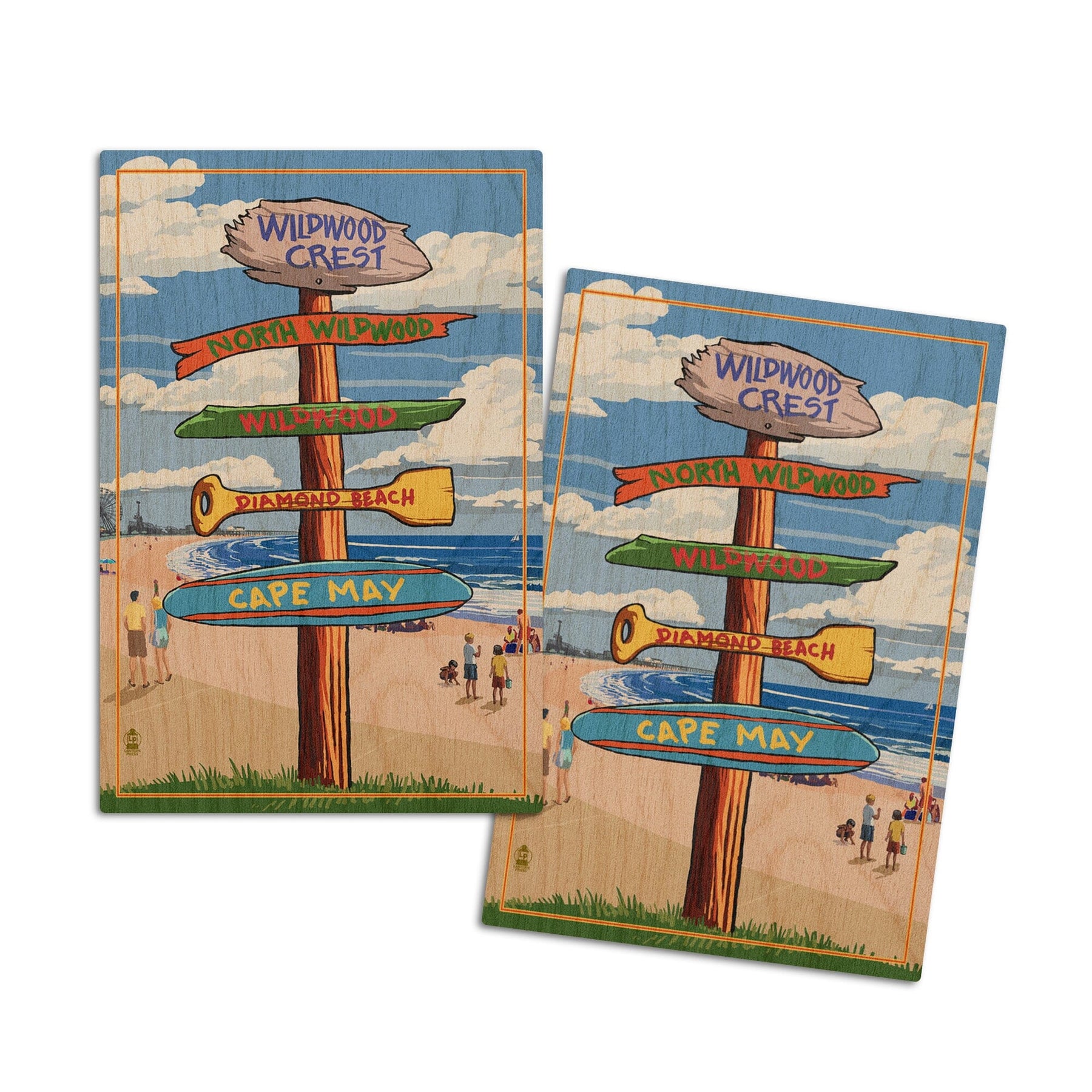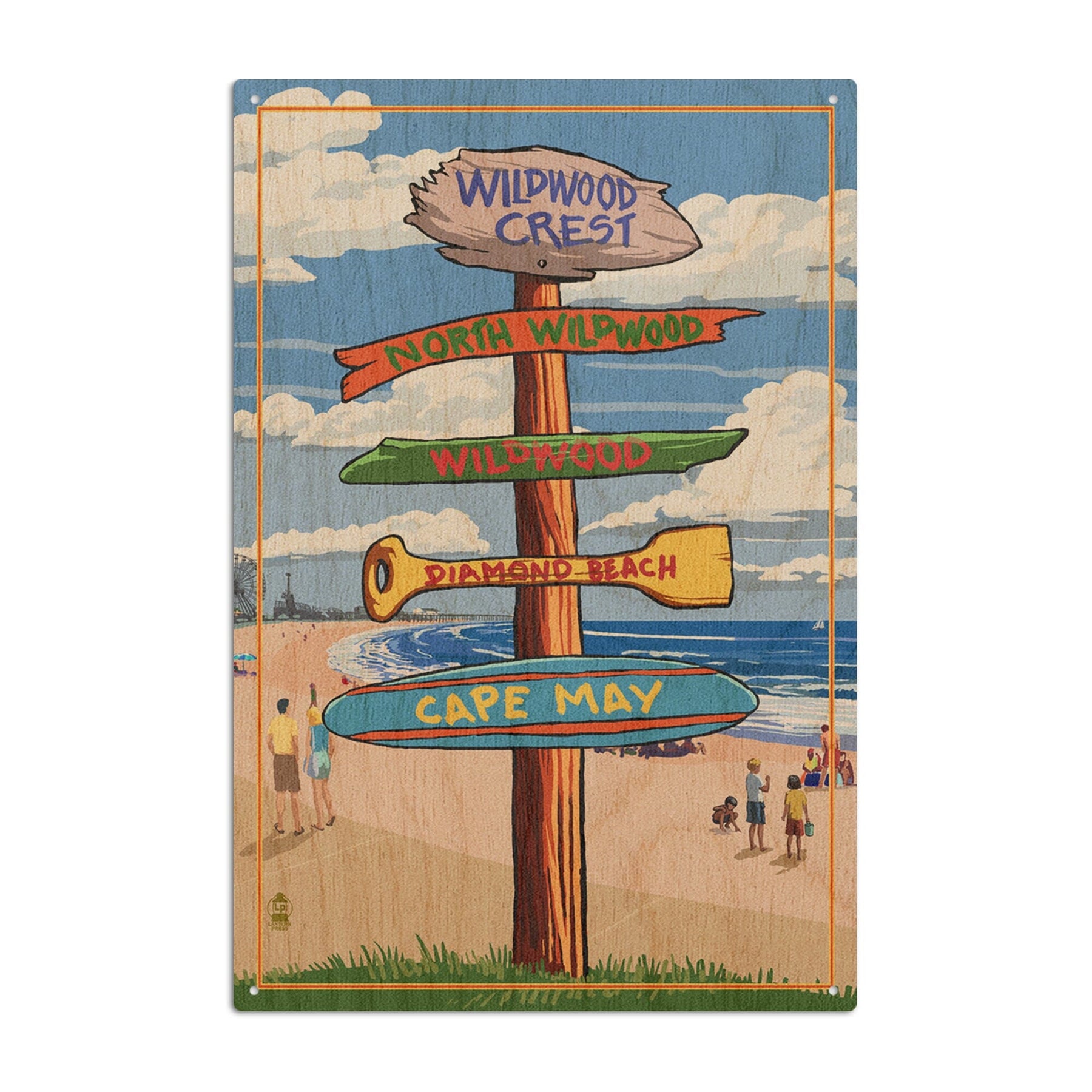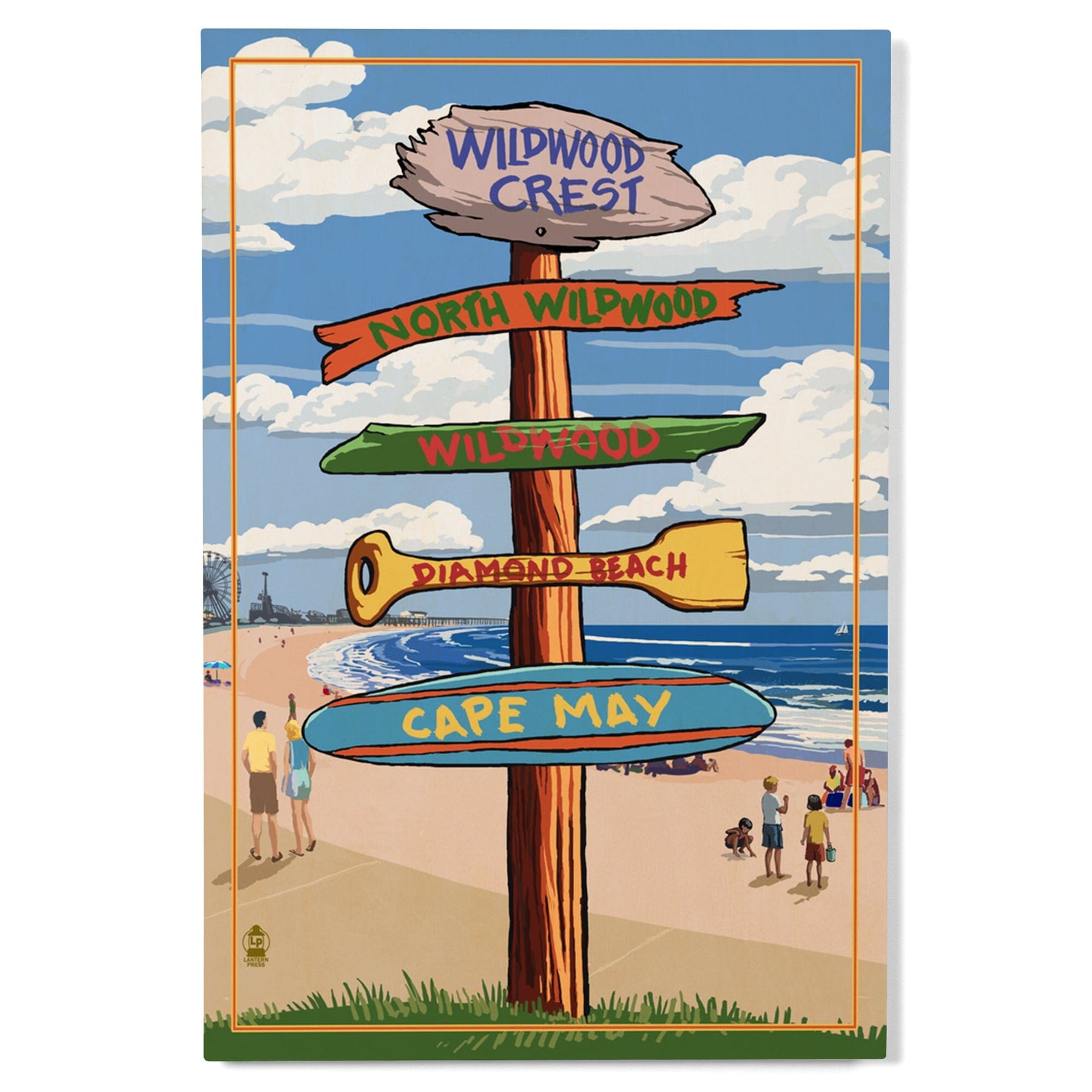 Wildwood Crest, New Jersey, Destinations Sign, Lantern Press Artwork, Wood Signs and Postcards