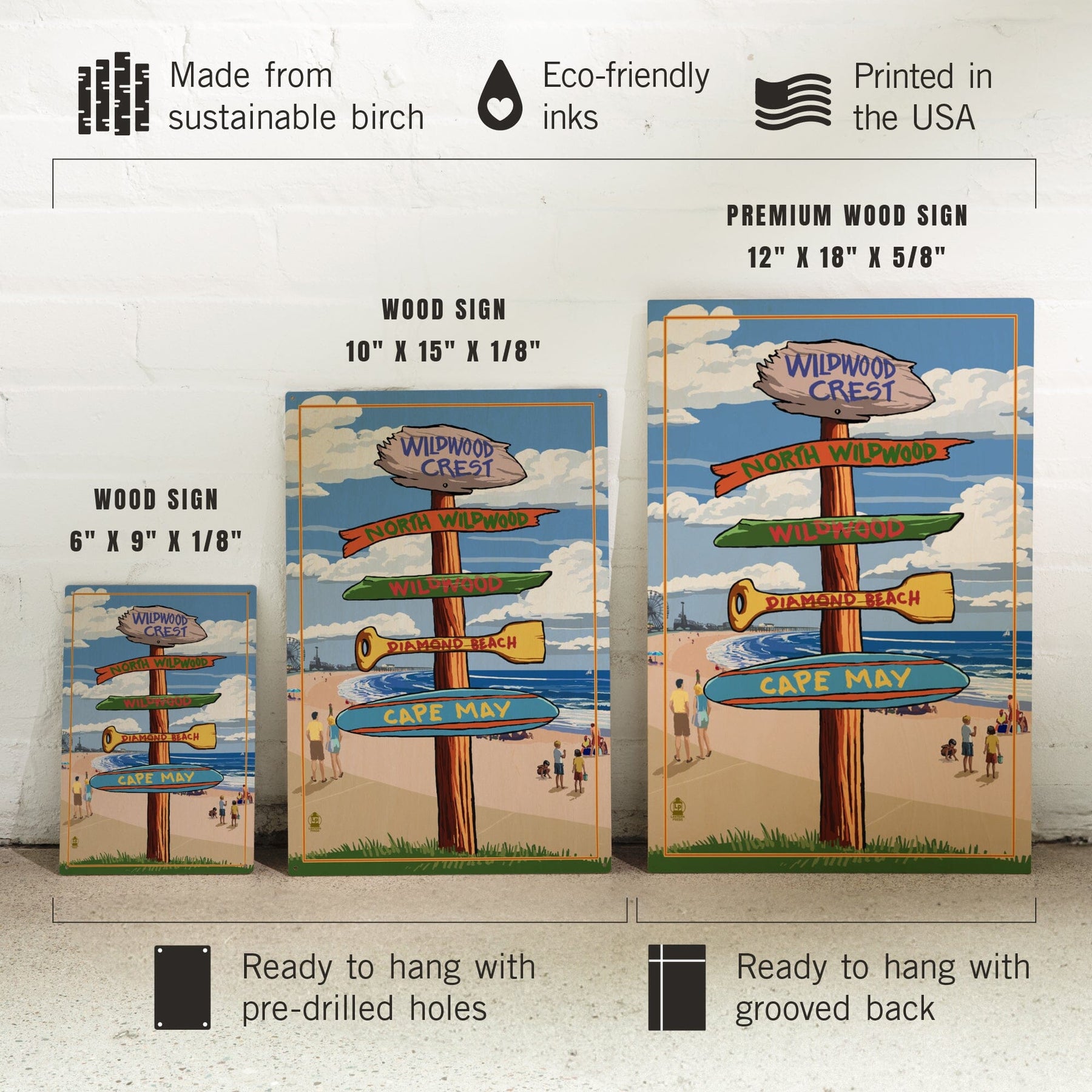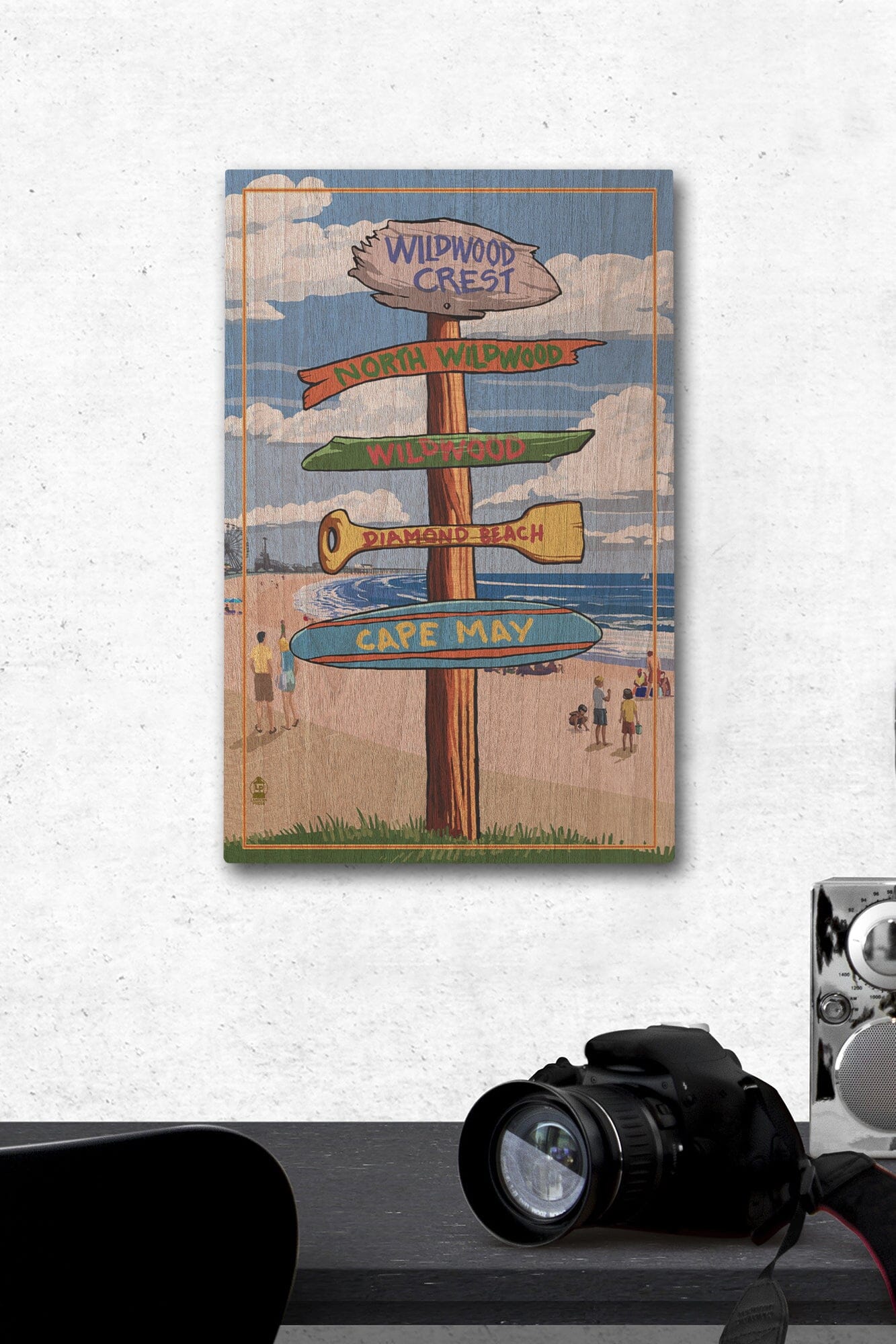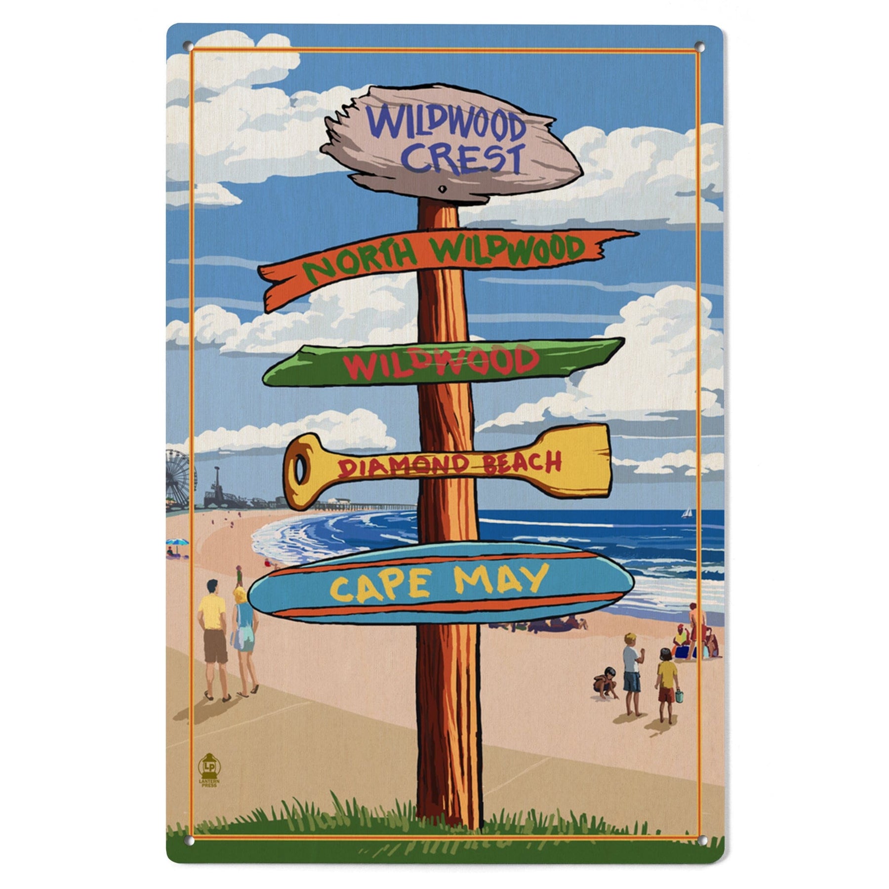 Wildwood Crest, New Jersey, Destinations Sign, Lantern Press Artwork, Wood Signs and Postcards