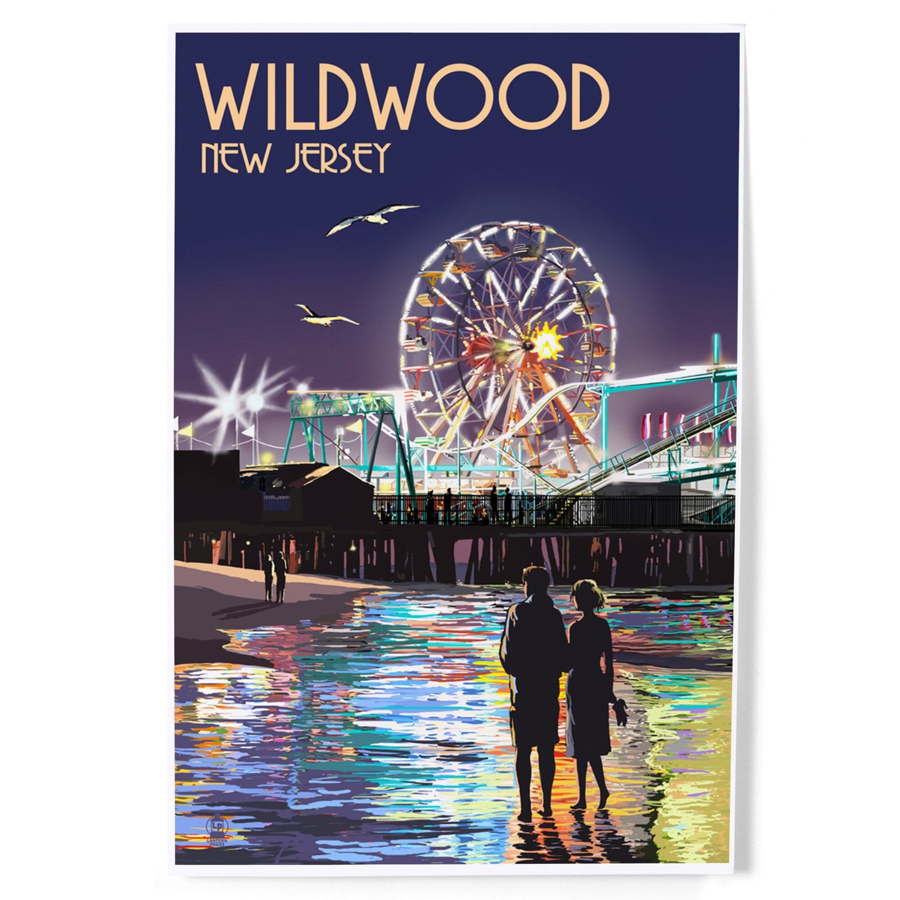 Wildwood, New Jersey, Pier and Rides at Night, Art & Giclee Prints Art Lantern Press