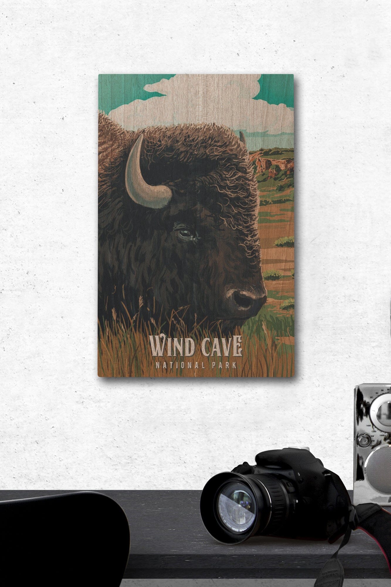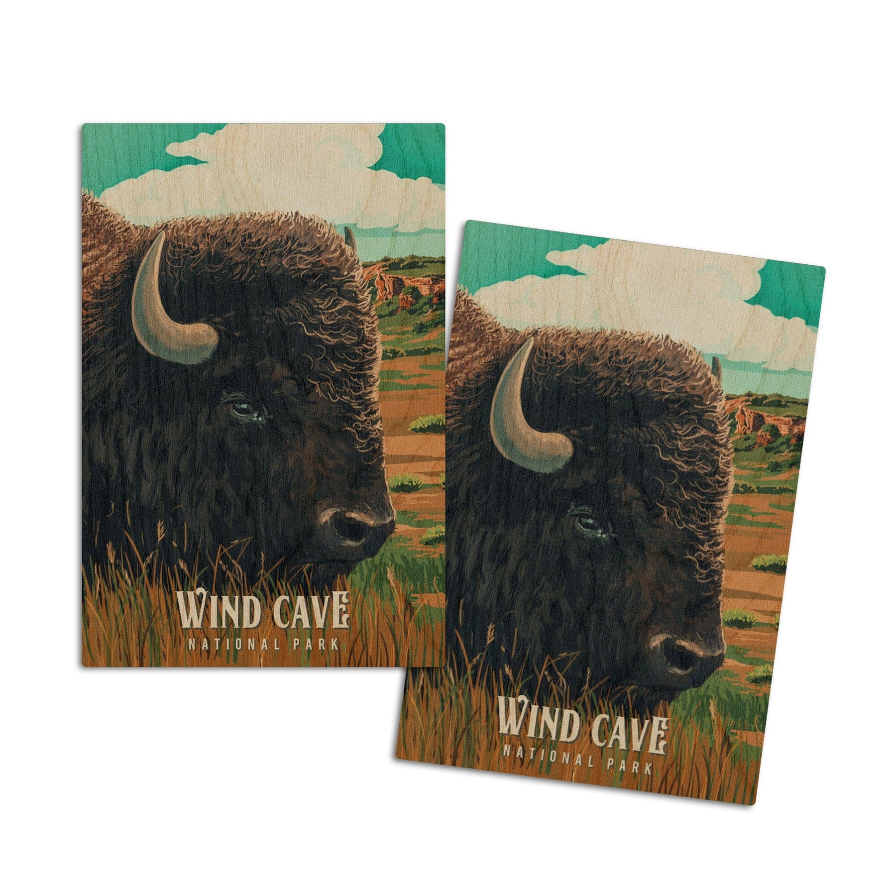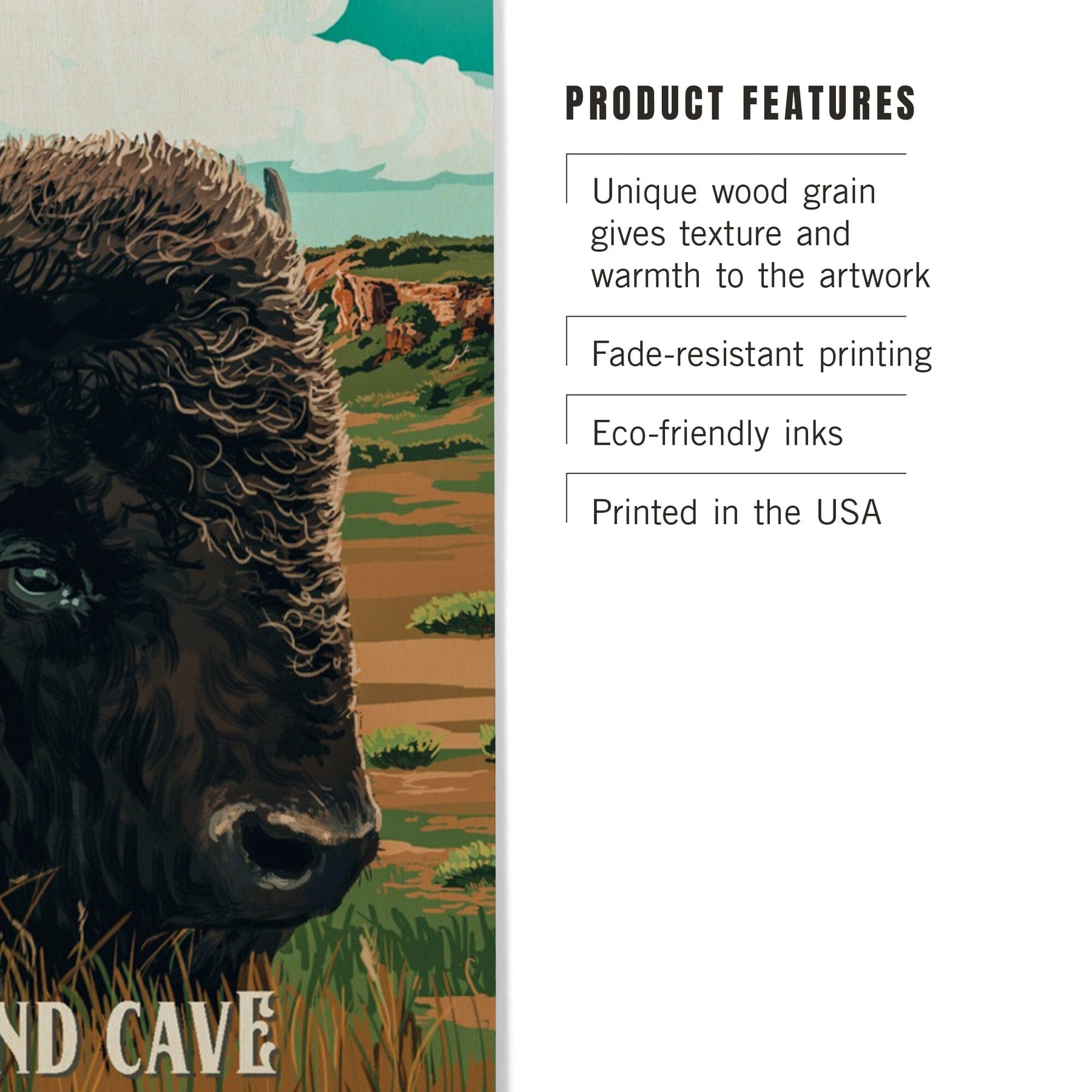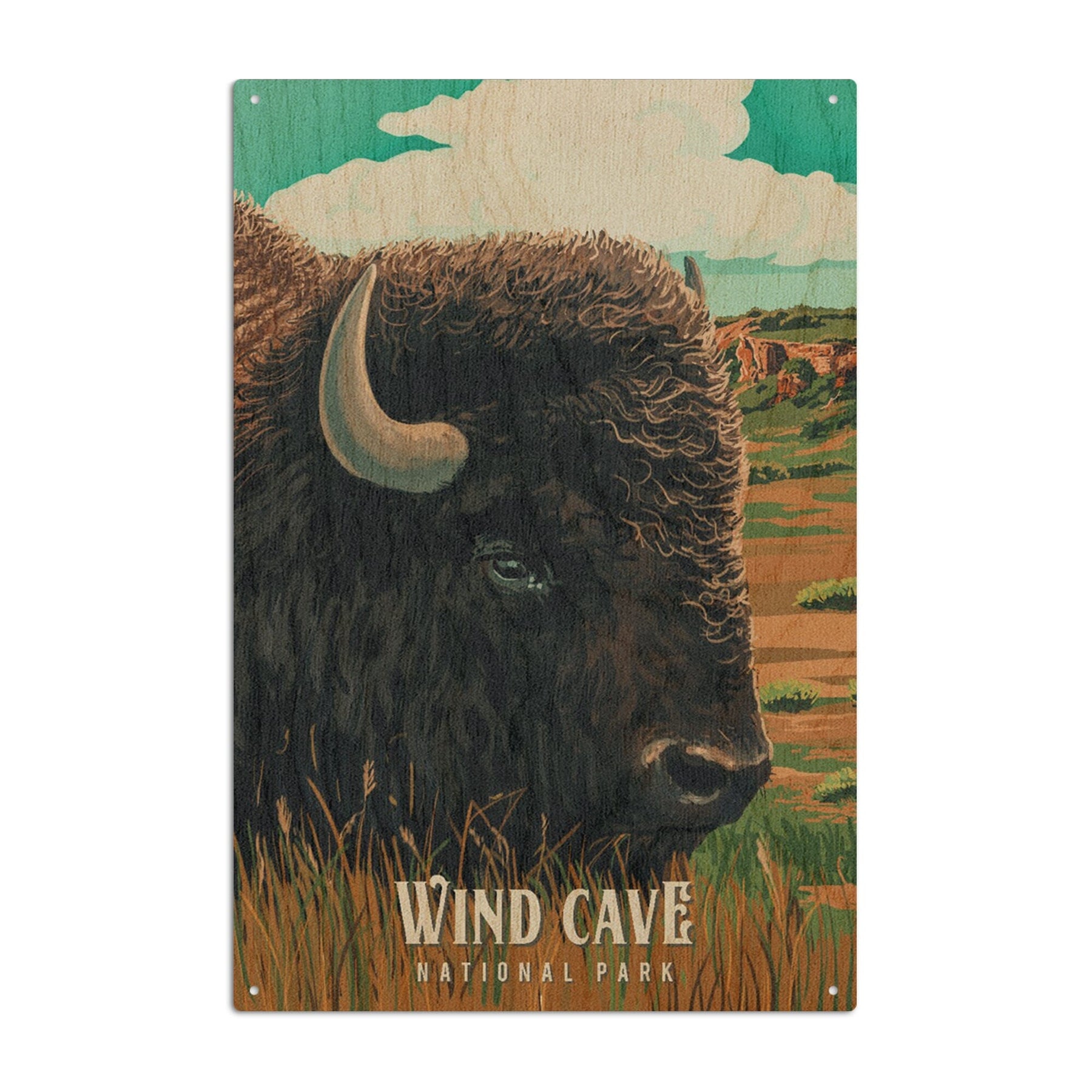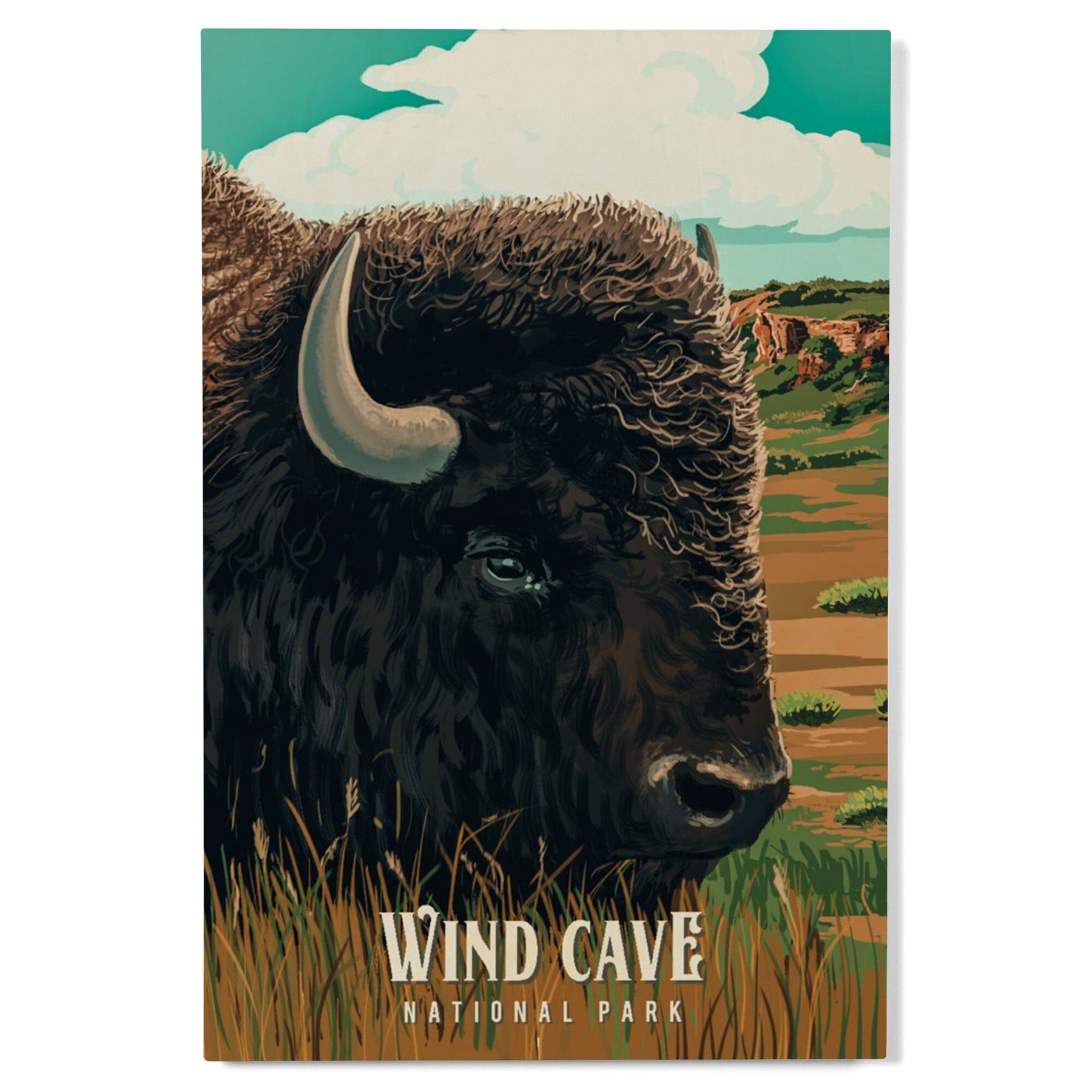 Wind Cave National Park, South Dakota, Bison, Painterly National Park Series, Wood Signs and Postcards Wood Lantern Press
