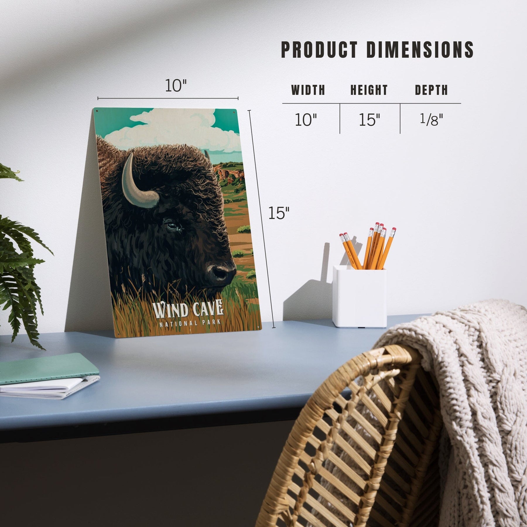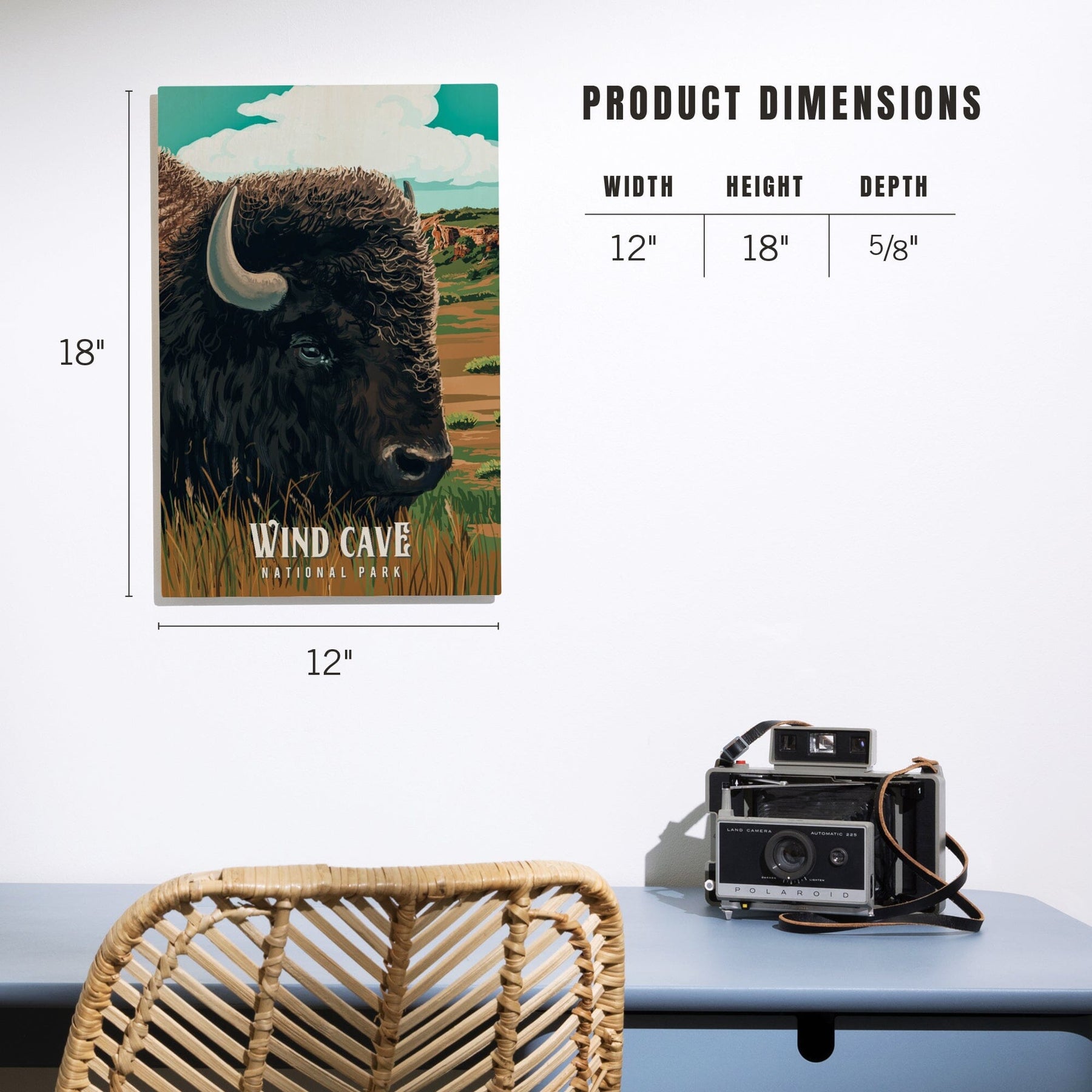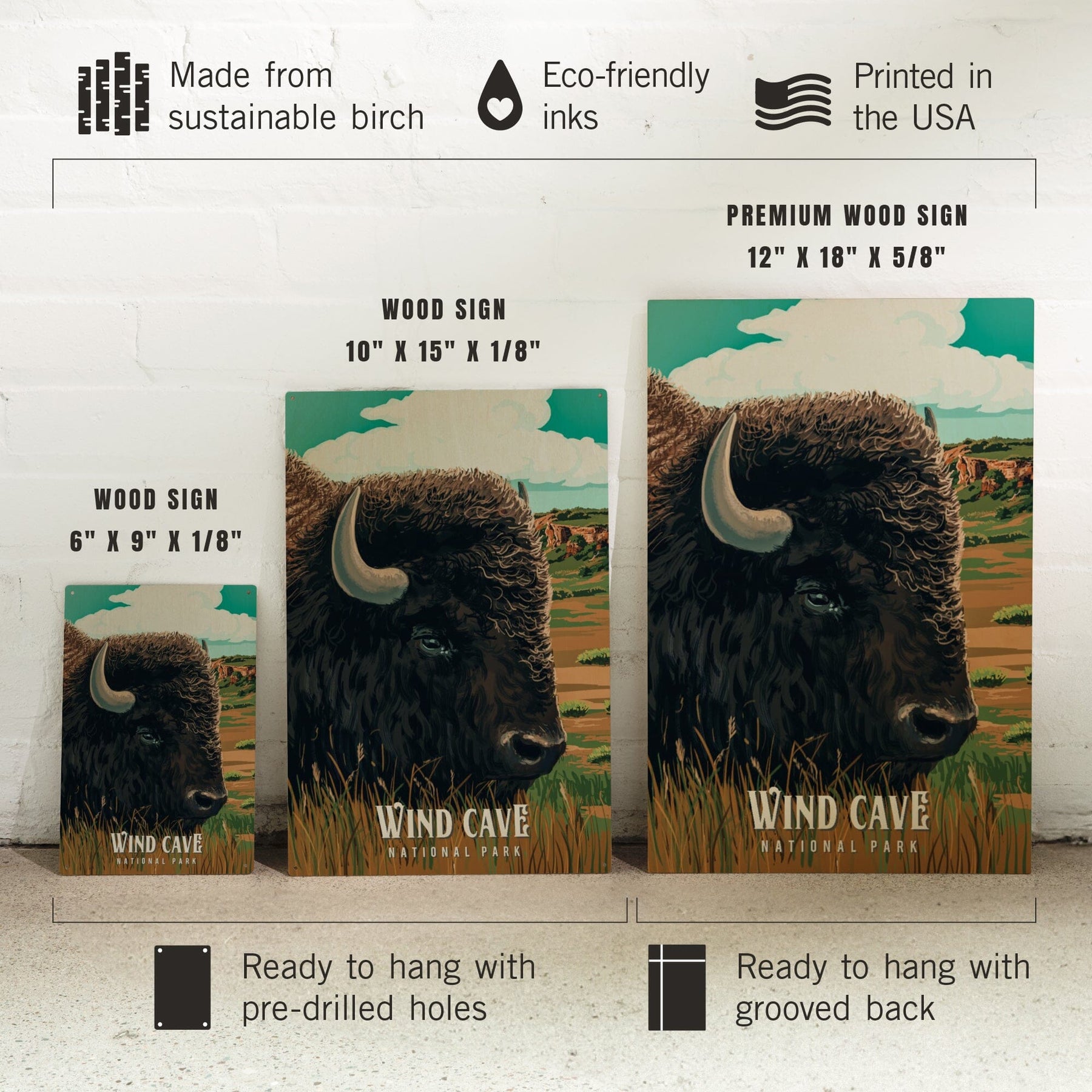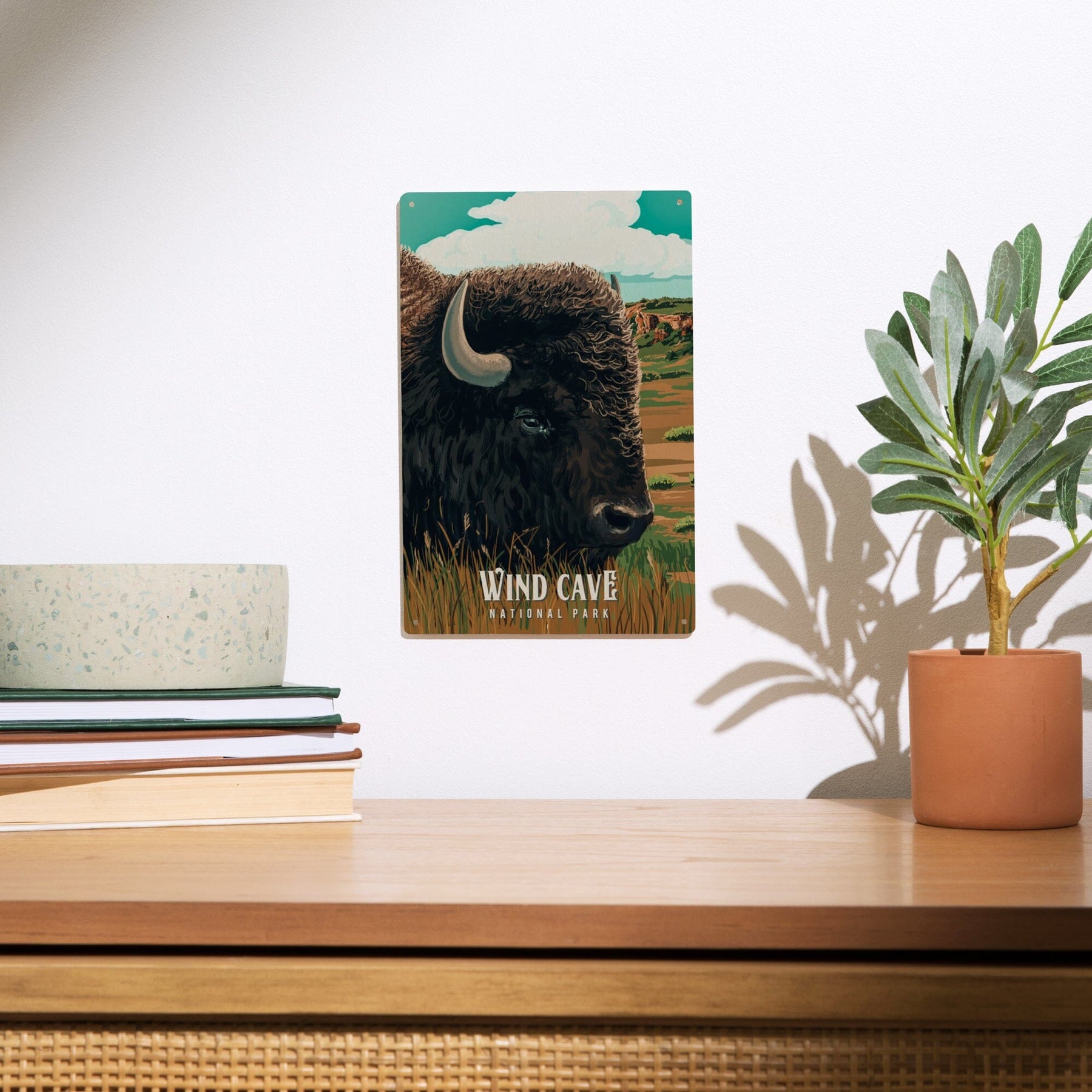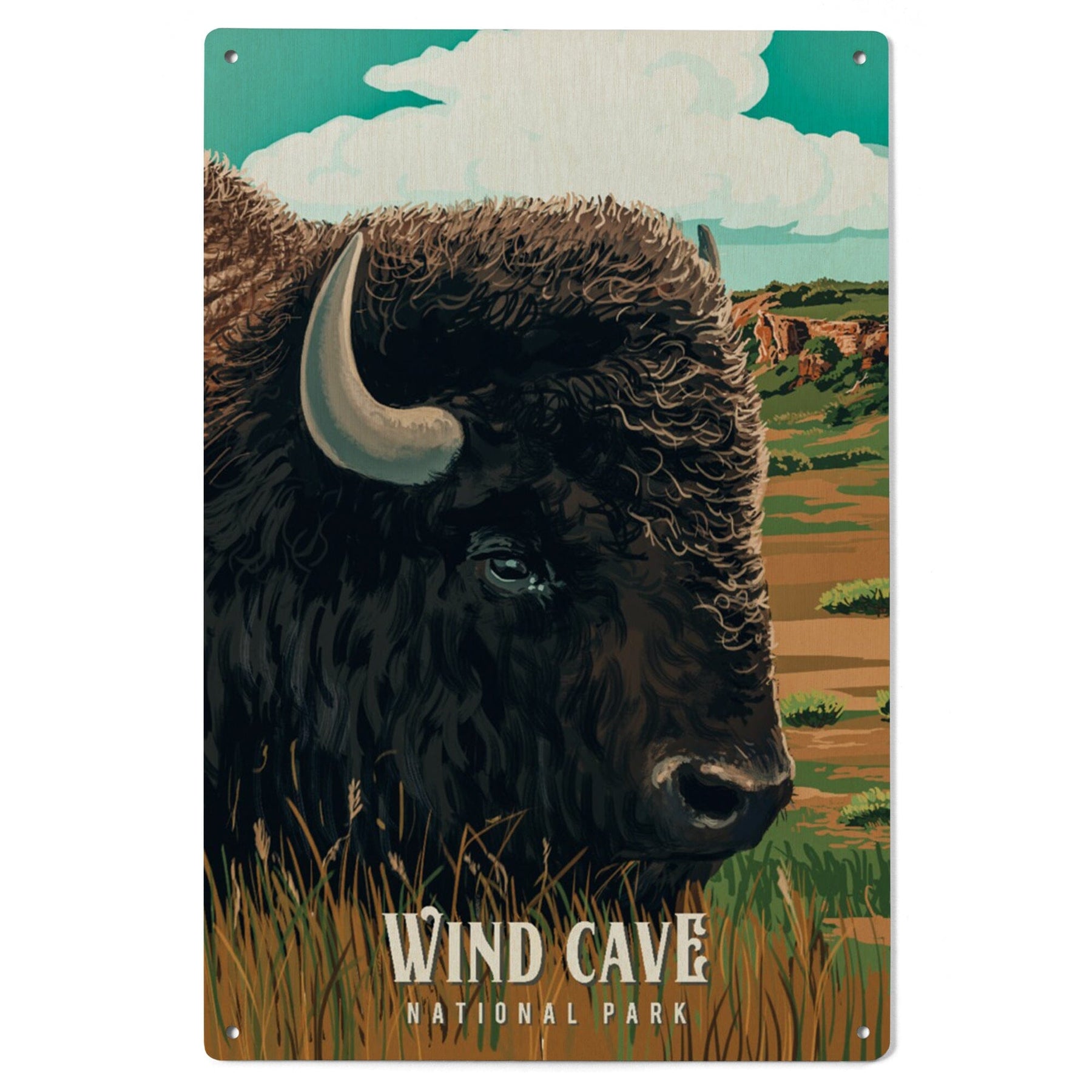 Wind Cave National Park, South Dakota, Bison, Painterly National Park Series, Wood Signs and Postcards Wood Lantern Press