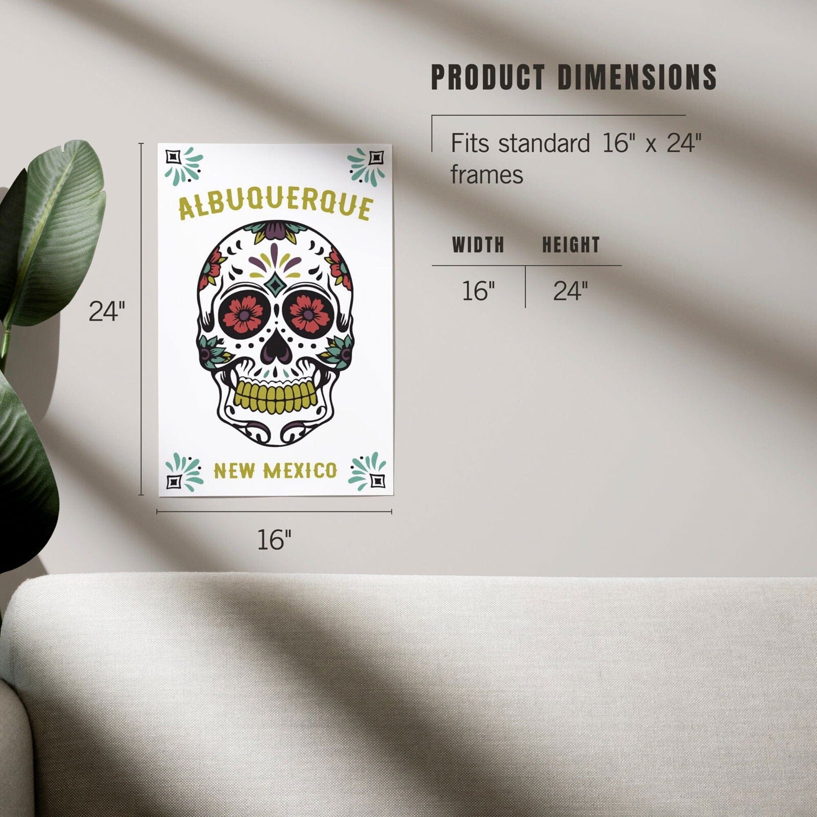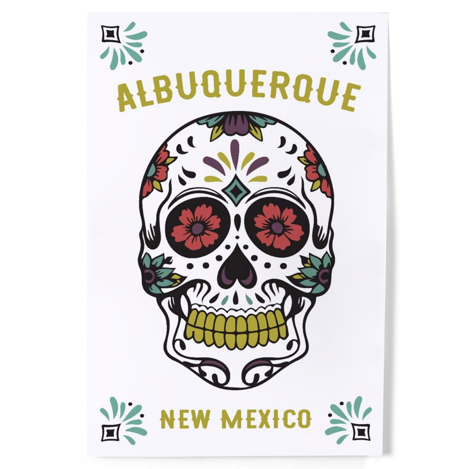 Albuquerque, New Mexico, Day of the Dead, Sugar Skull (White and Magenta), Art & Giclee Prints Art Lantern Press