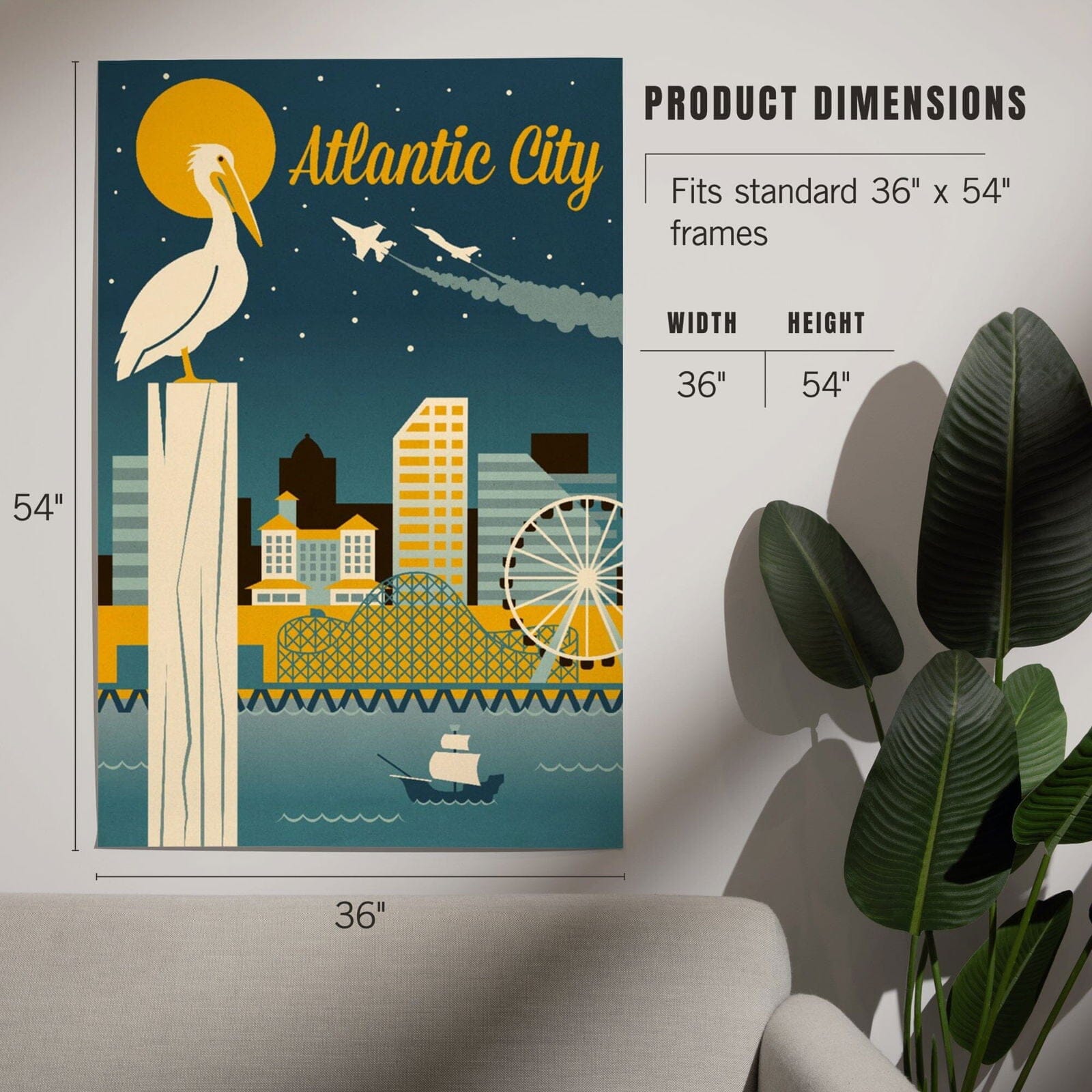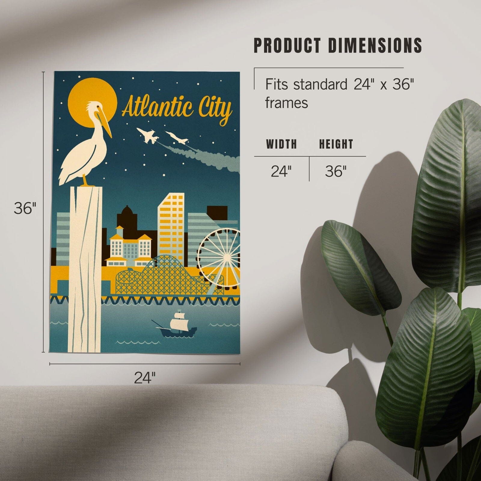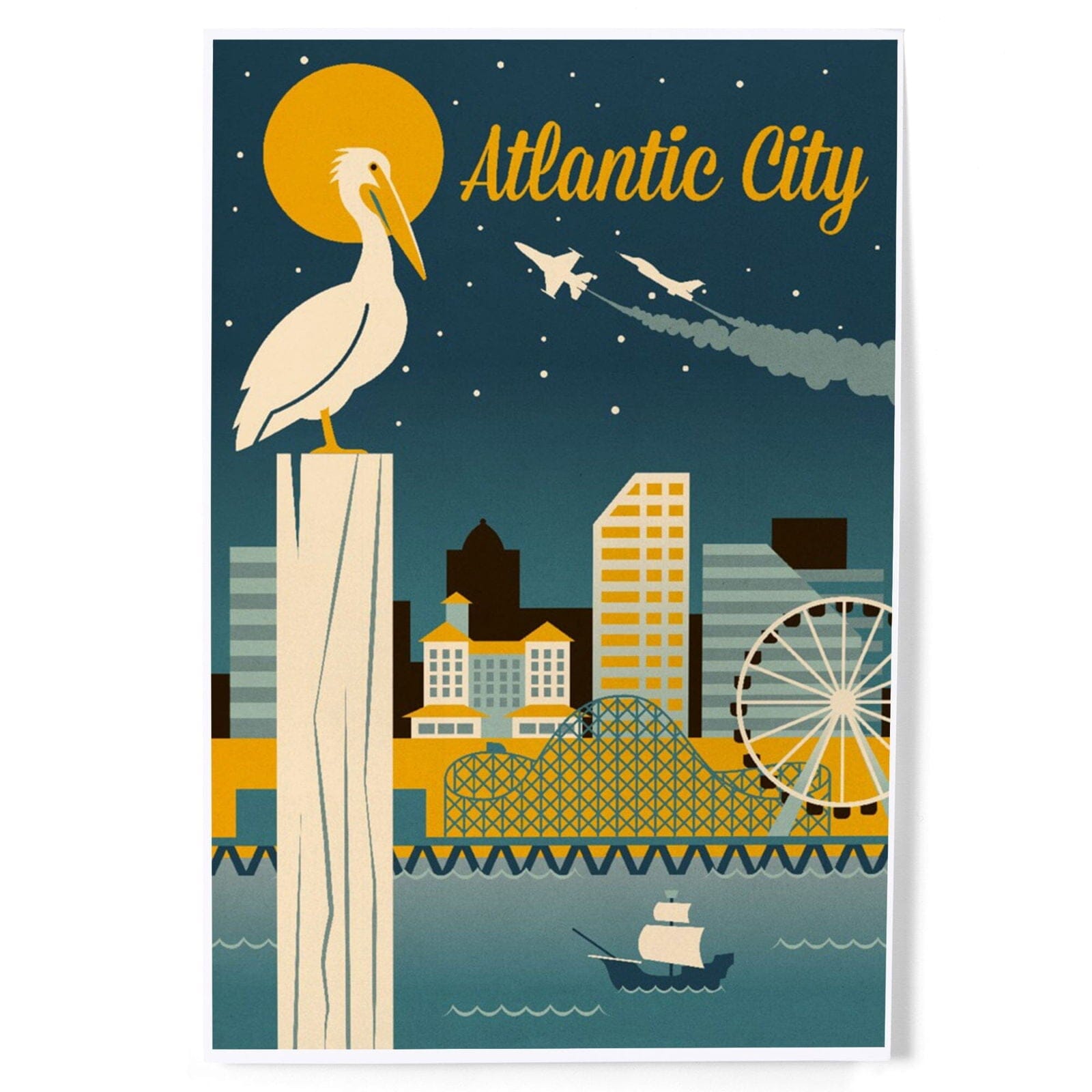Atlantic City, New Jersey, Retro Skyline Classic Series, Art & Giclee Prints