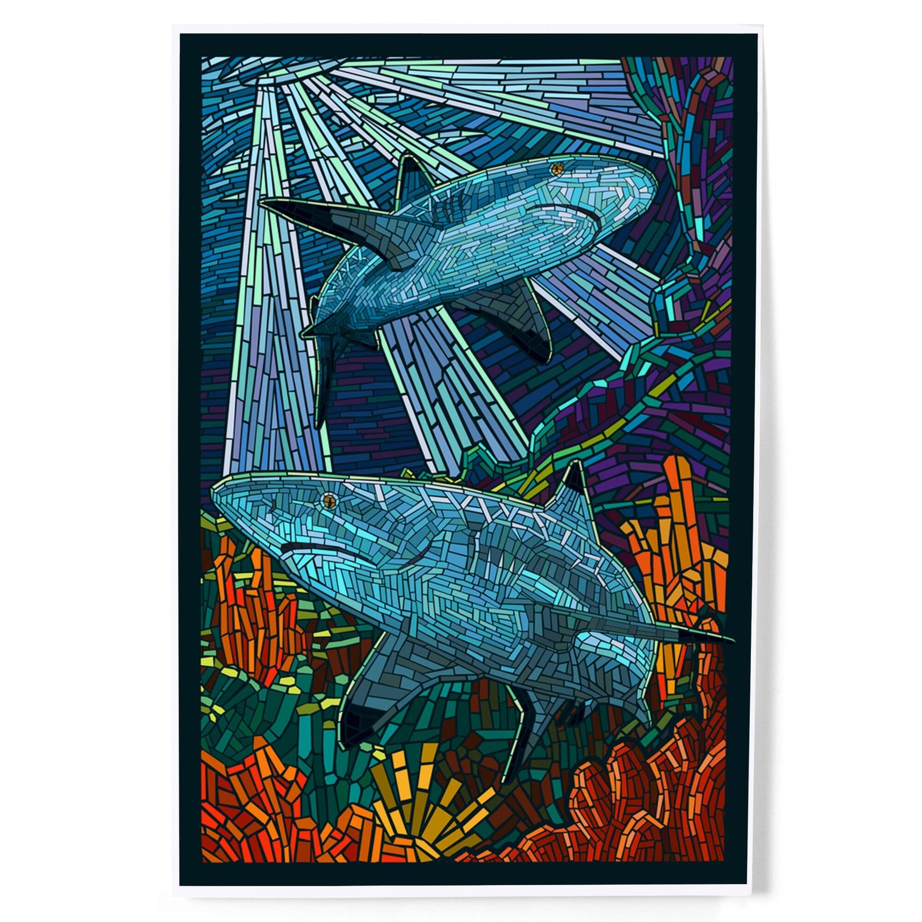 Black Tip Reef Shark, Paper Mosaic, Art & Giclee Prints - Lantern Press