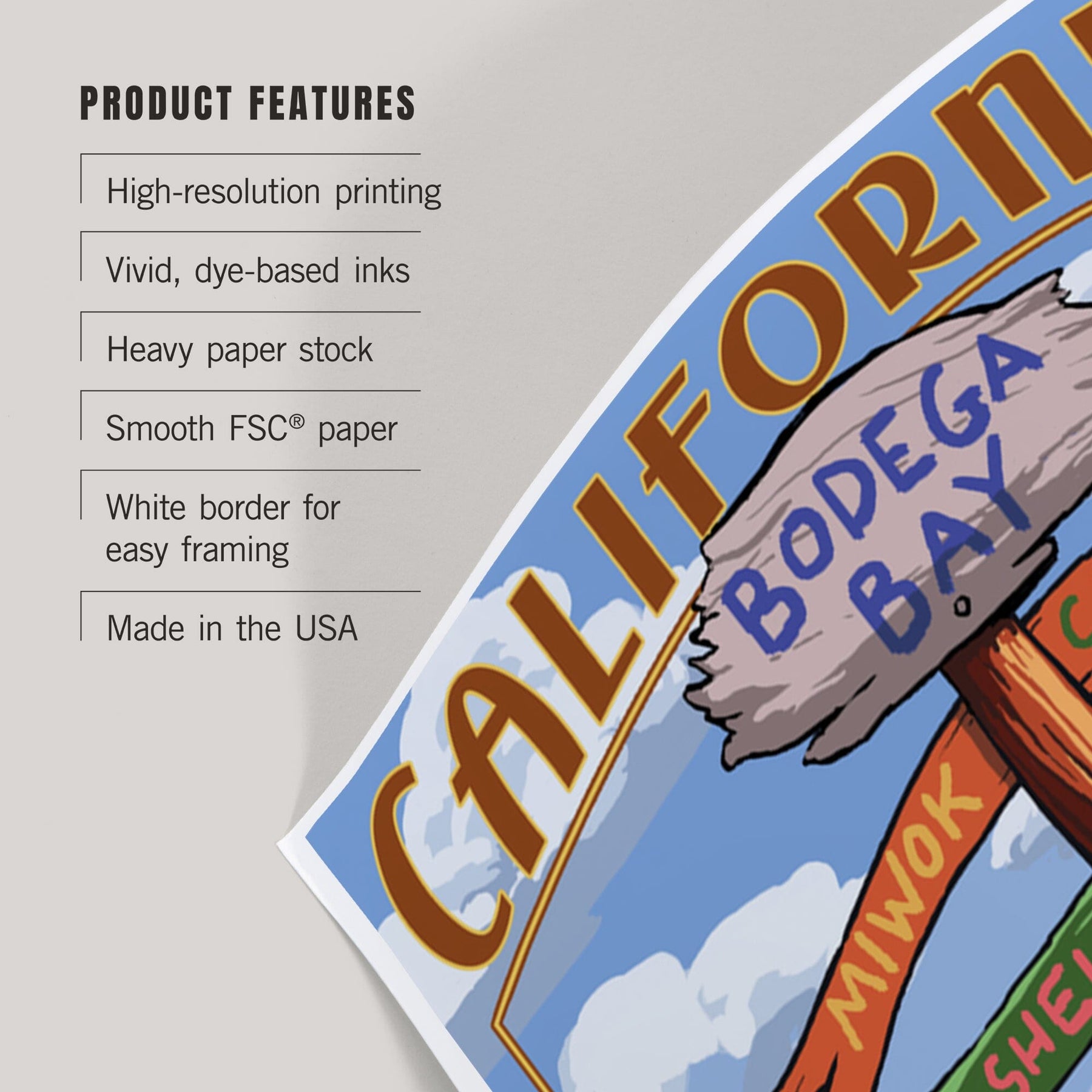Bodega Bay, California, Destinations Sign, Art & Giclee Prints