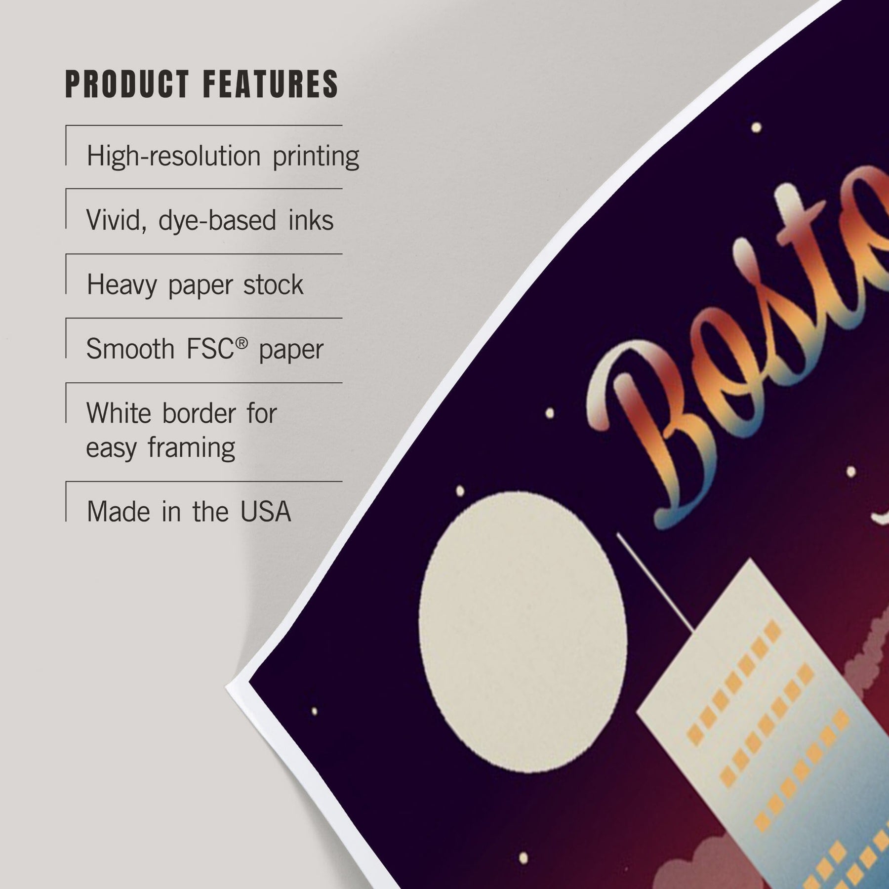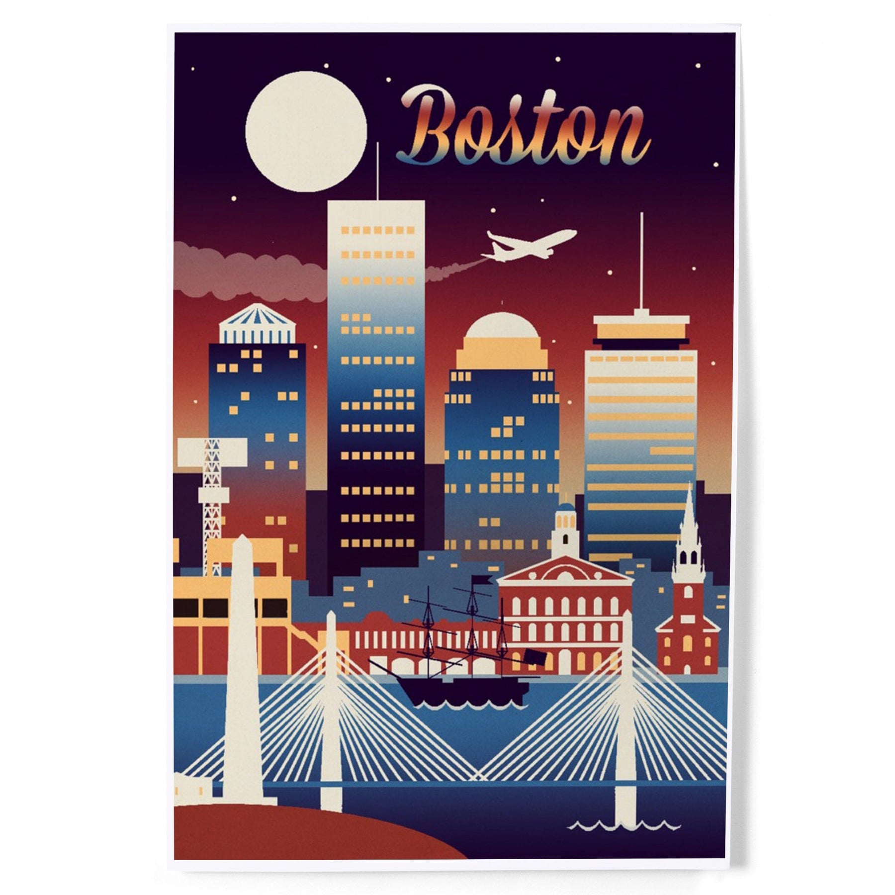 Boston, Massachusetts, Retro Skyline Chromatic Series, Art & Giclee Prints