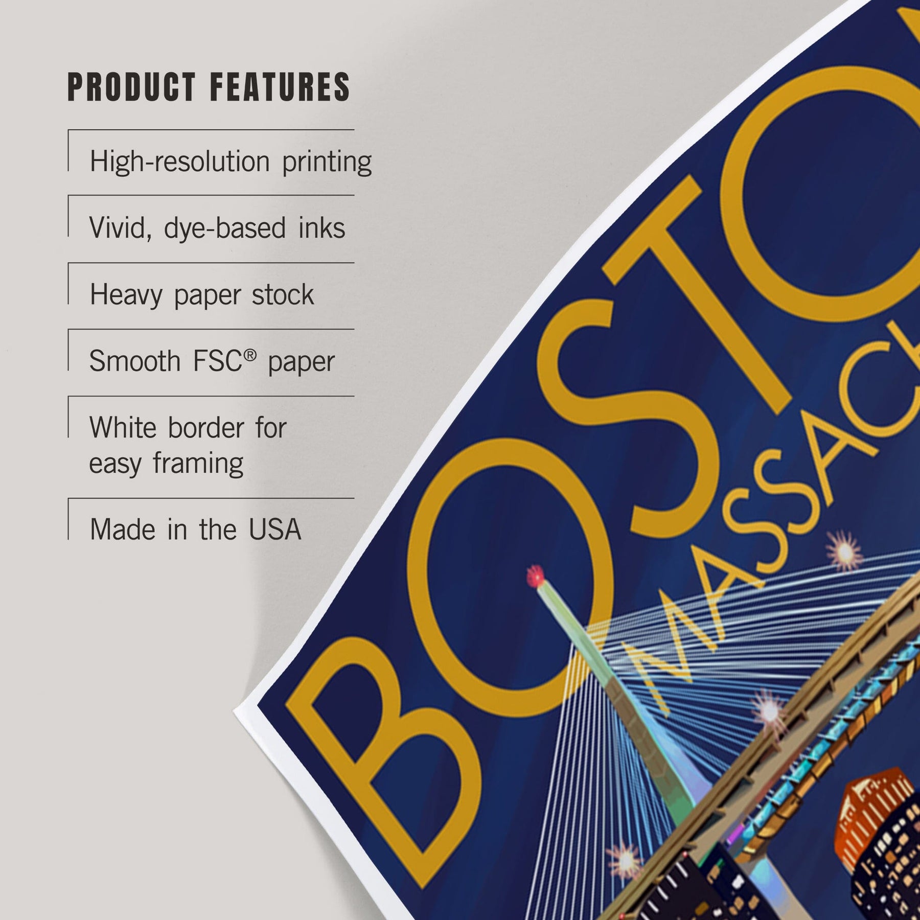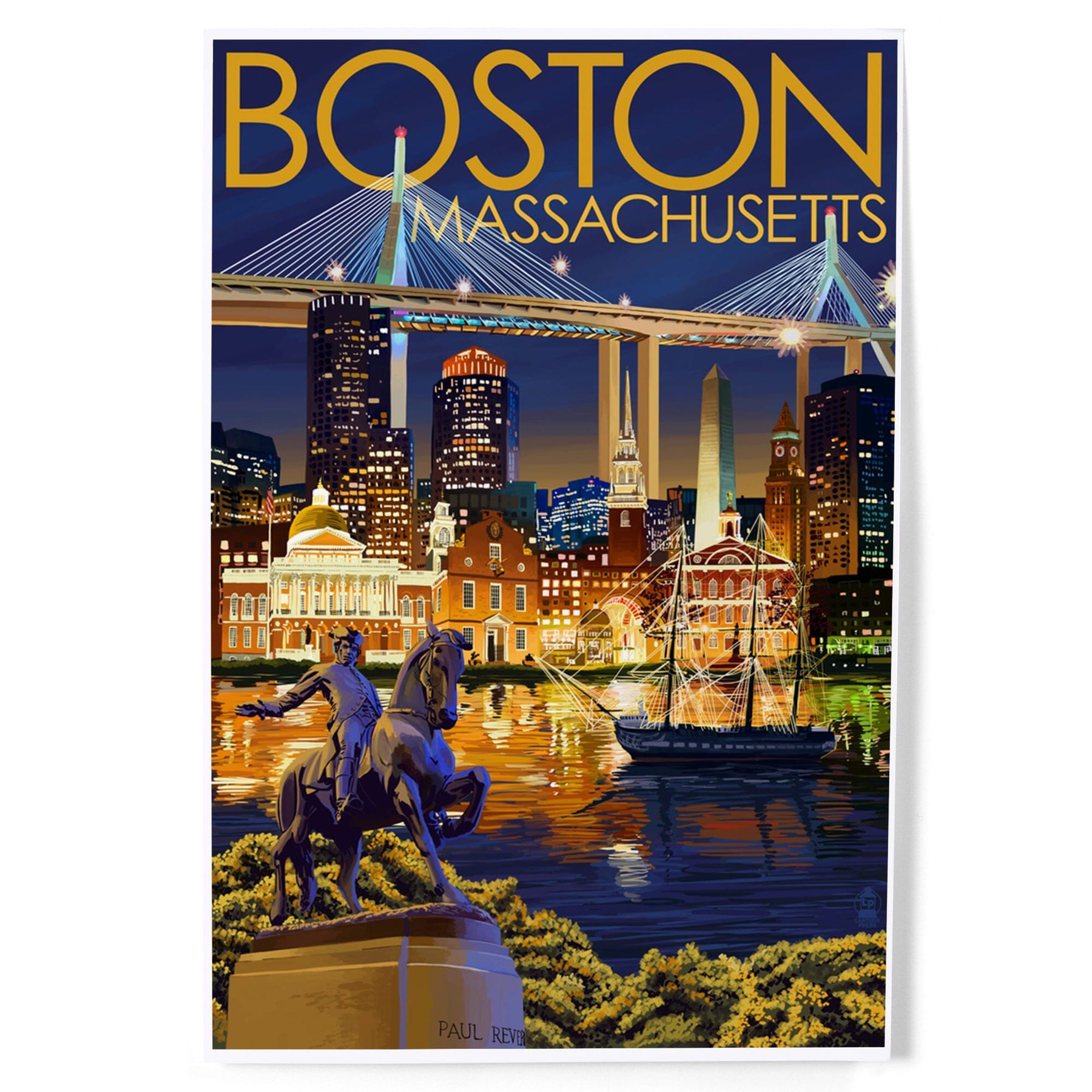 Boston, Massachusetts, Skyline at Night, Art & Giclee Prints - Lantern Press
