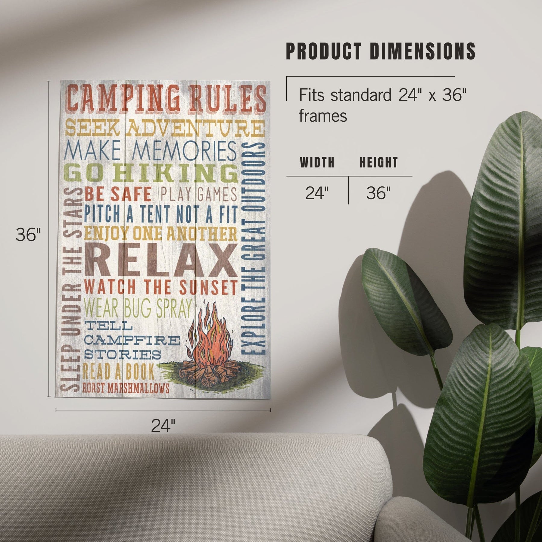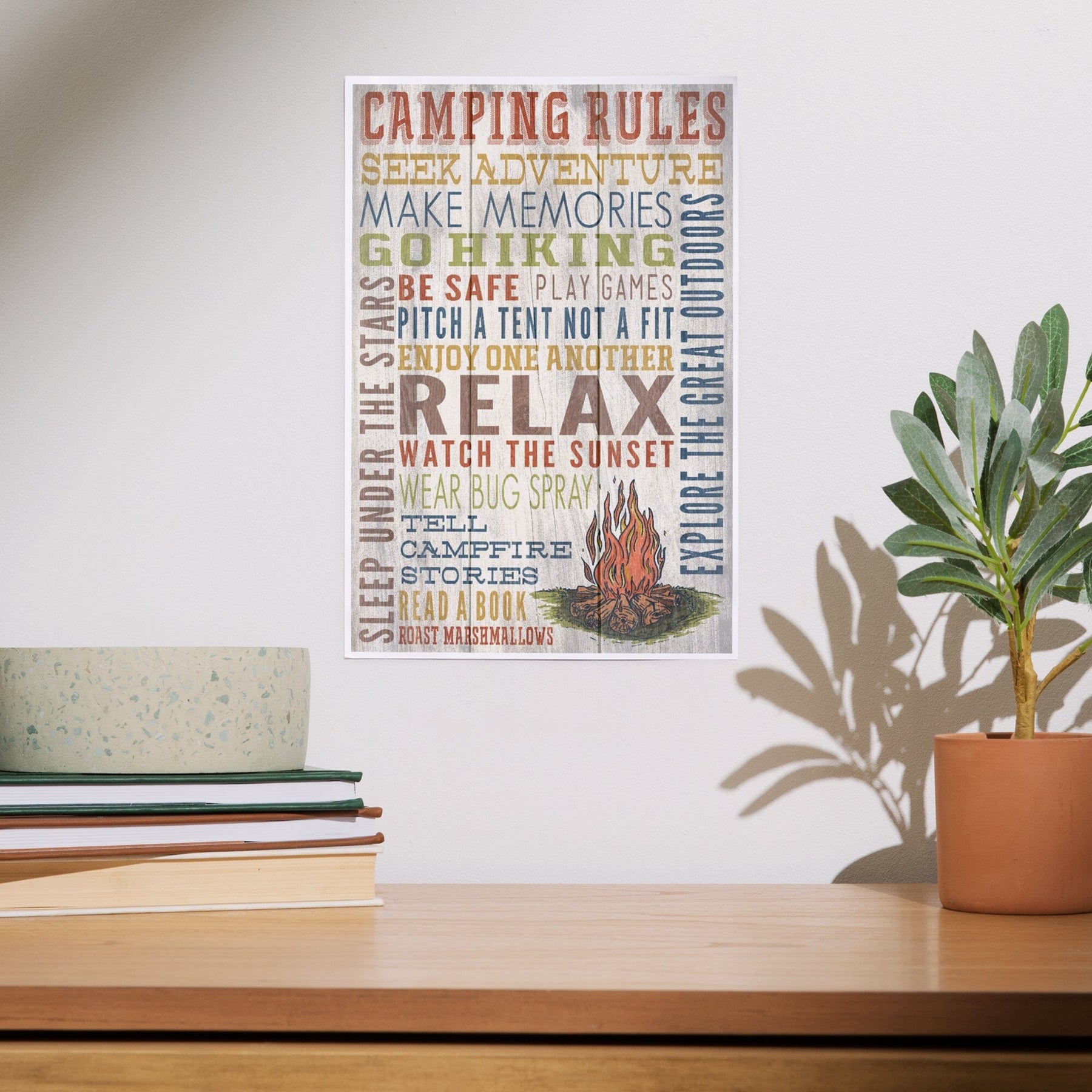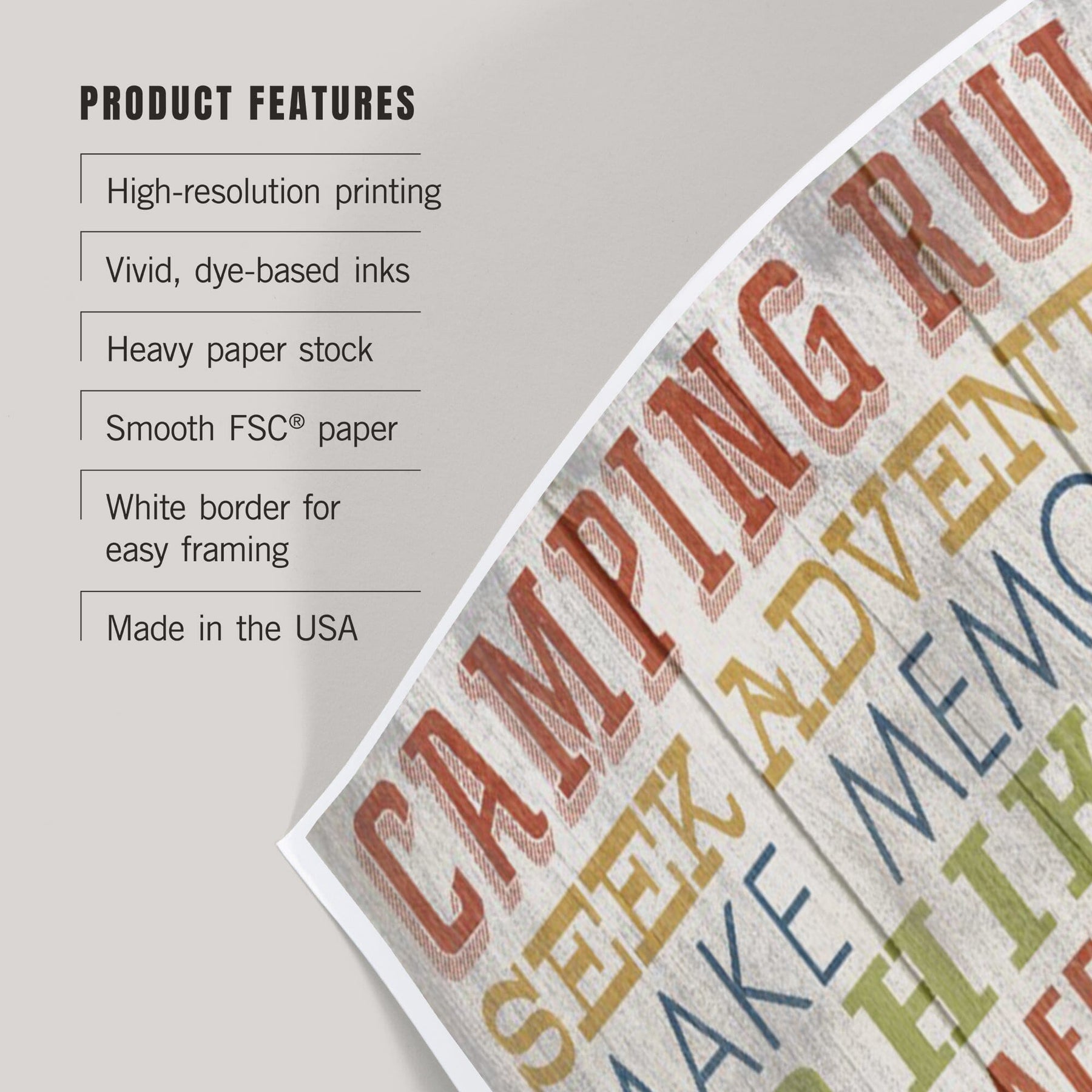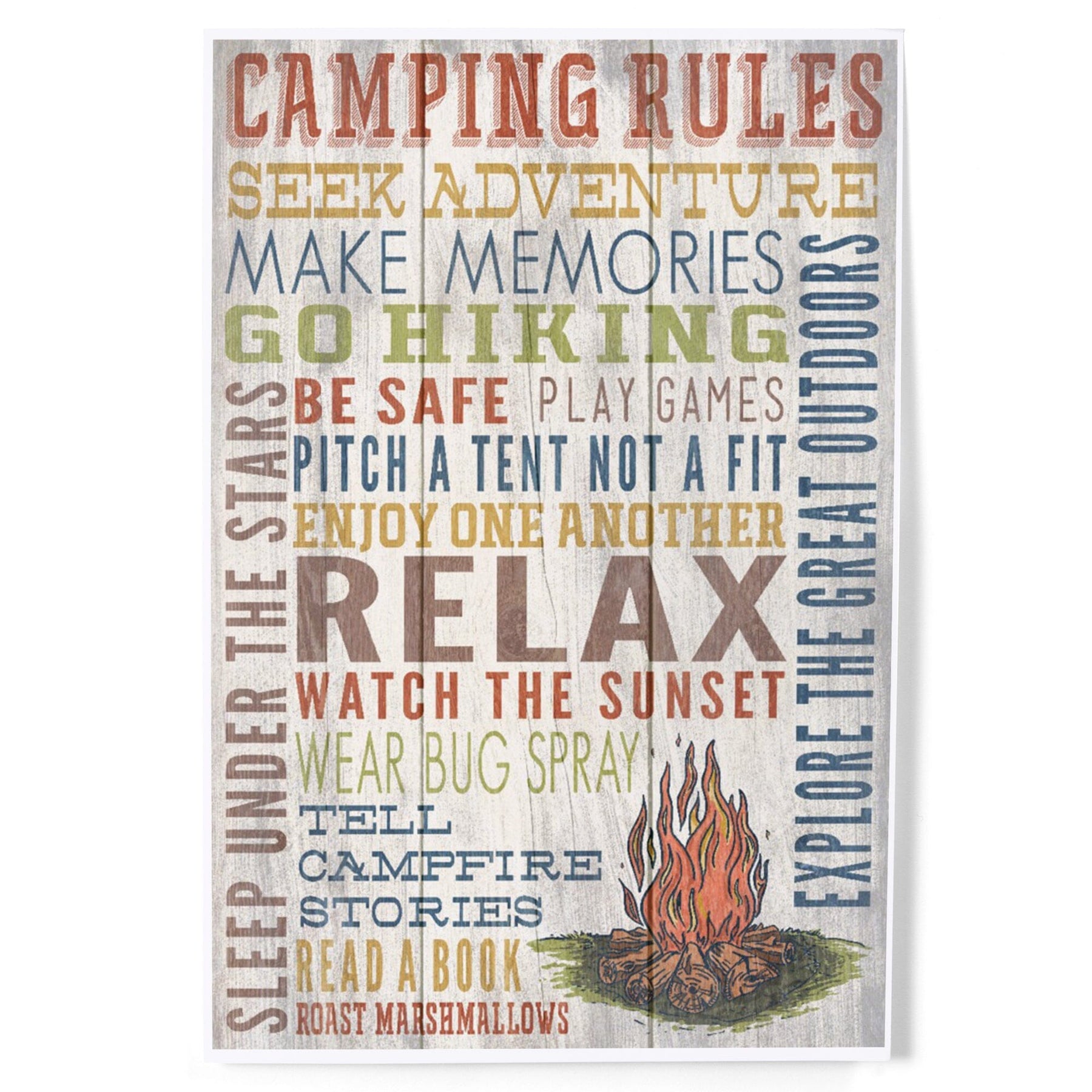 Camping Rules, Rustic Typography, Art & Giclee Prints - Lantern Press