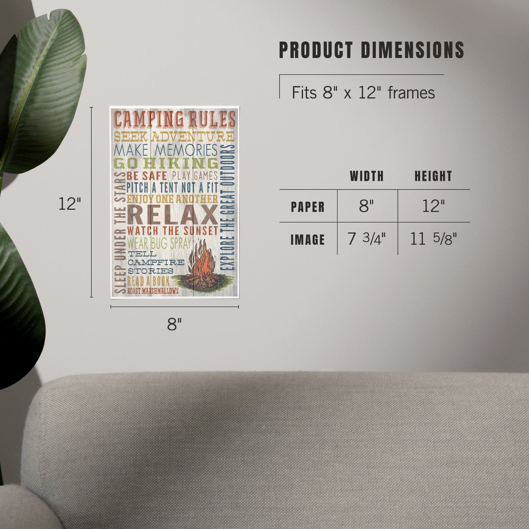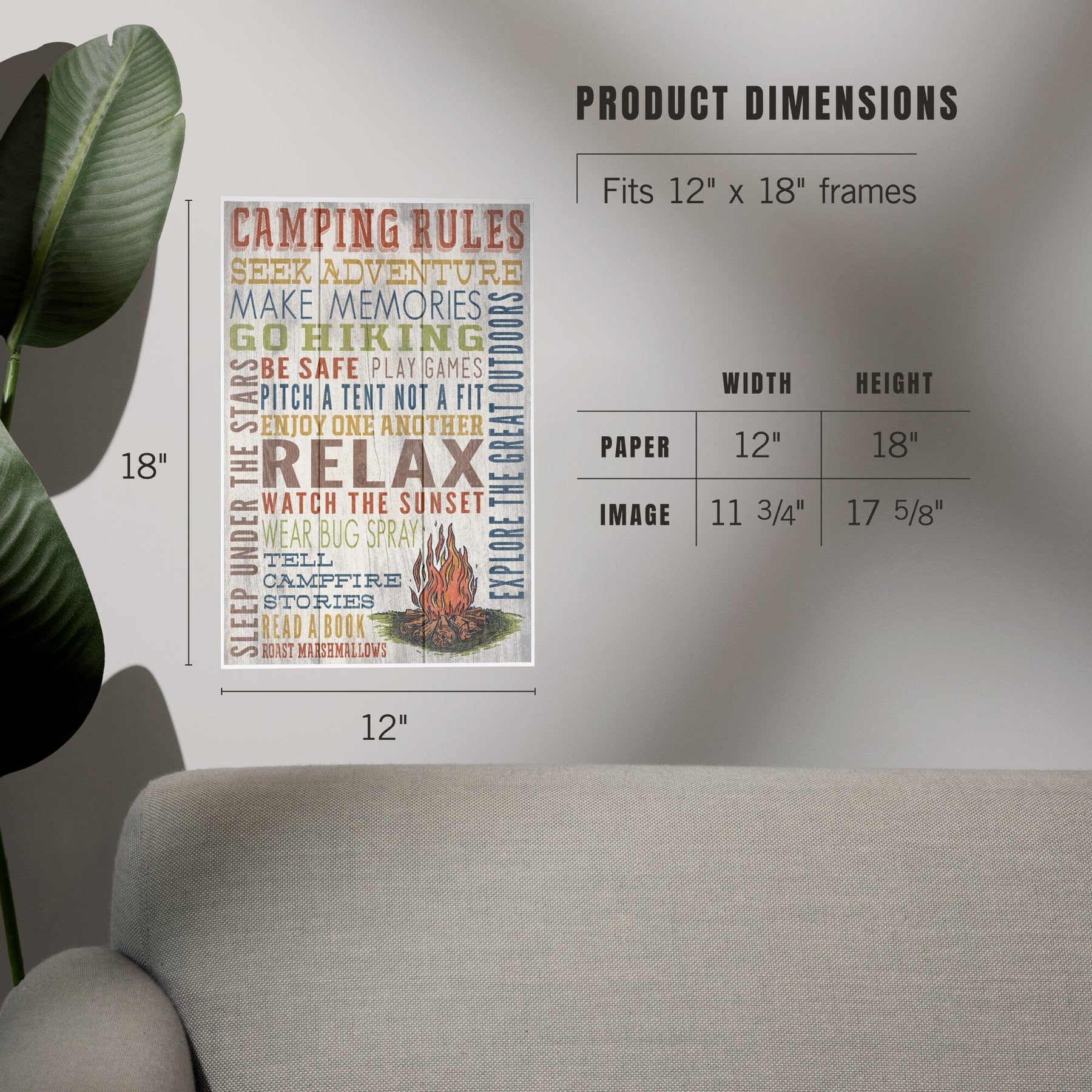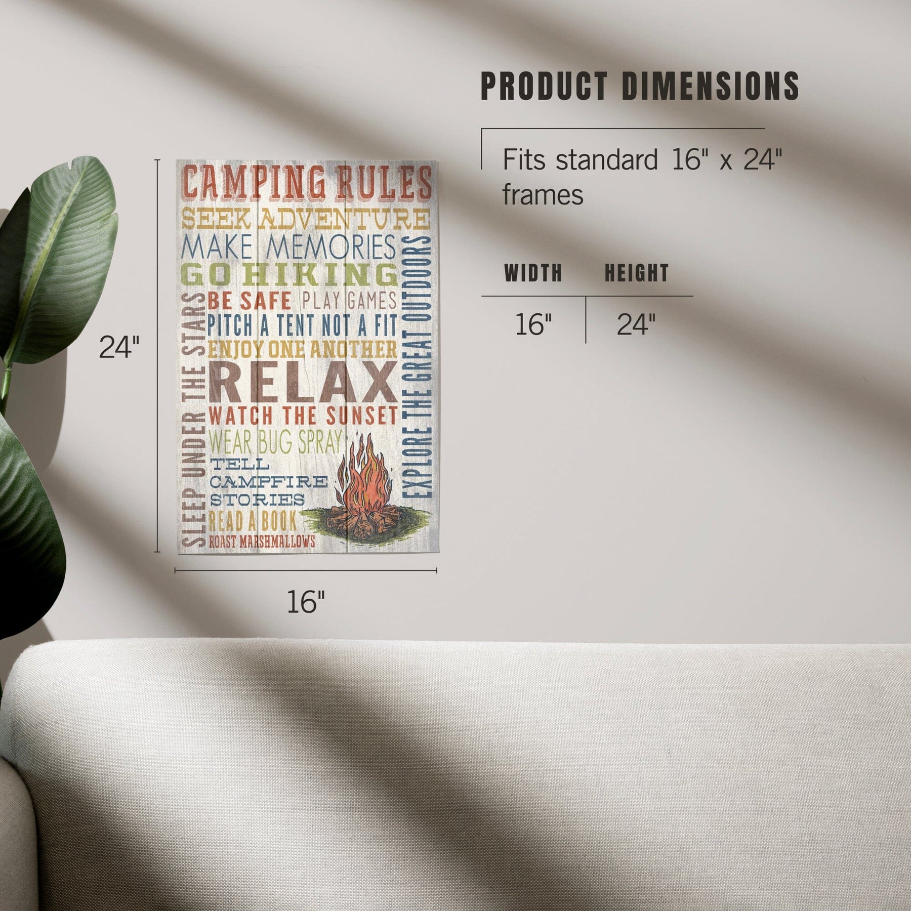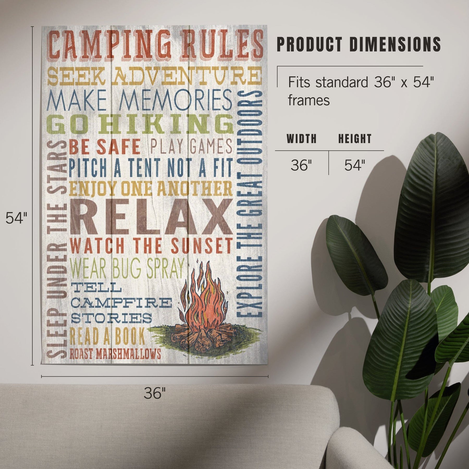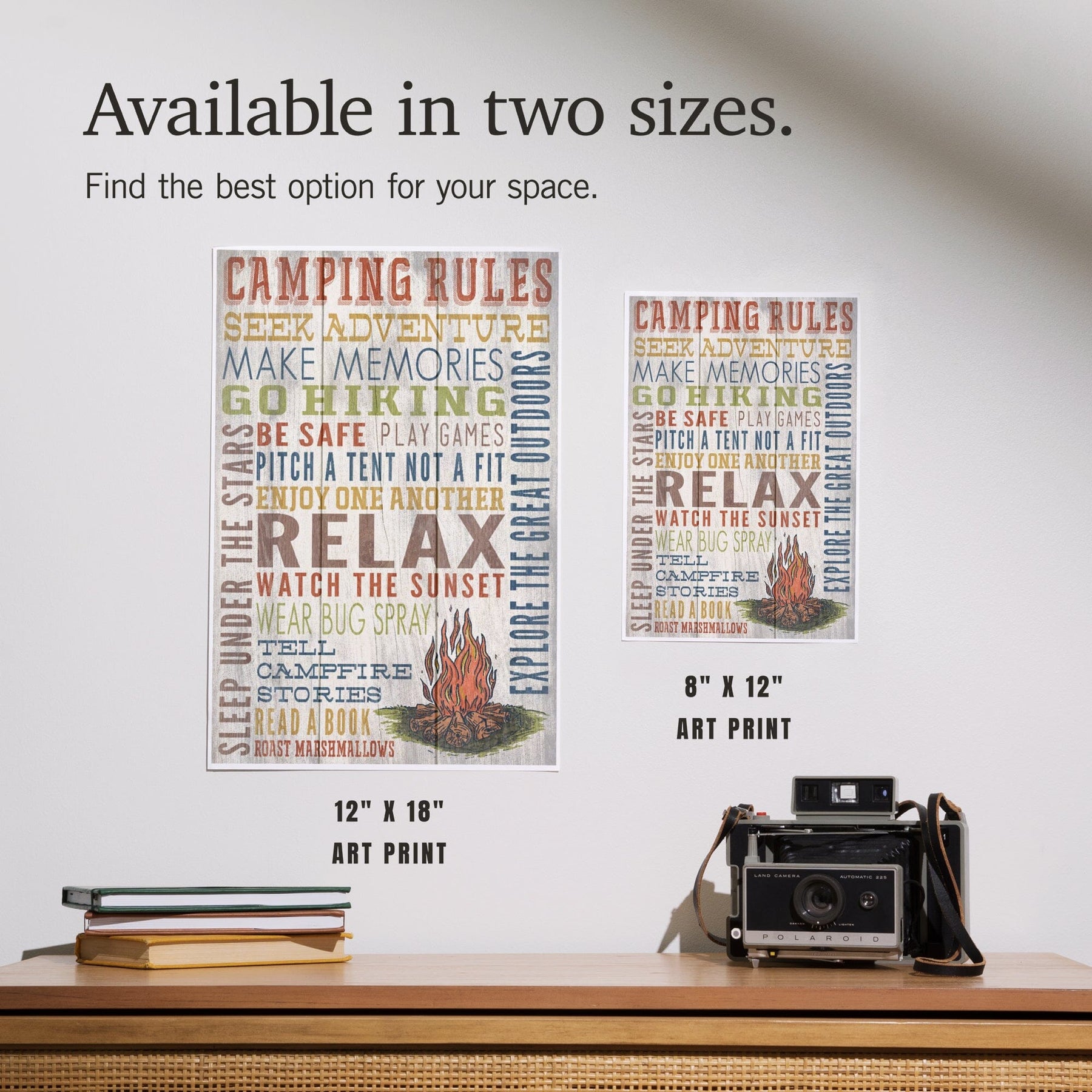 Camping Rules, Rustic Typography, Art & Giclee Prints - Lantern Press