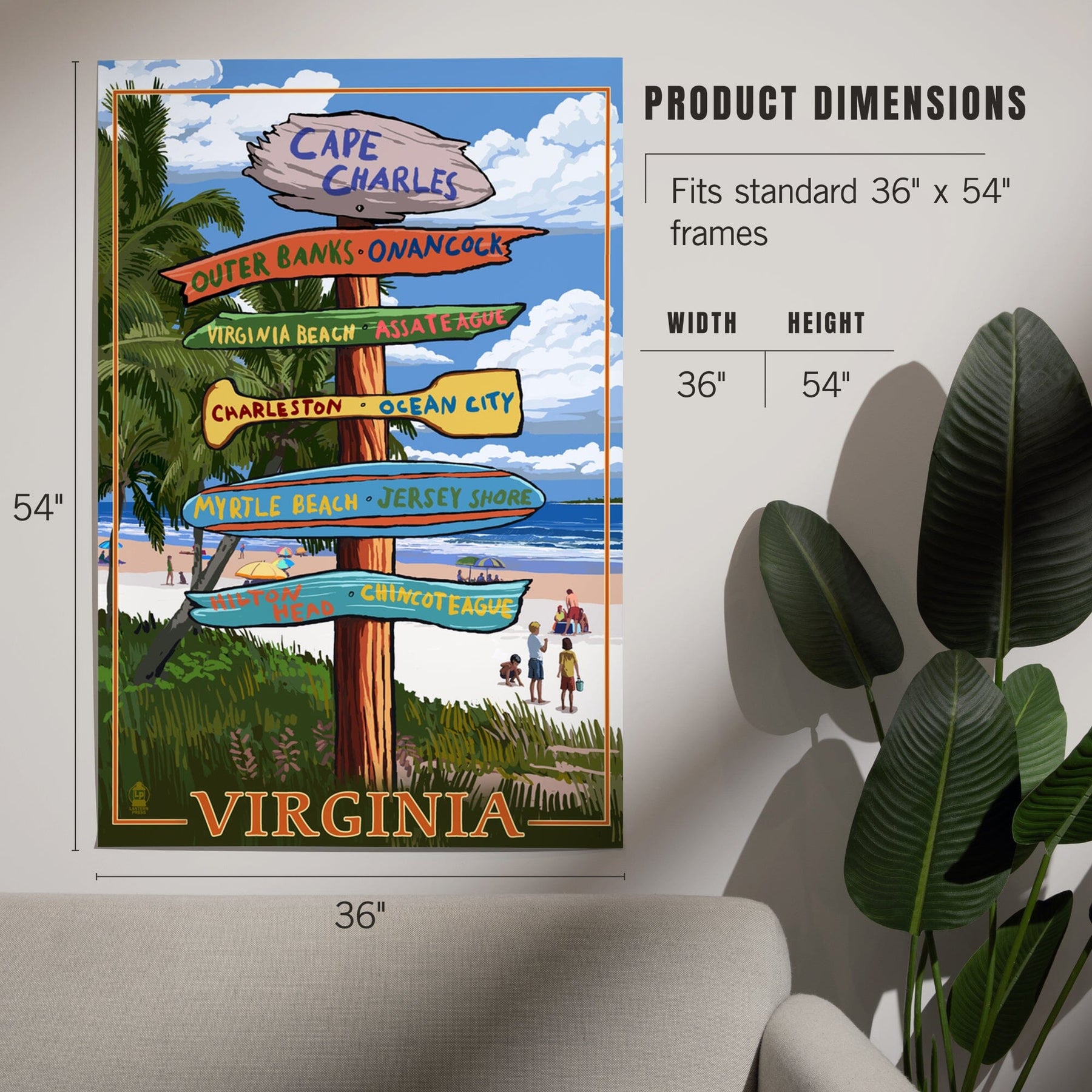 Cape Charles, Virginia, Destination Signpost, Art & Giclee Prints - Lantern Press