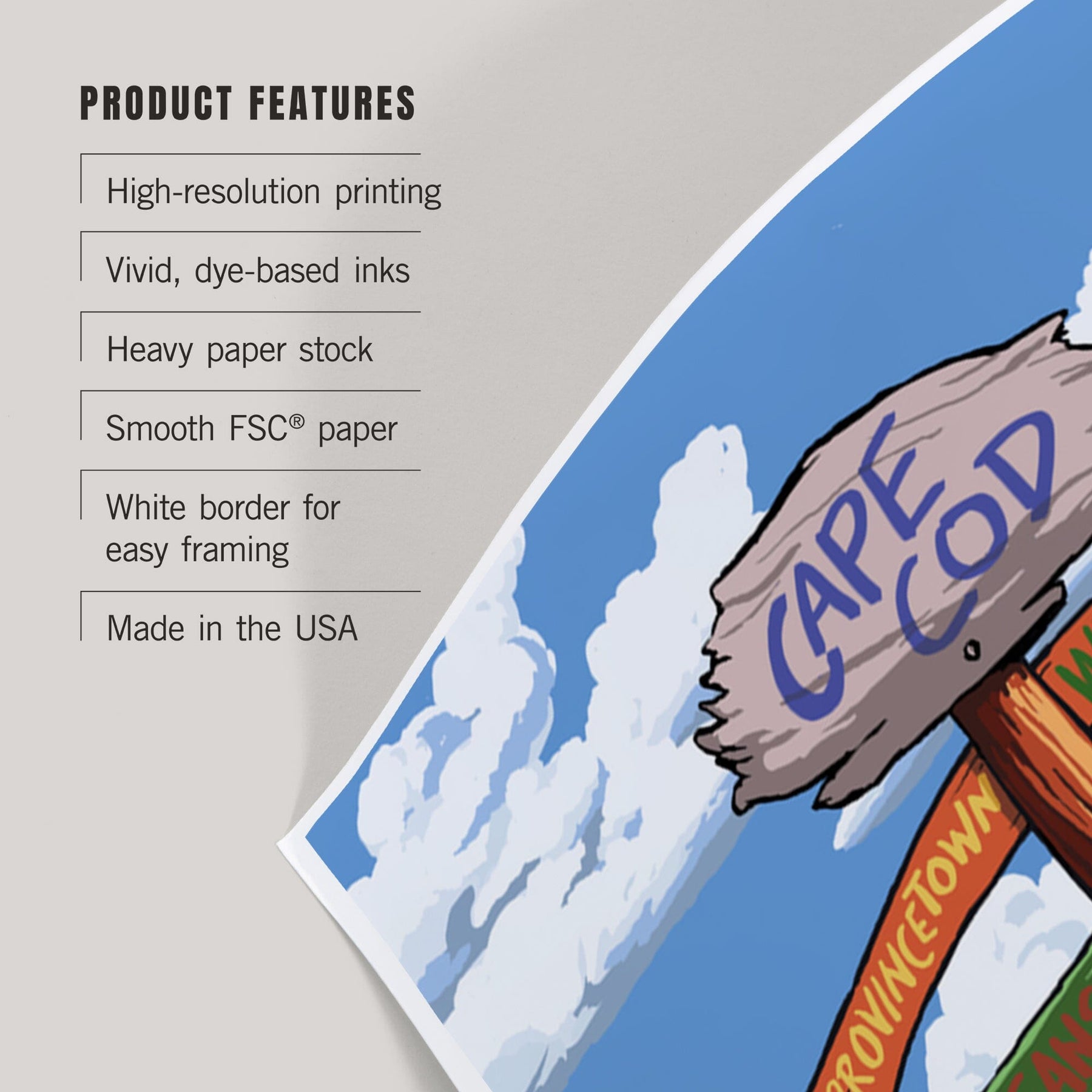 Cape Cod, Massachusetts, Destination Signpost, Art & Giclee Prints