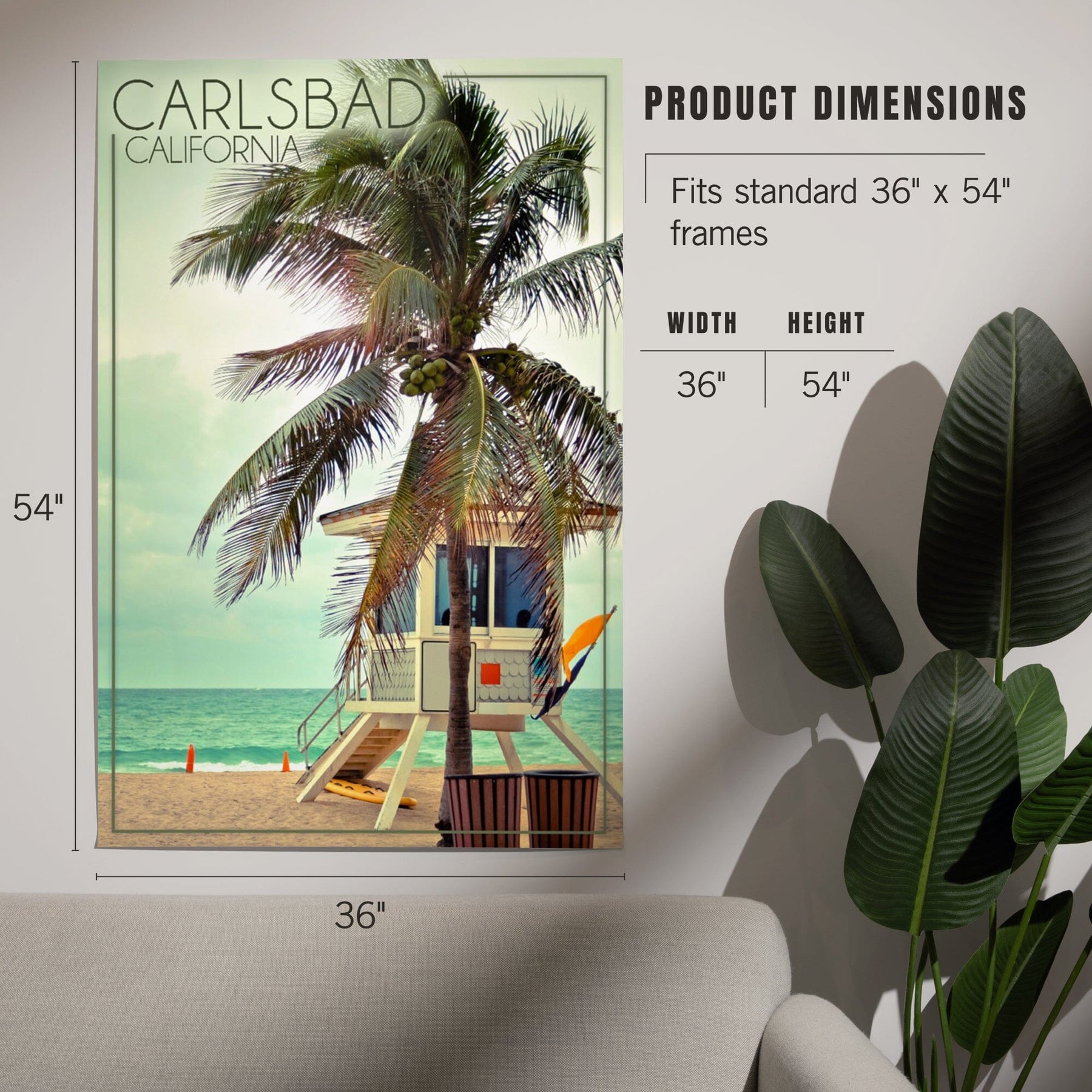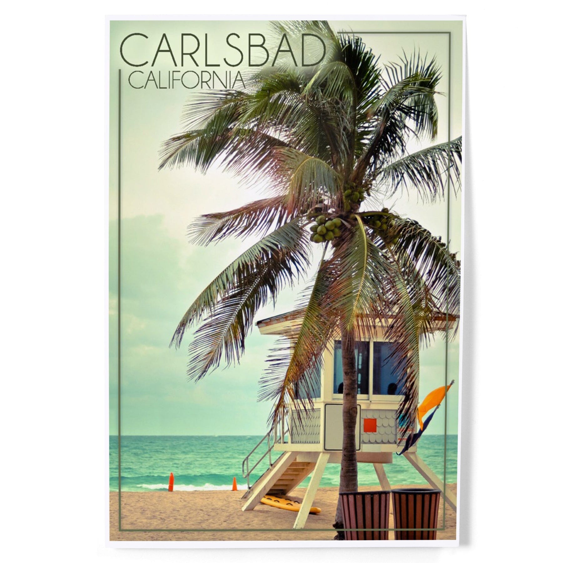 Carlsbad, California, Lifeguard Shack and Palm, Art & Giclee Prints - Lantern Press