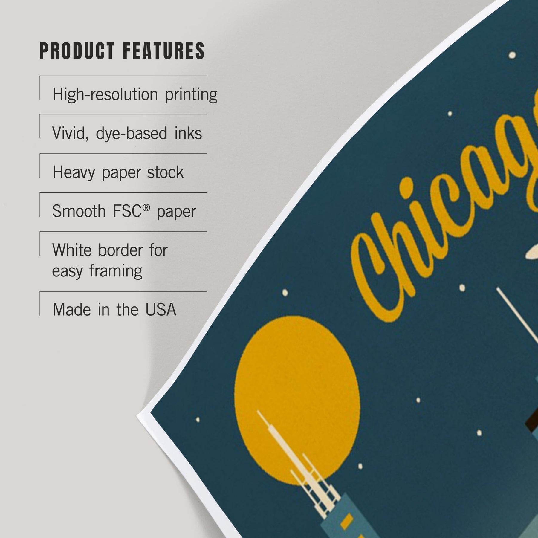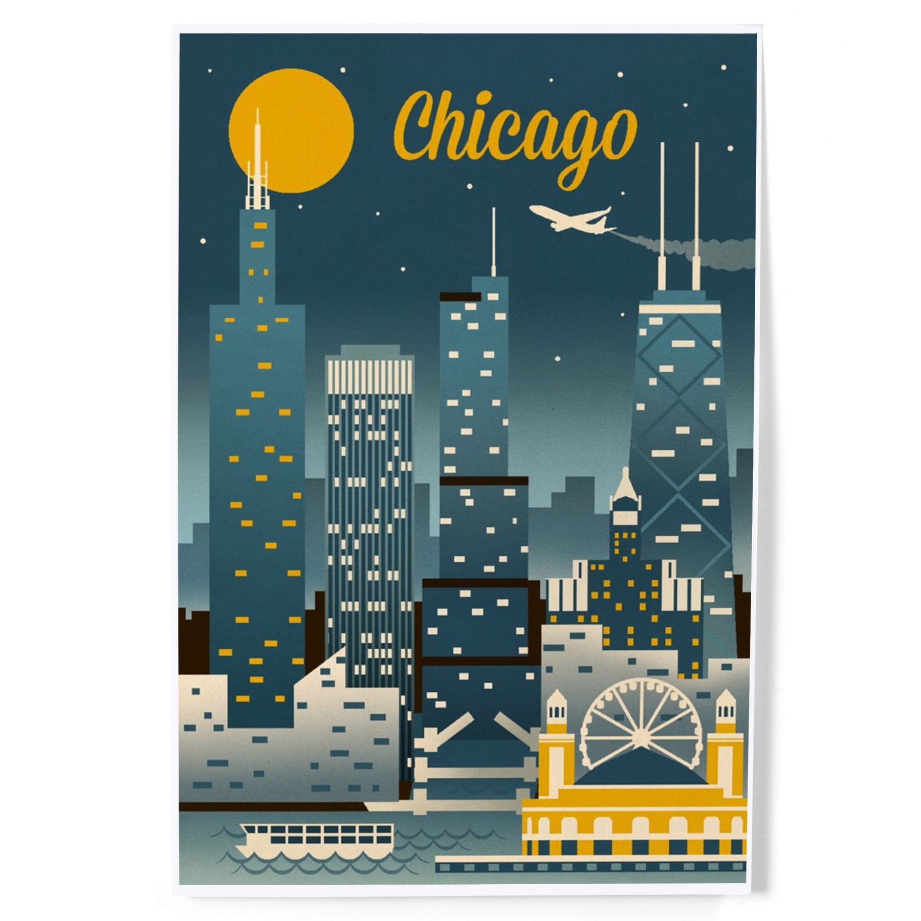 Chicago, Illinois, Retro Skyline Classic, Art & Giclee Prints