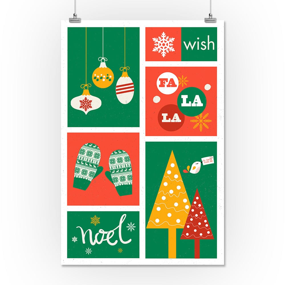 Christmas, Red and Green, Checkerboard, Art & Giclee Prints Art Lantern Press