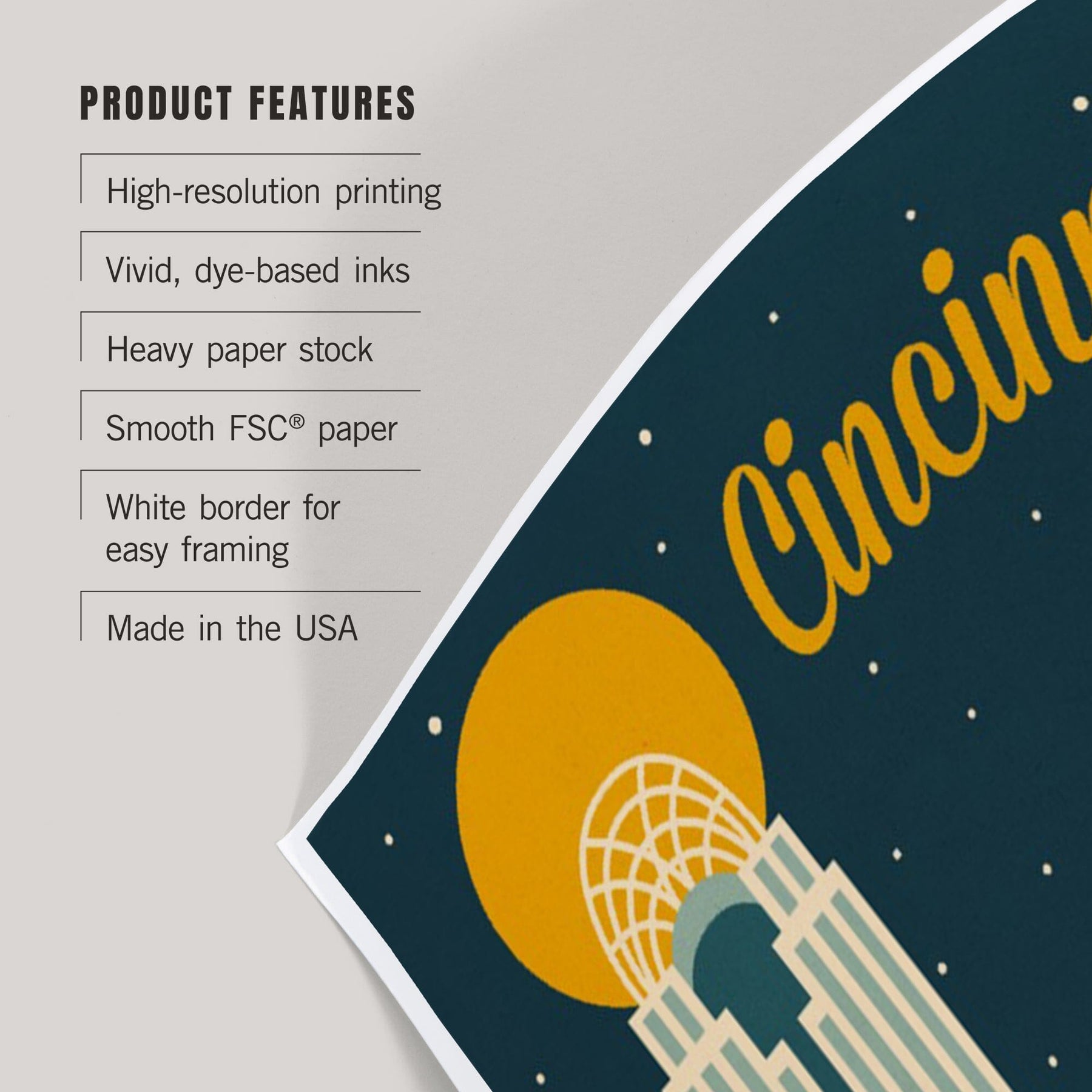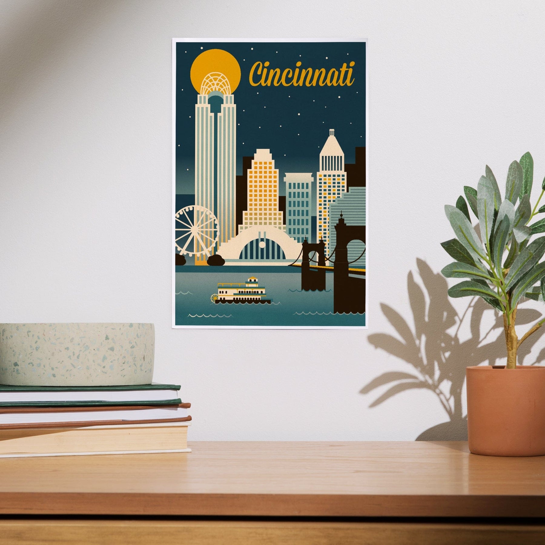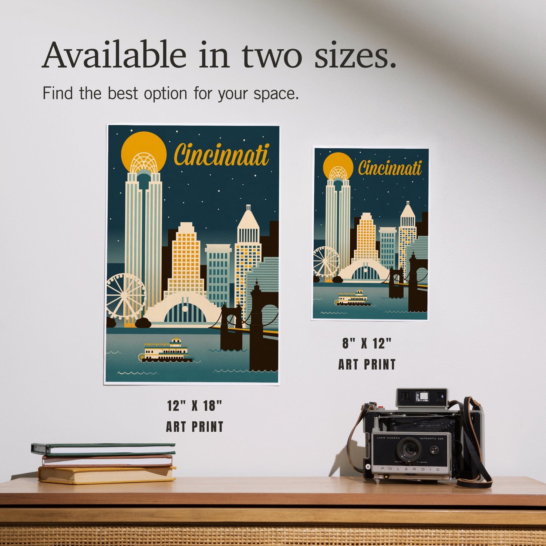 Cincinnati, Ohio, Retro Skyline Classic Series, Art & Giclee Prints