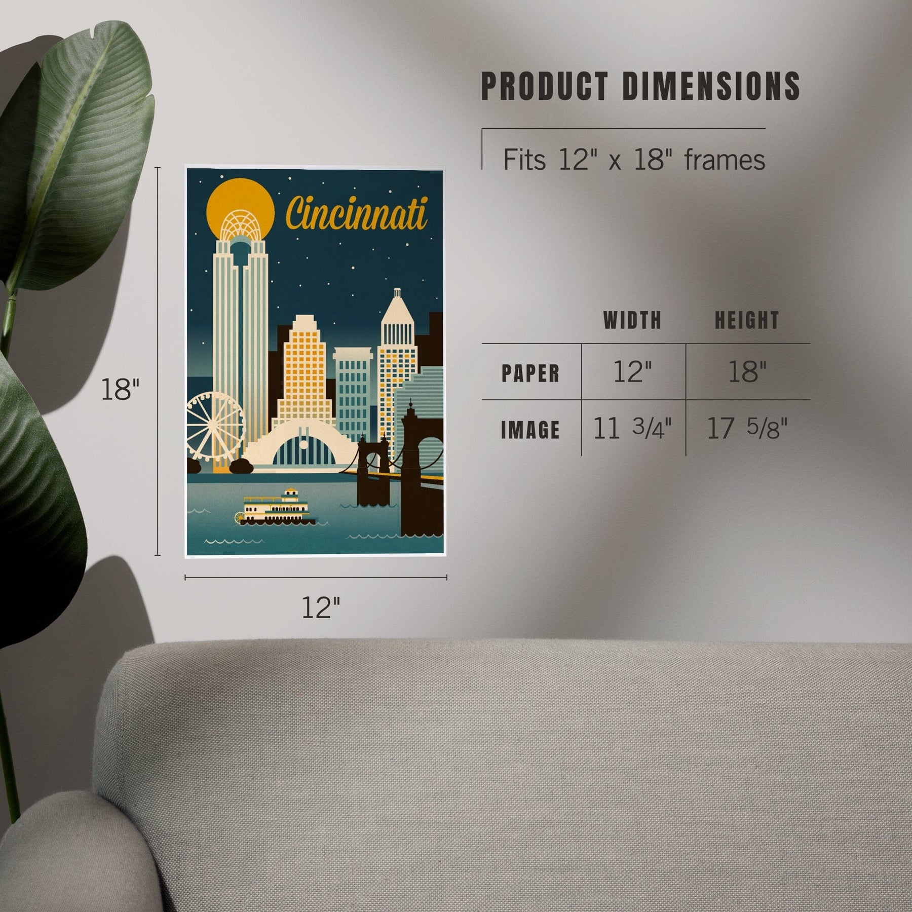 Cincinnati, Ohio, Retro Skyline Classic Series, Art & Giclee Prints - Lantern Press