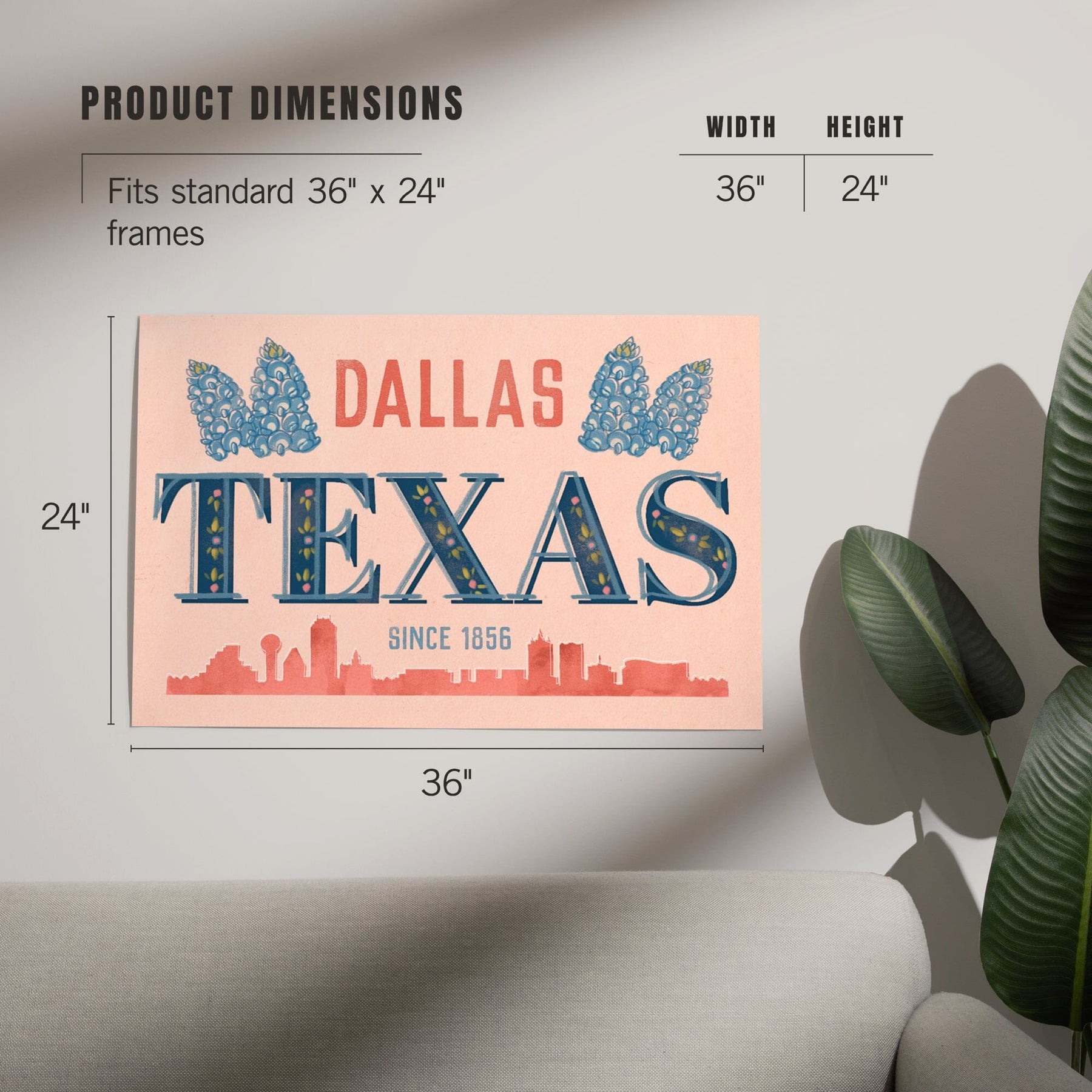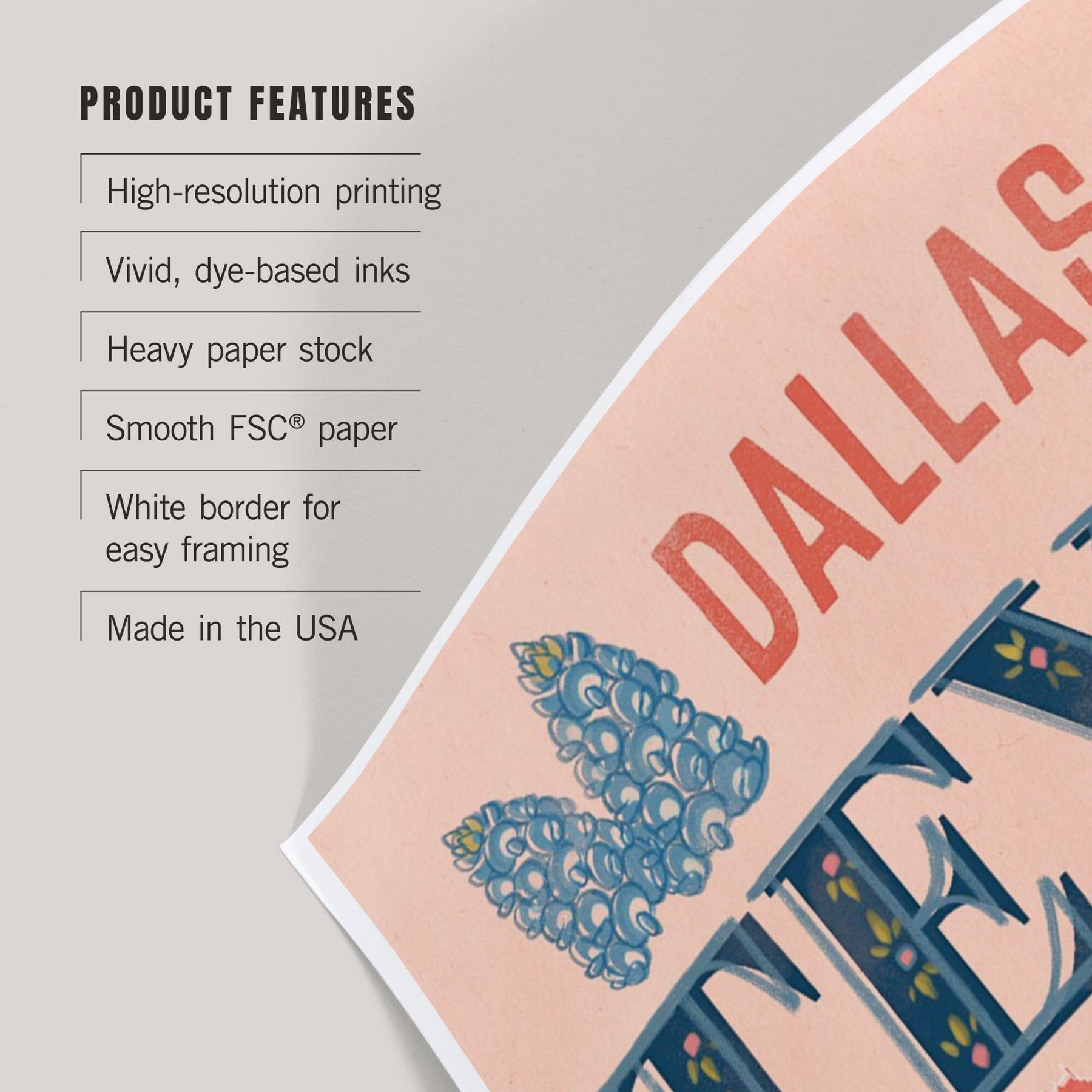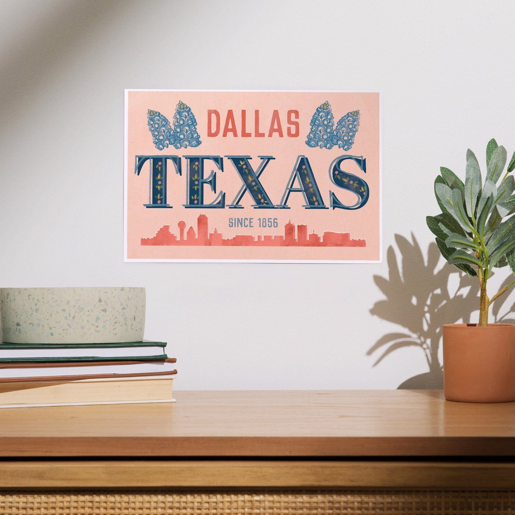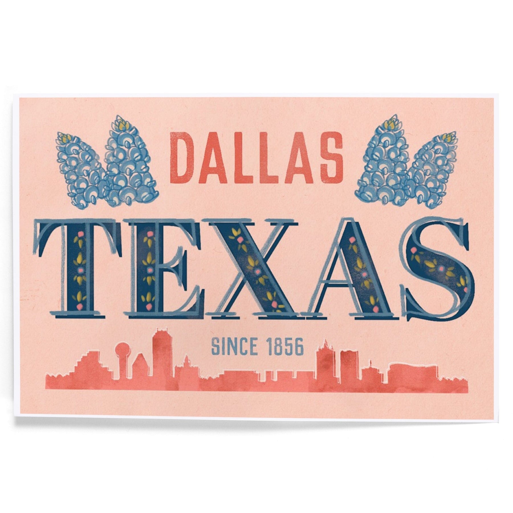 Dallas, Texas, Whimsy City Collection, Skyline and State Flowers, Art & Giclee Prints