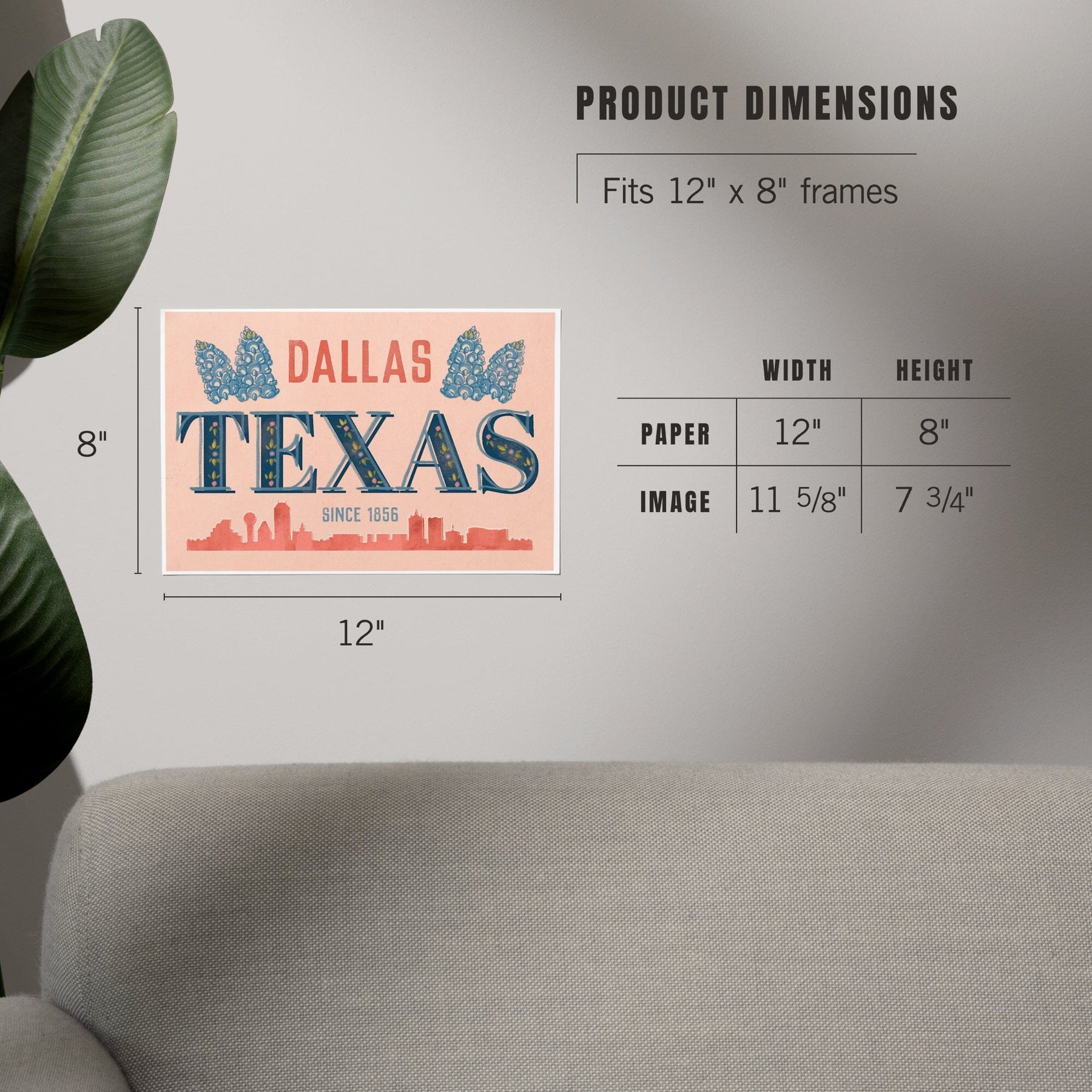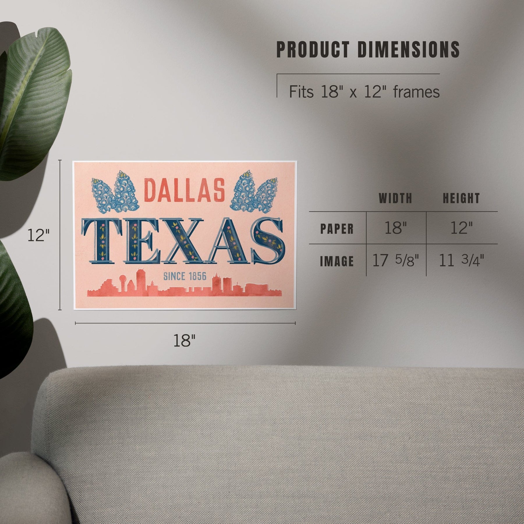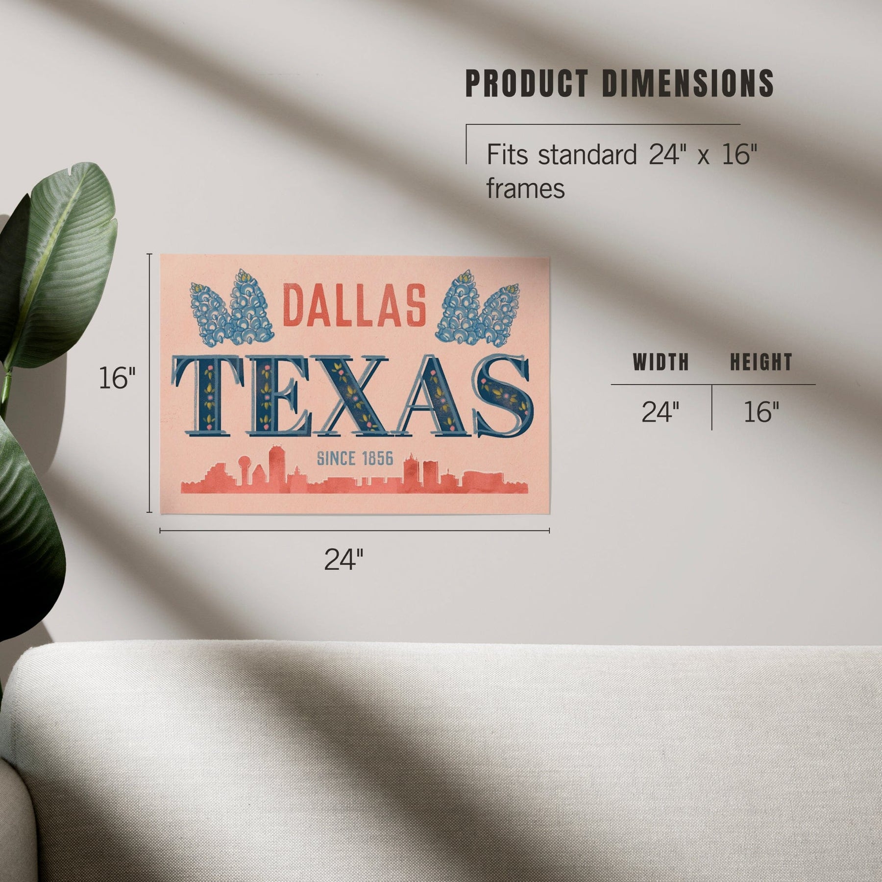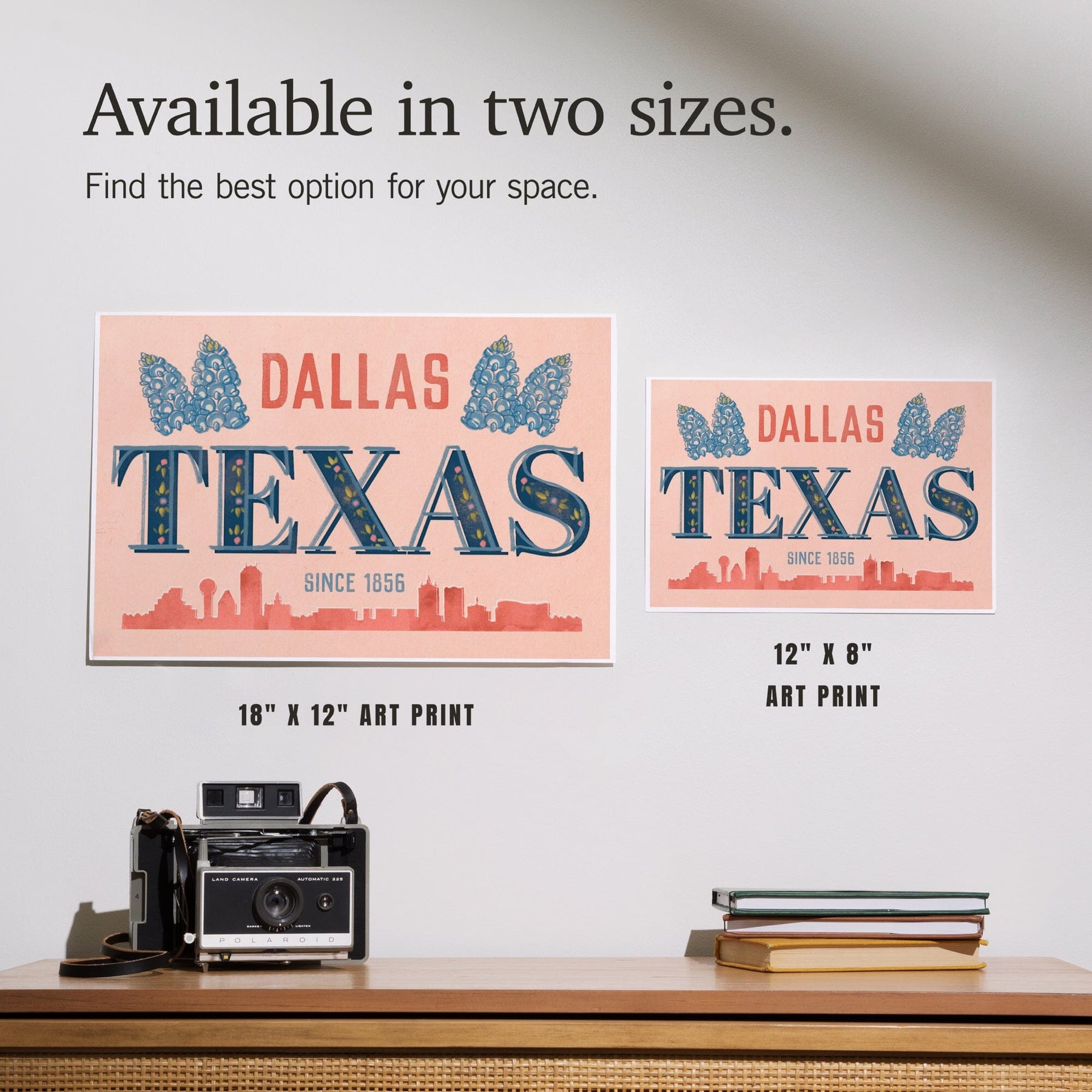 Dallas, Texas, Whimsy City Collection, Skyline and State Flowers, Art & Giclee Prints