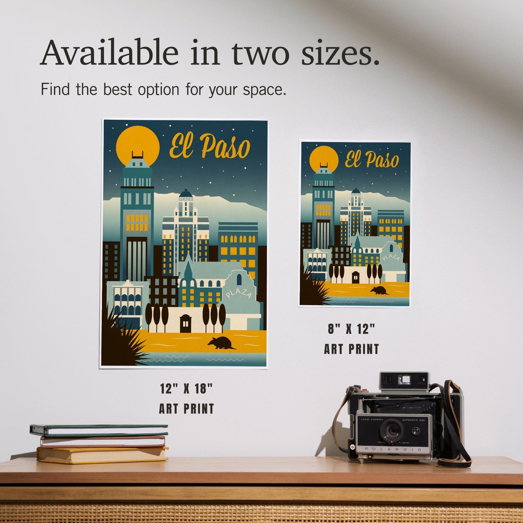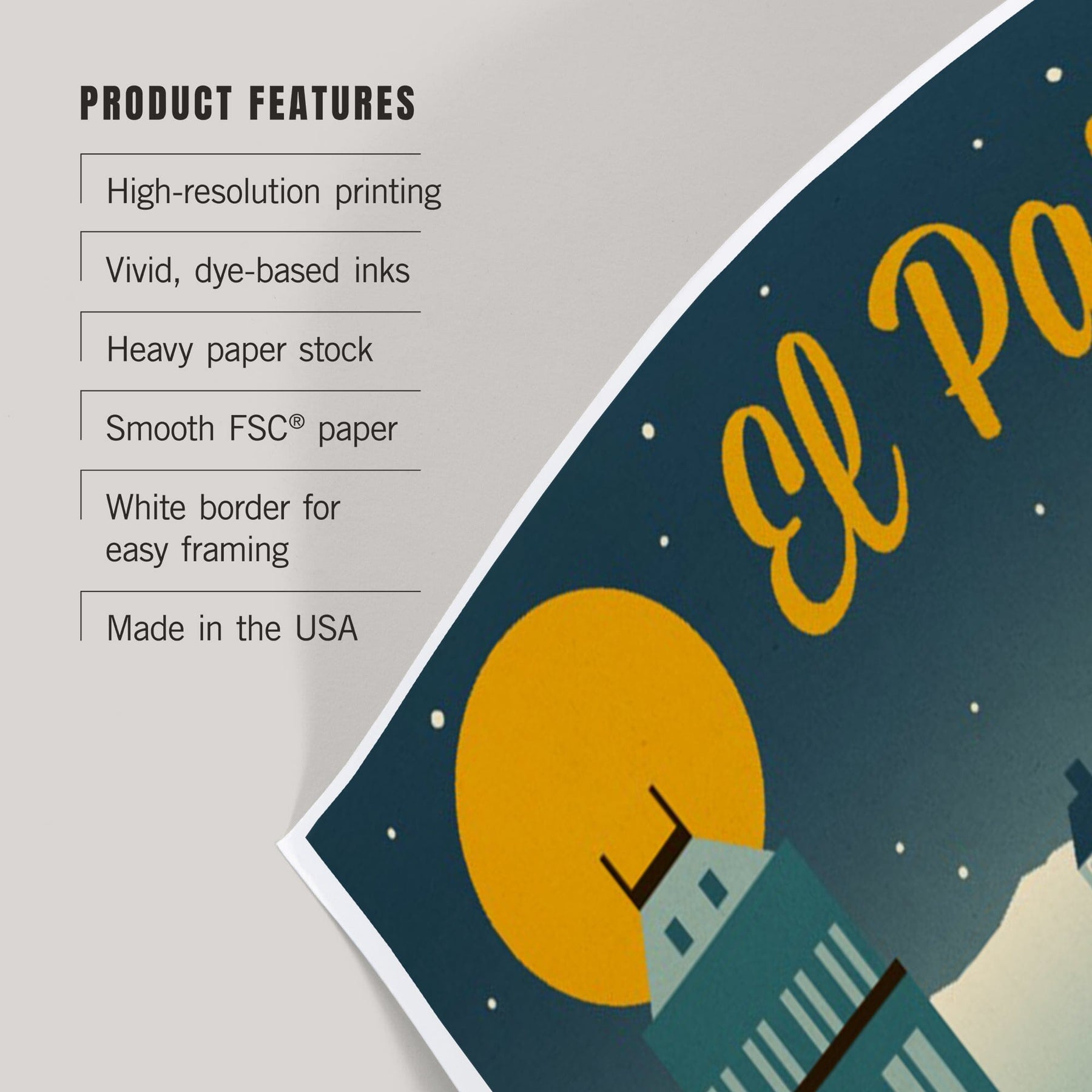 El Paso, Texas, Retro Skyline Series, Art & Giclee Prints - Lantern Press
