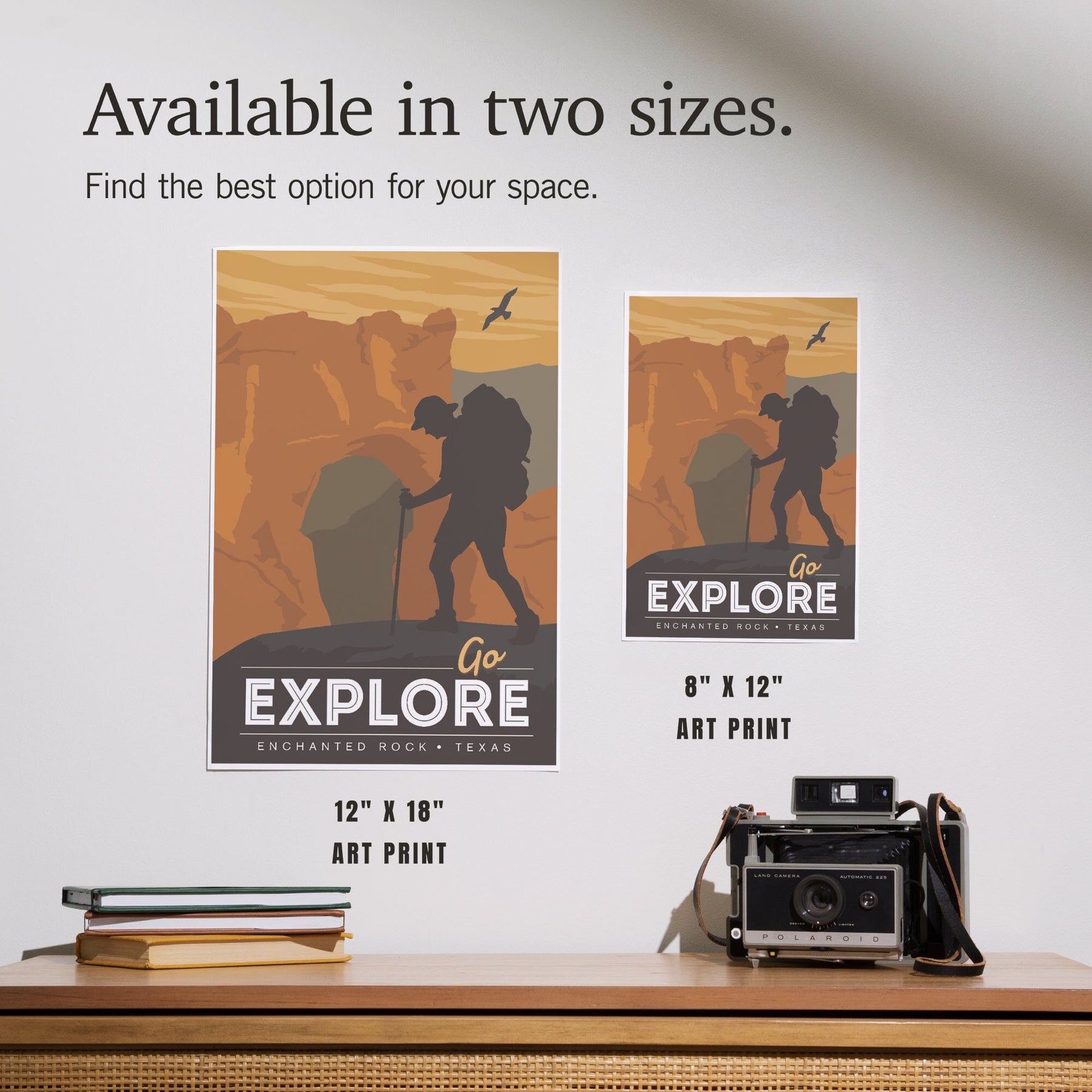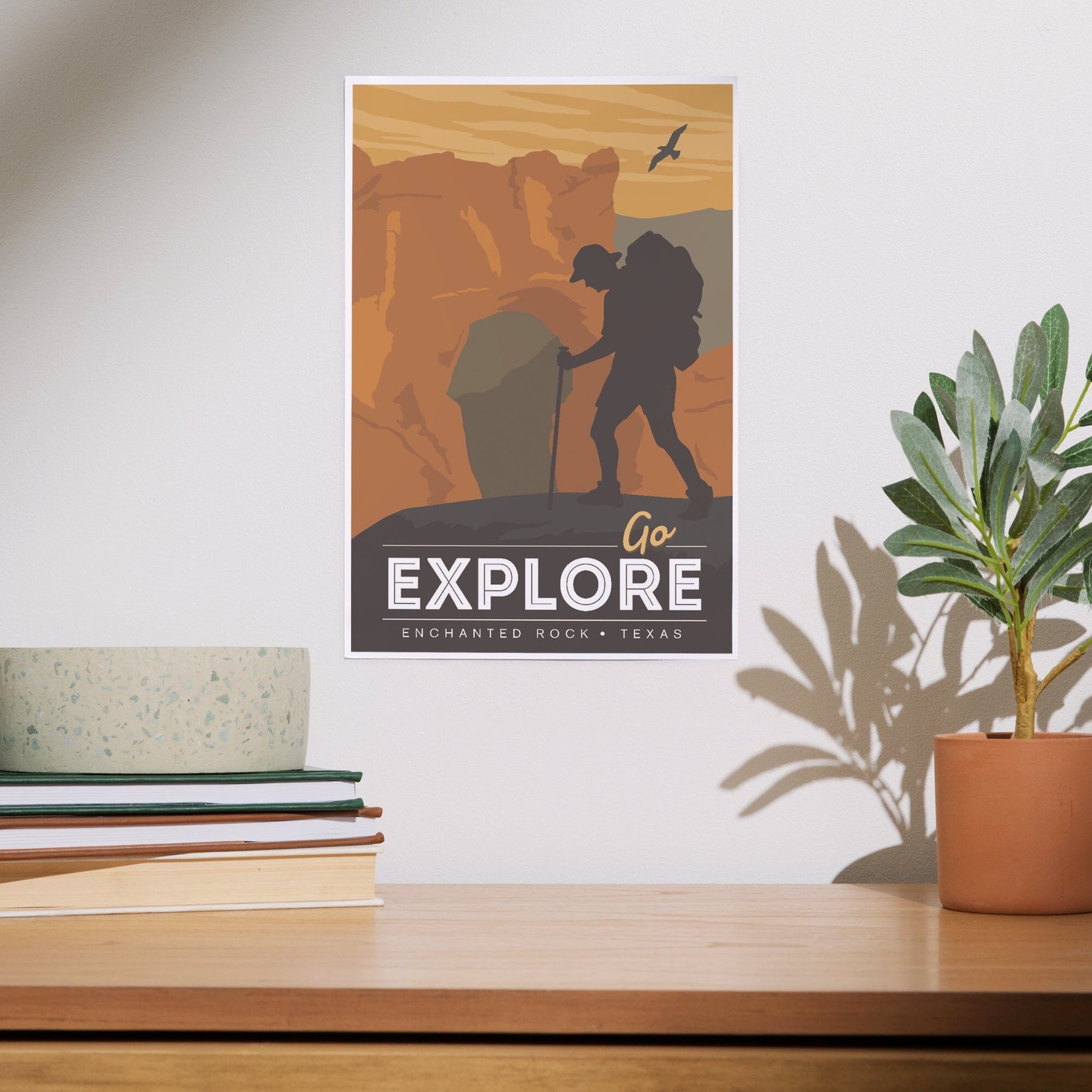 Enchanted Rock, Texas, Go Explore, Backpacker, Art & Giclee Prints - Lantern Press