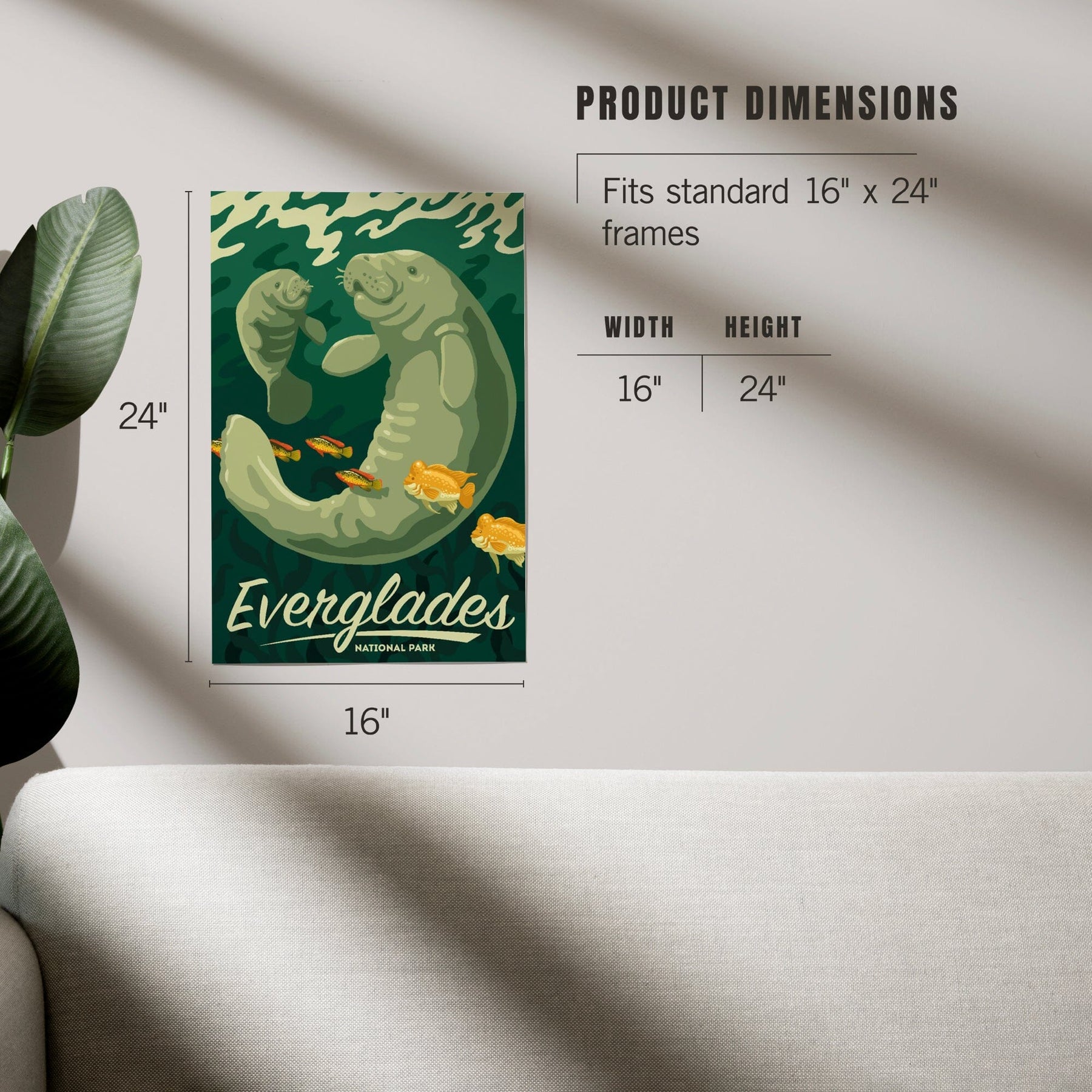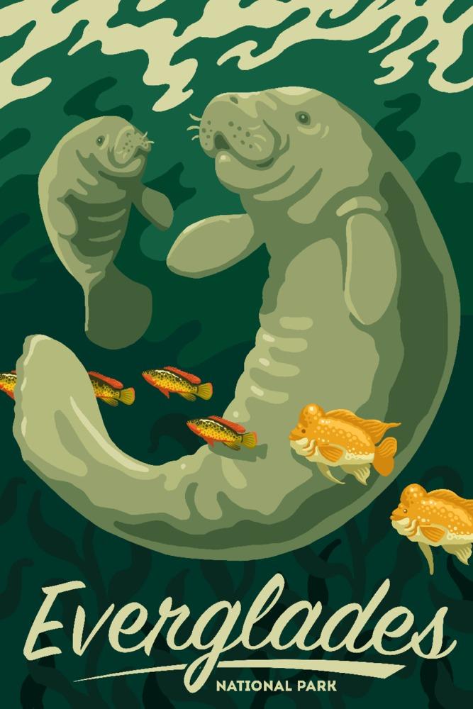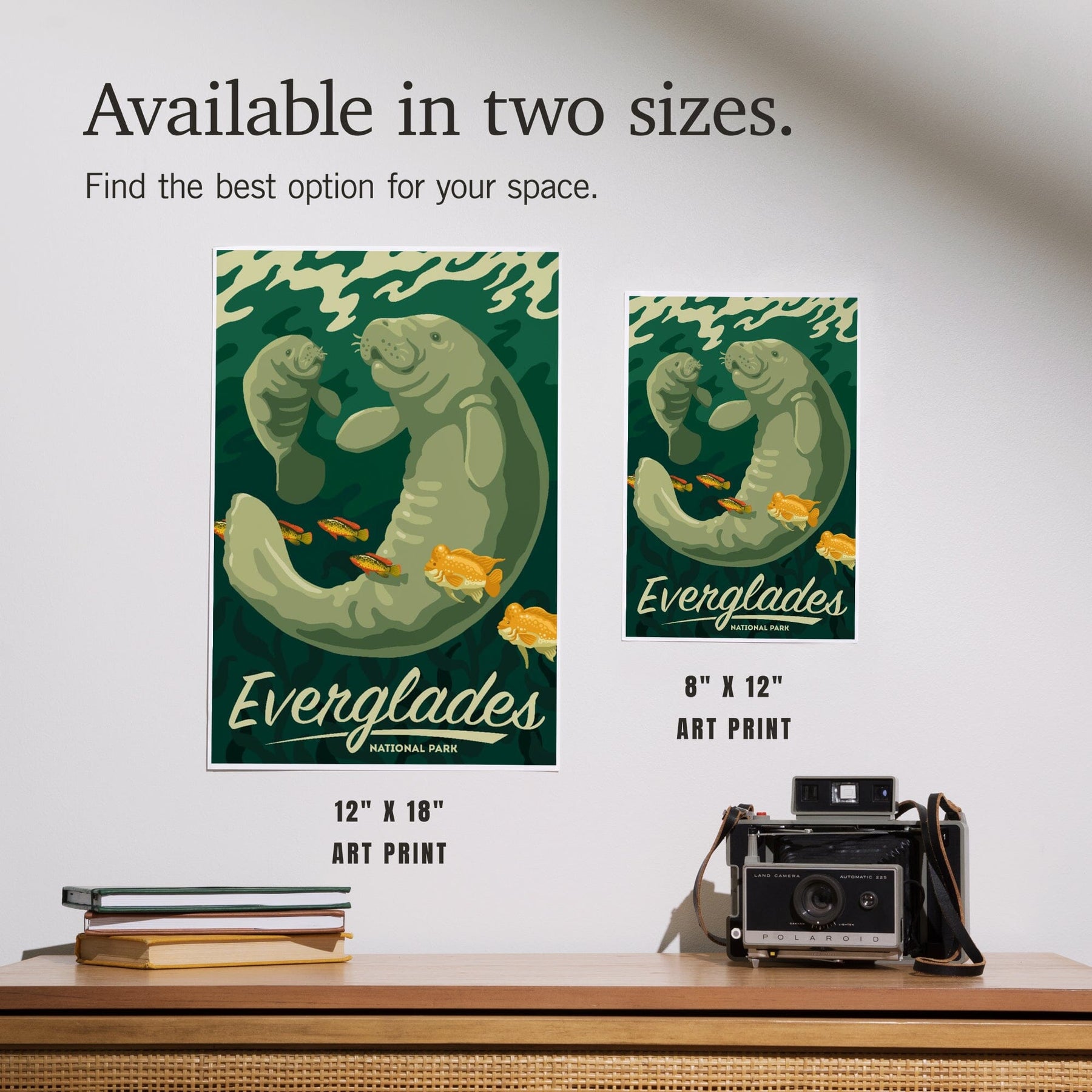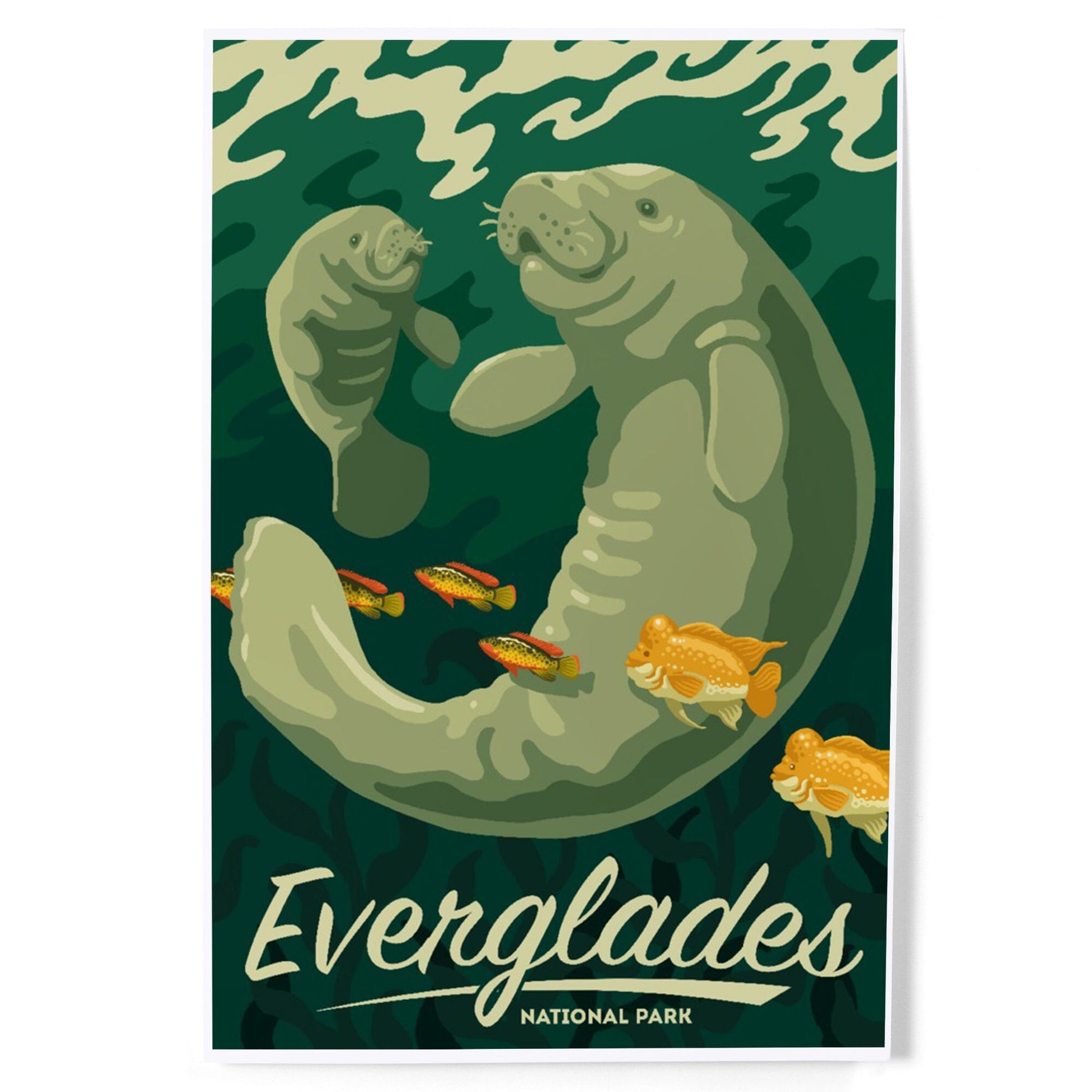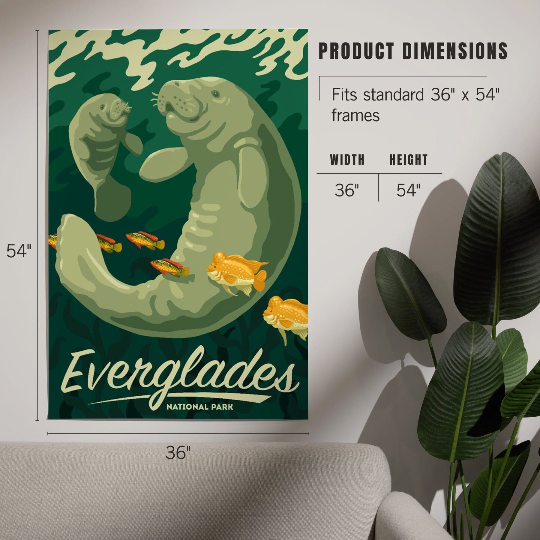 Everglades National Park, Manatee and Calf Swimming, Art & Giclee Prints - Lantern Press
