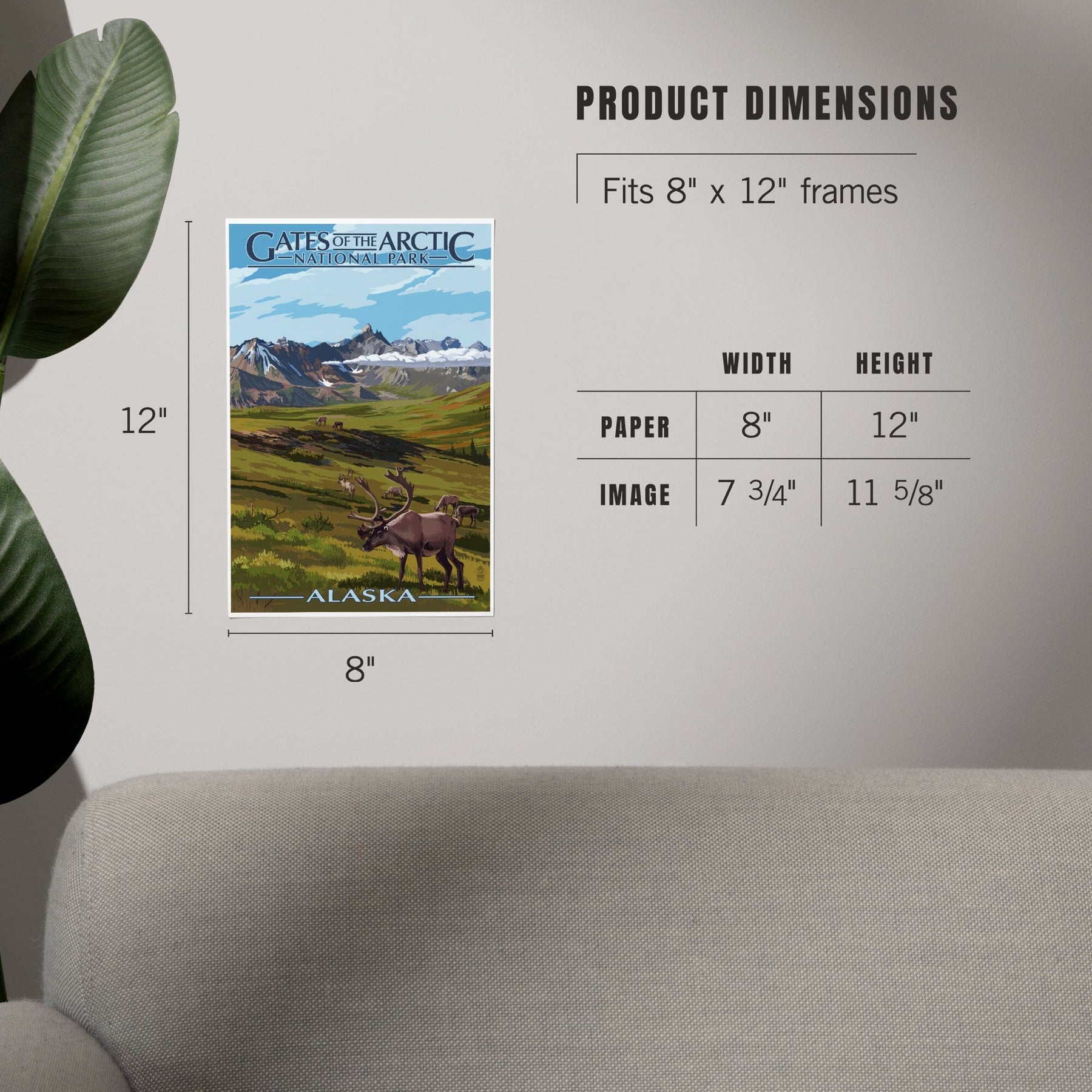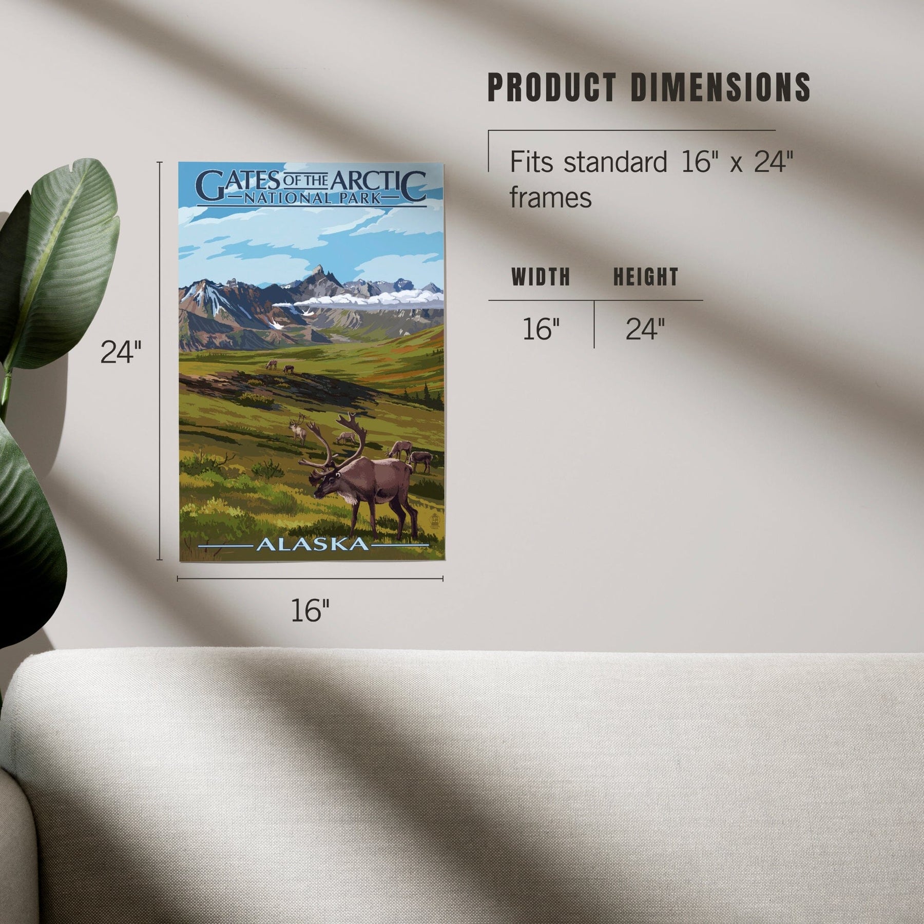 Gates of the Arctic National Park, Alaska, Caribou and Mountains, Art & Giclee Prints - Lantern Press