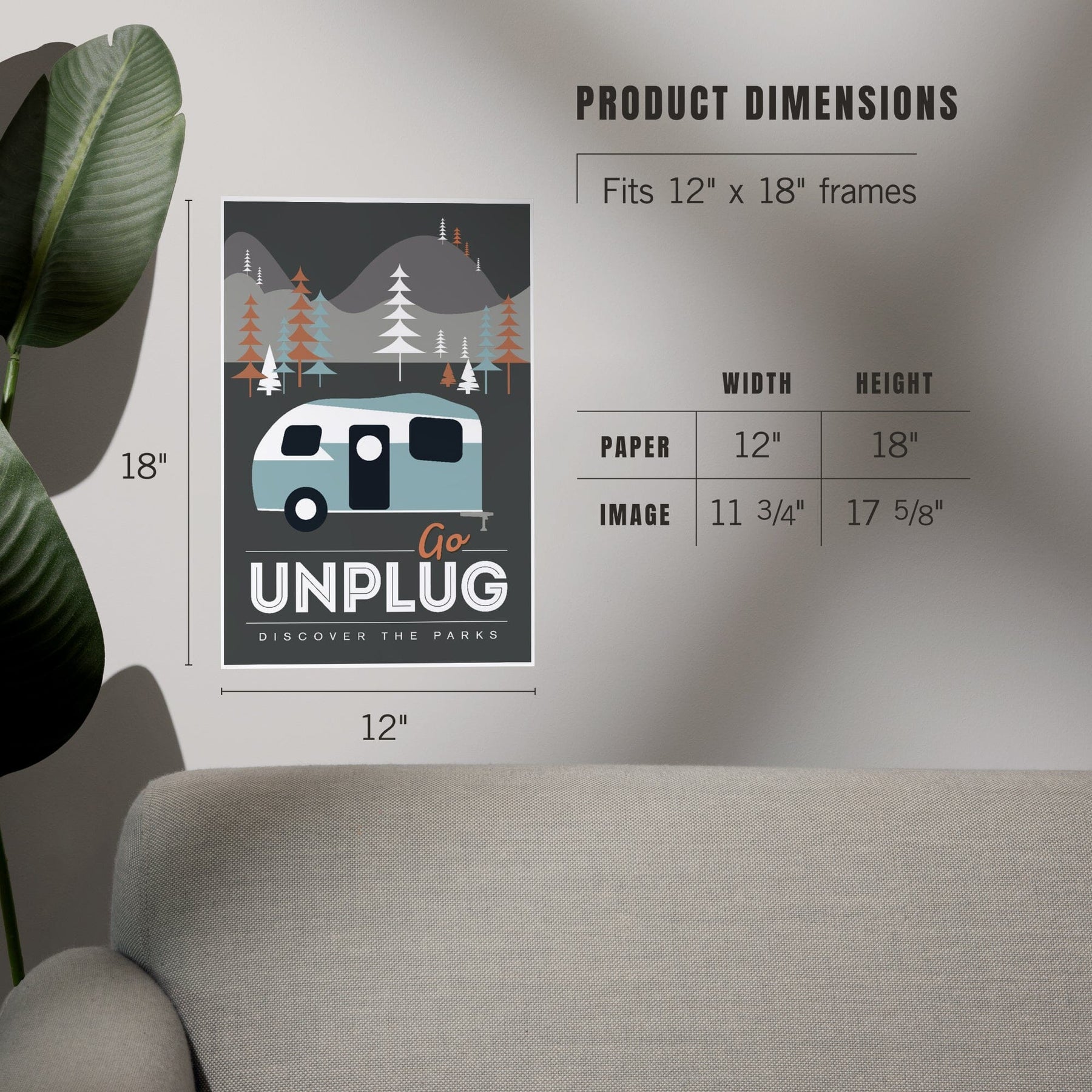 Go Unplug (Camper), Discover the Parks, Vector Style, Art & Giclee Prints - Lantern Press