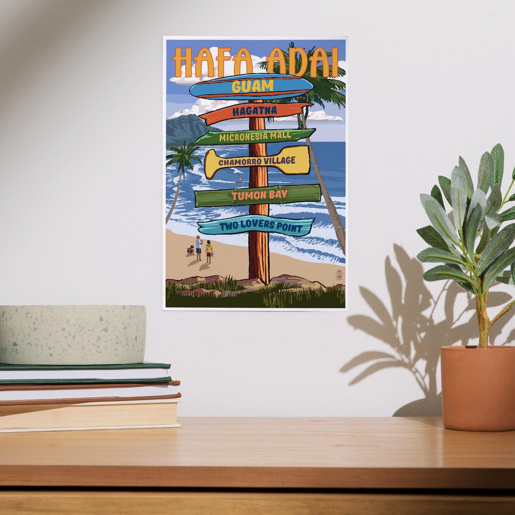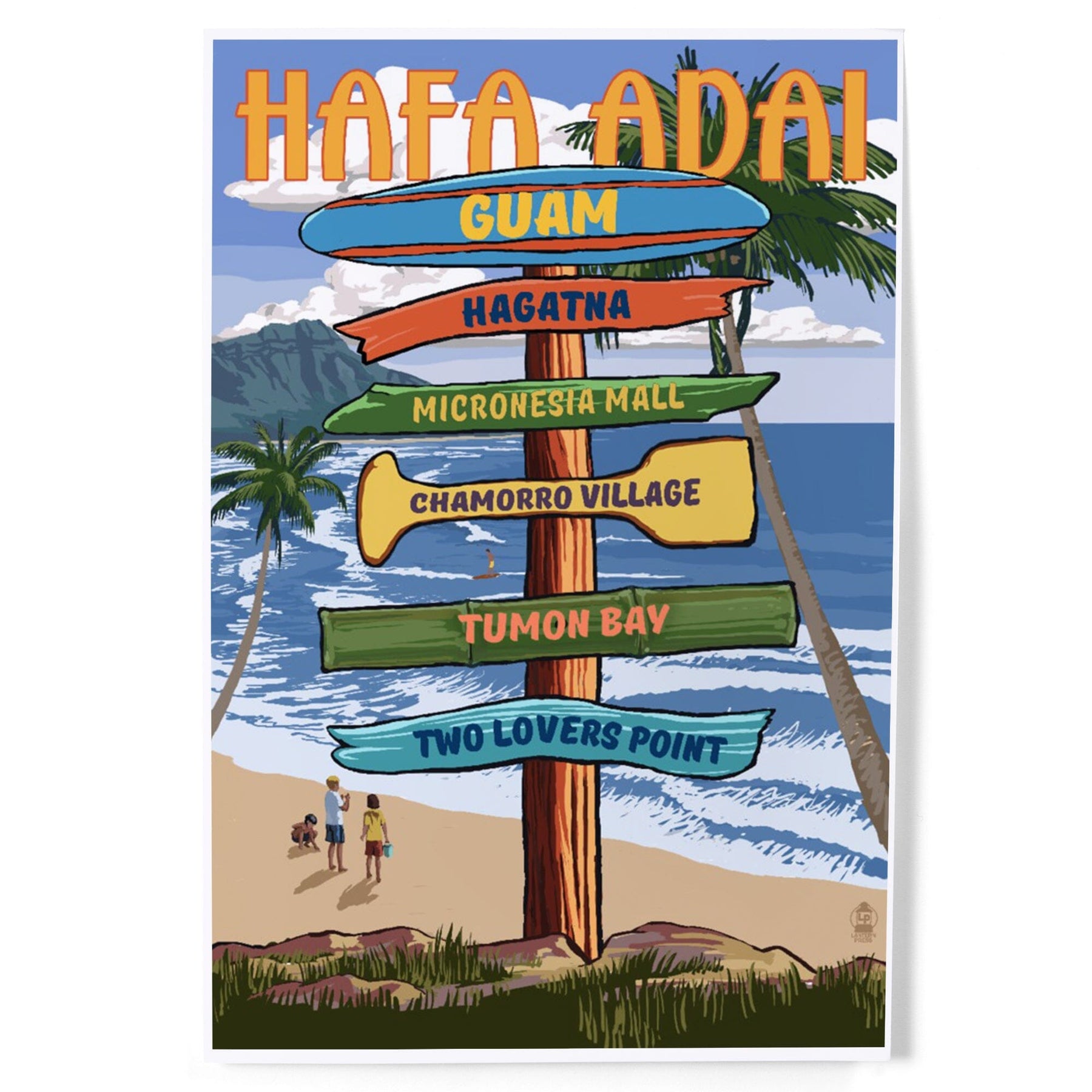 Hafa Adai, Guam, Destination Signpost, Art & Giclee Prints - Lantern Press
