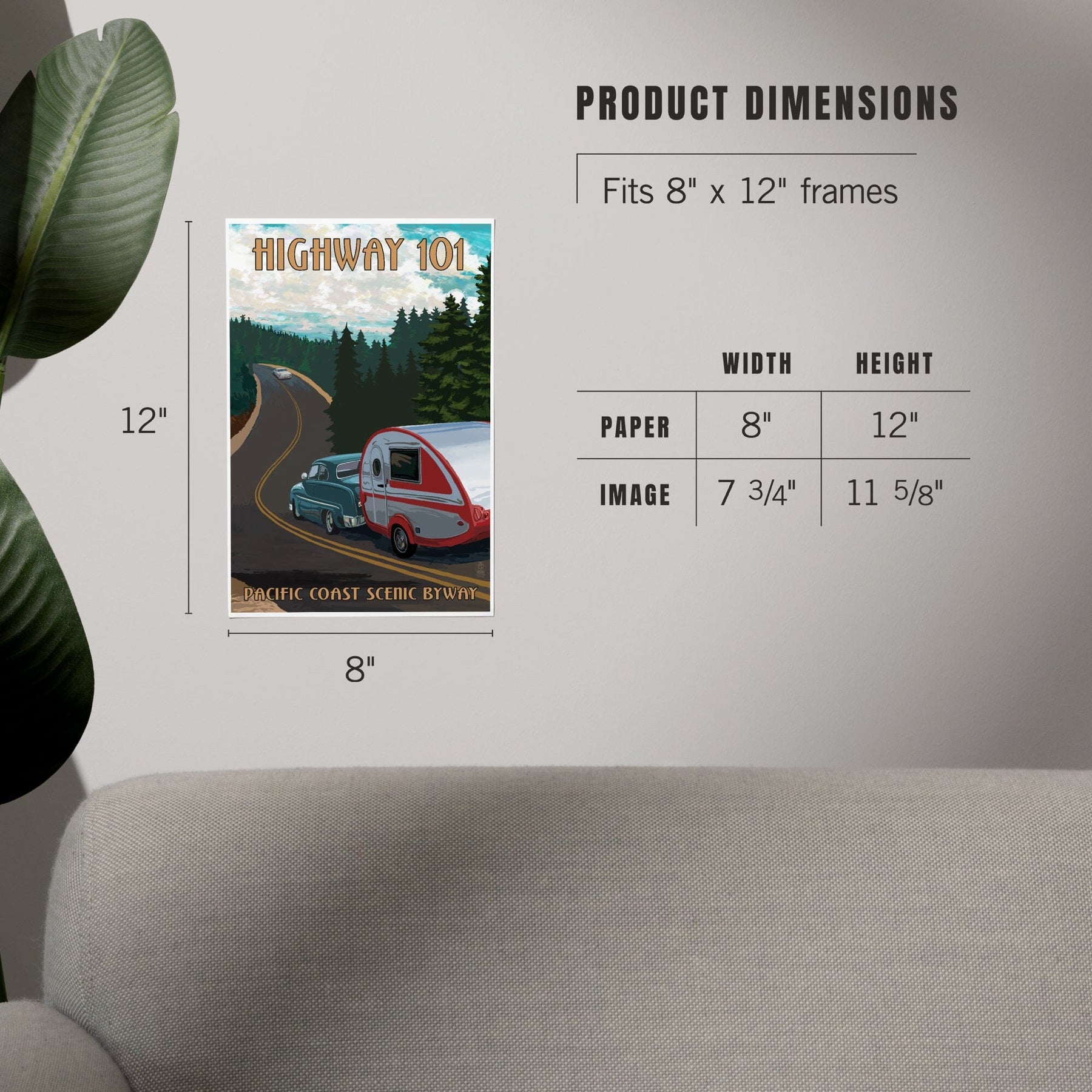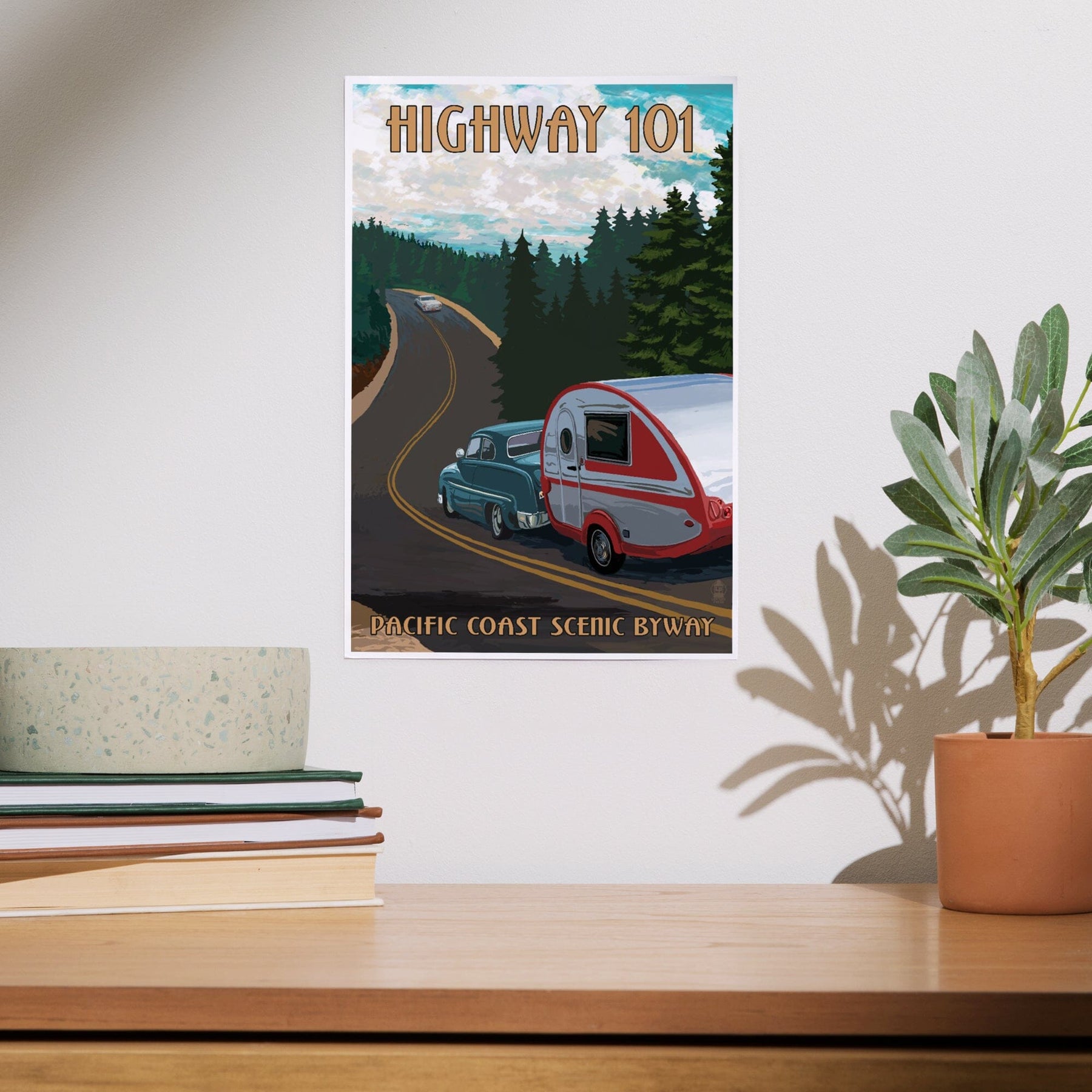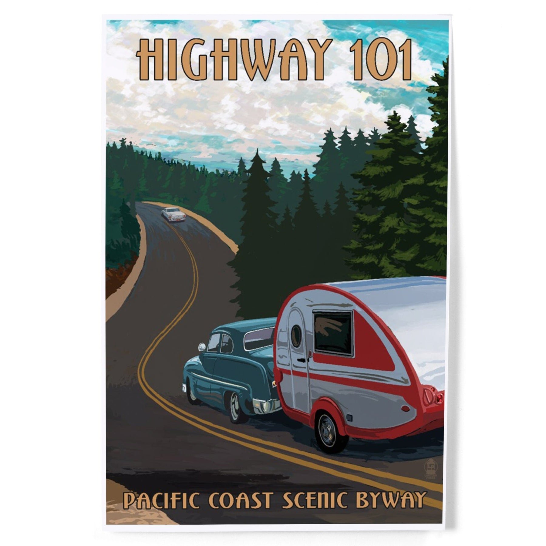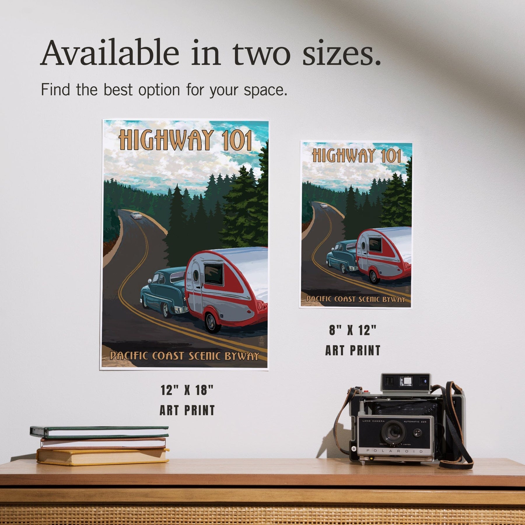 Highway 101, Pacific Coast Scenic Byway, Retro Camper, Art & Giclee Prints - Lantern Press