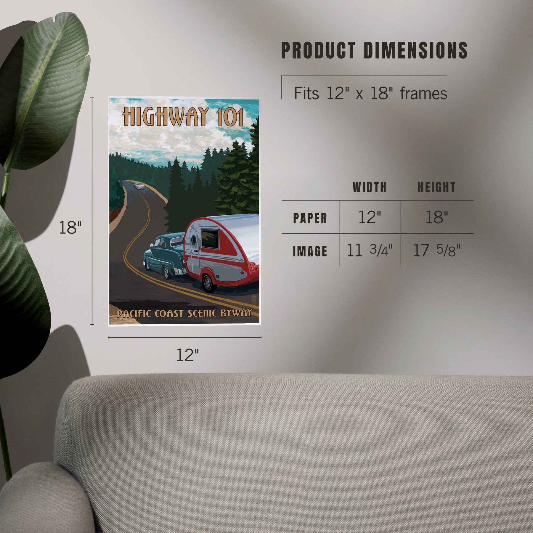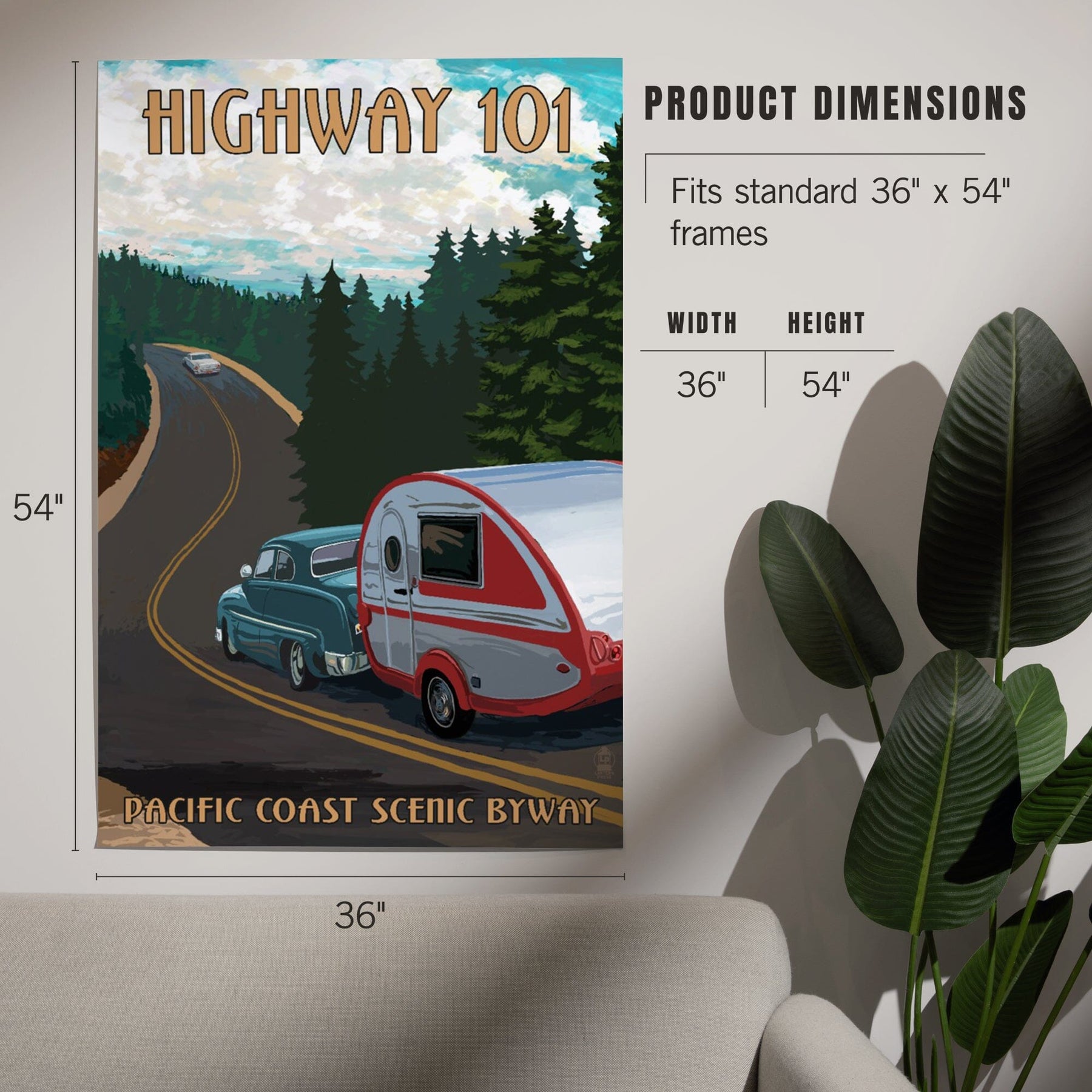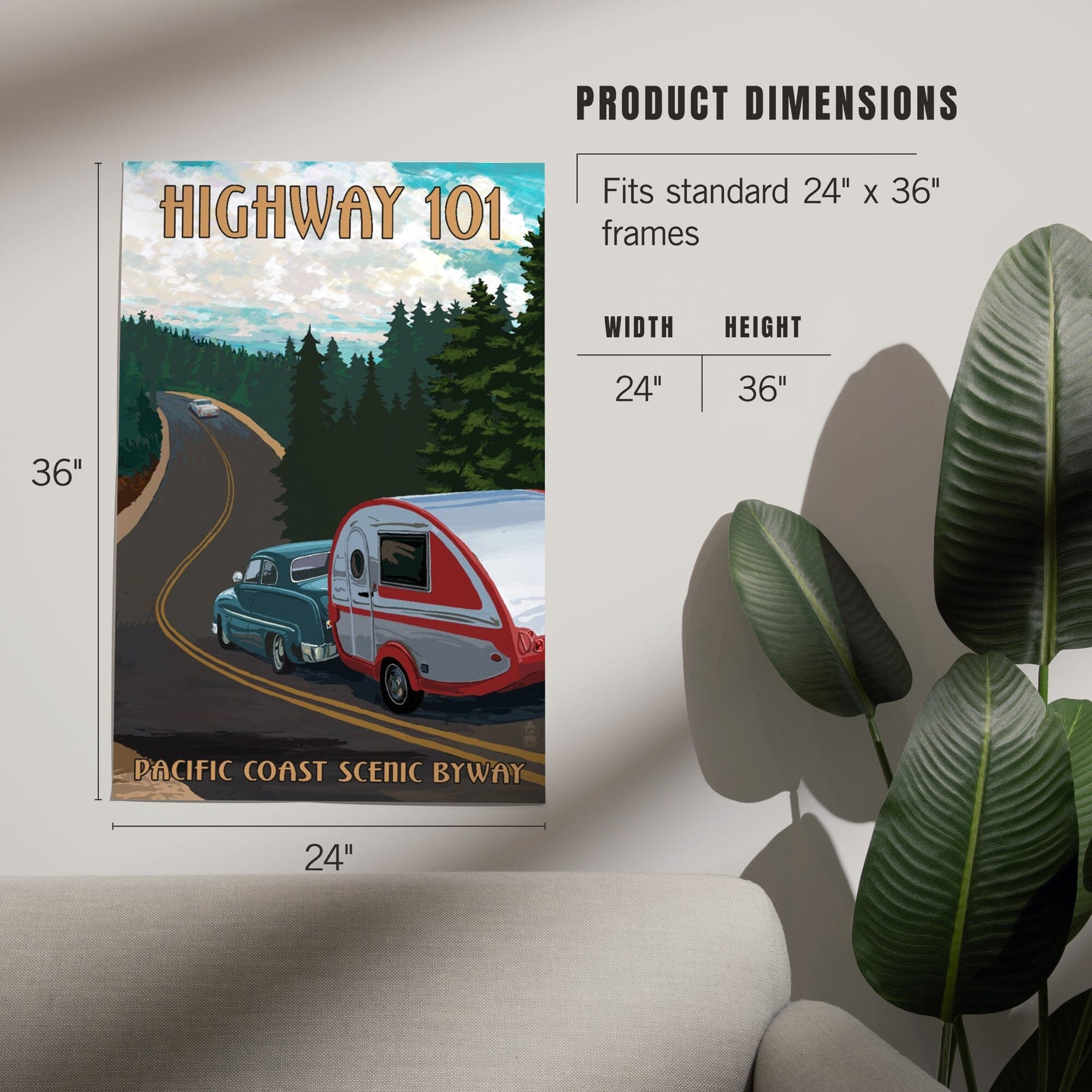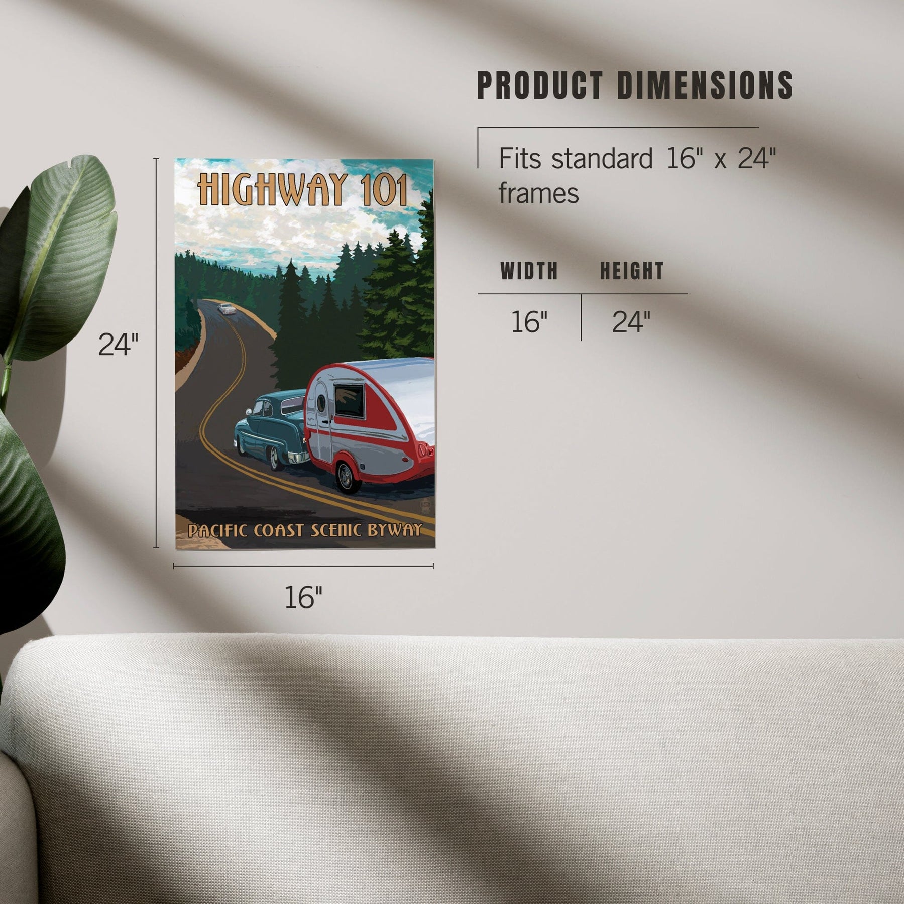 Highway 101, Pacific Coast Scenic Byway, Retro Camper, Art & Giclee Prints - Lantern Press