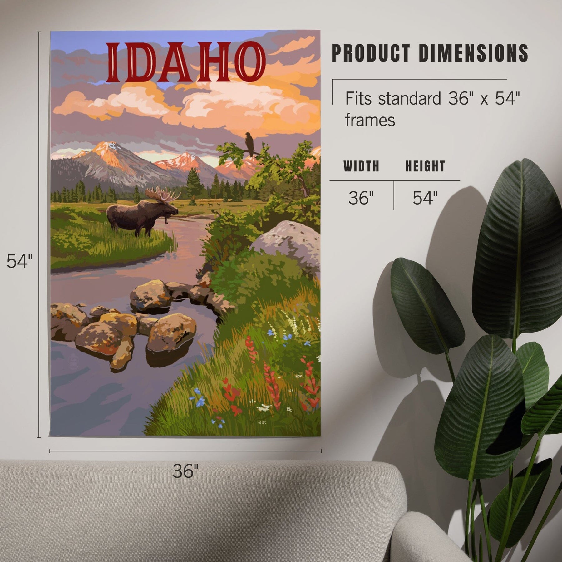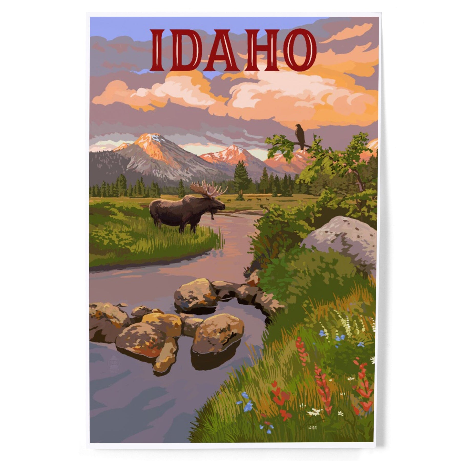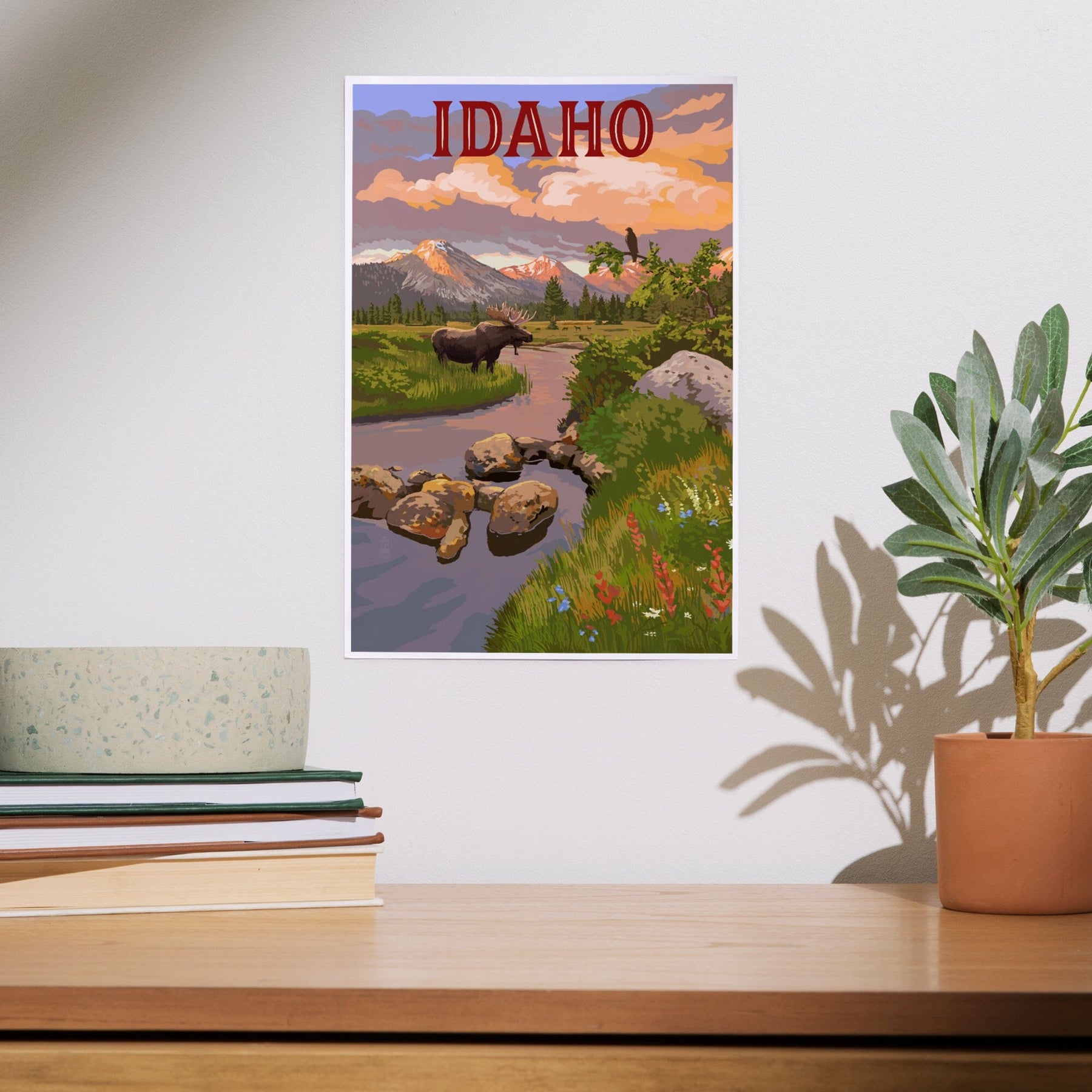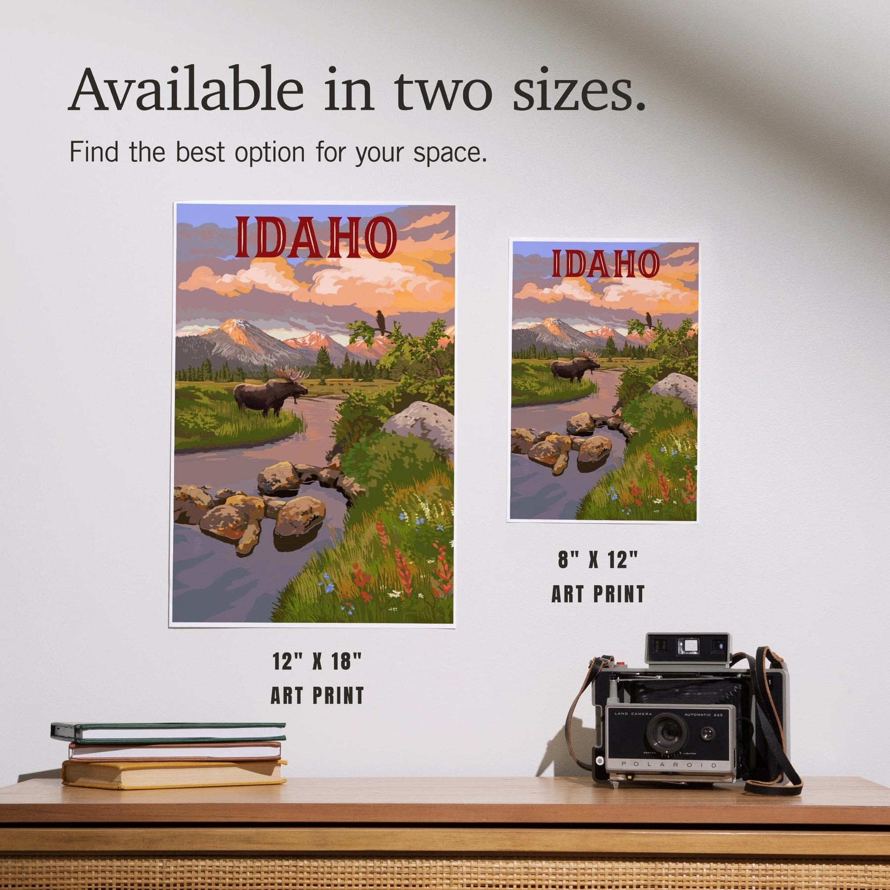 Idaho, Moose and Mountain at Sunset, Art & Giclee Prints - Lantern Press