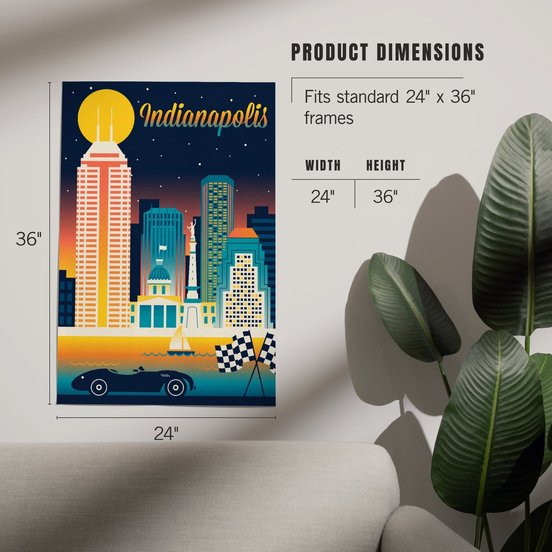 Indianapolis, Indiana, Retro Skyline Chromatic Series, Art & Giclee Prints