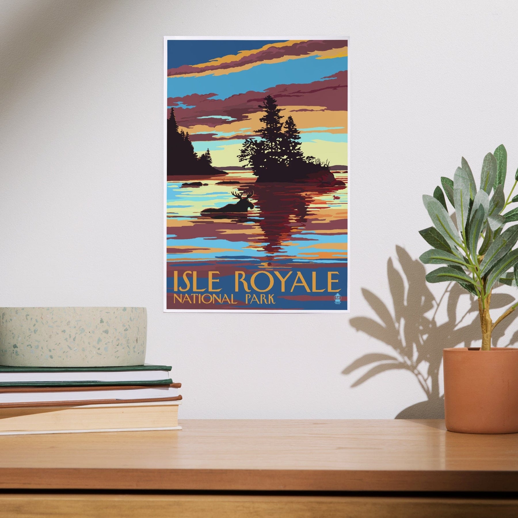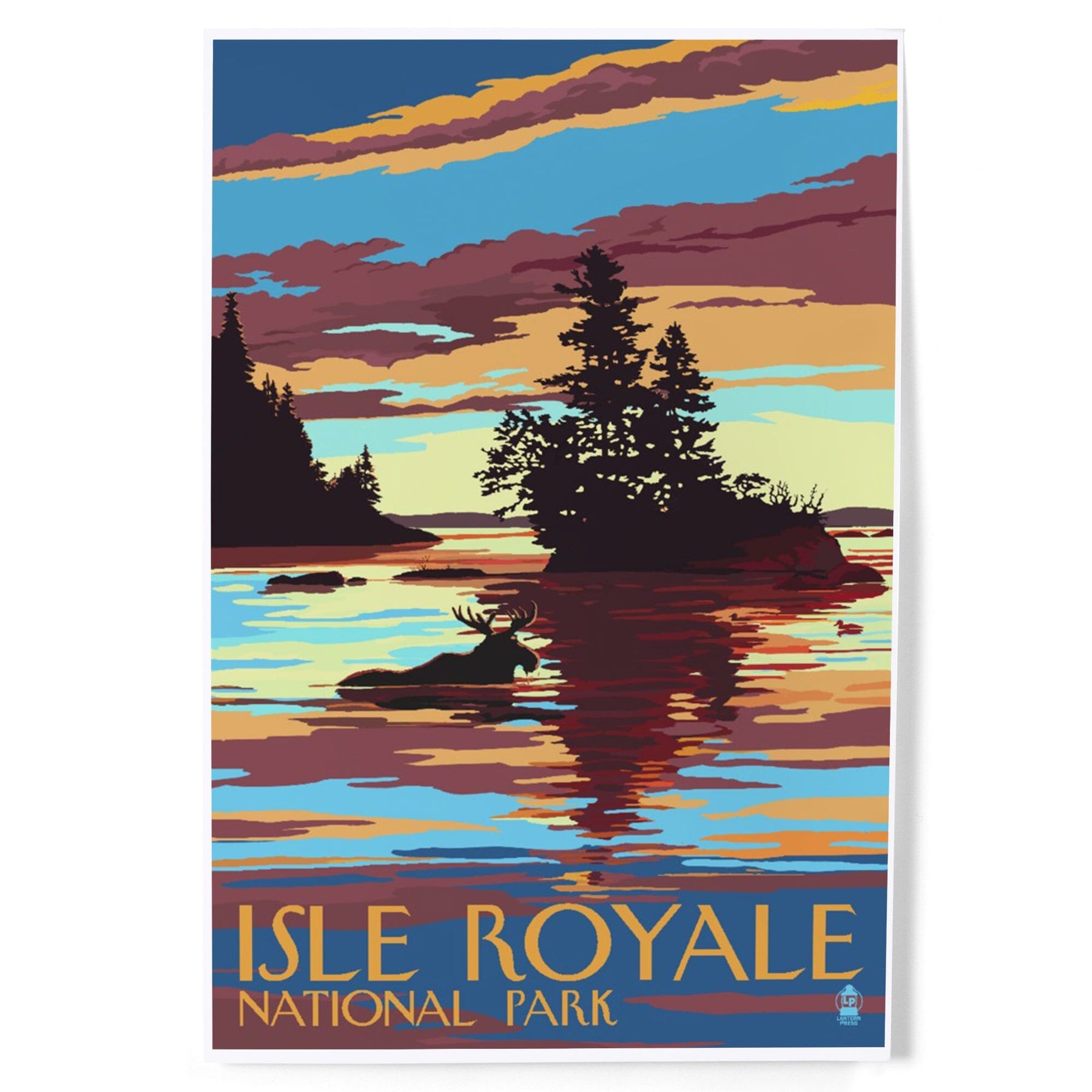 Isle Royale National Park, Michigan, Moose Swimming at Sunset, Art & Giclee Prints - Lantern Press