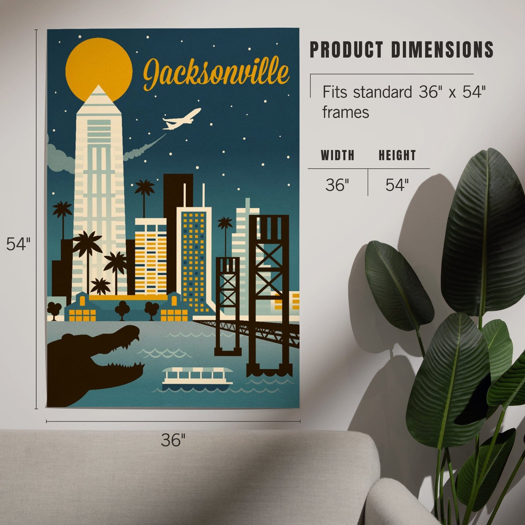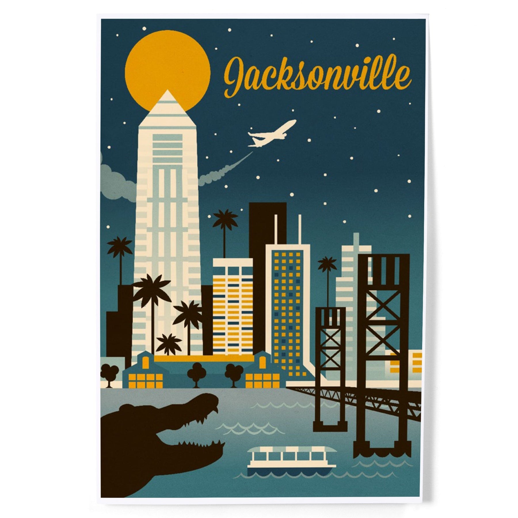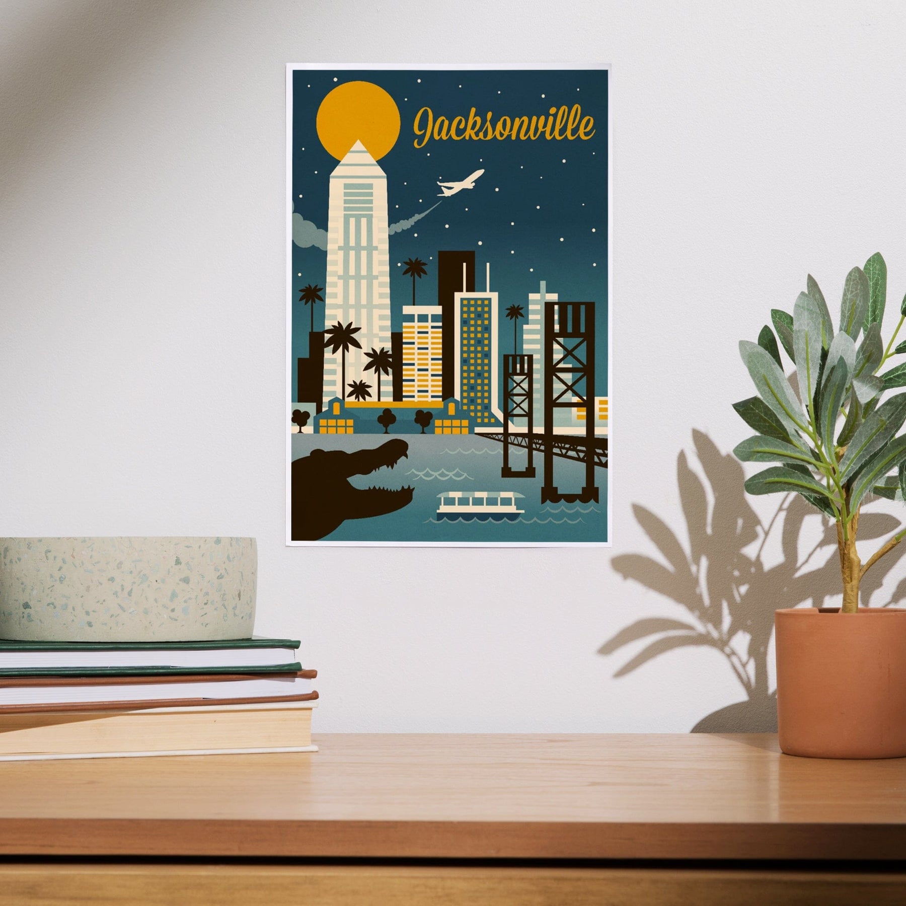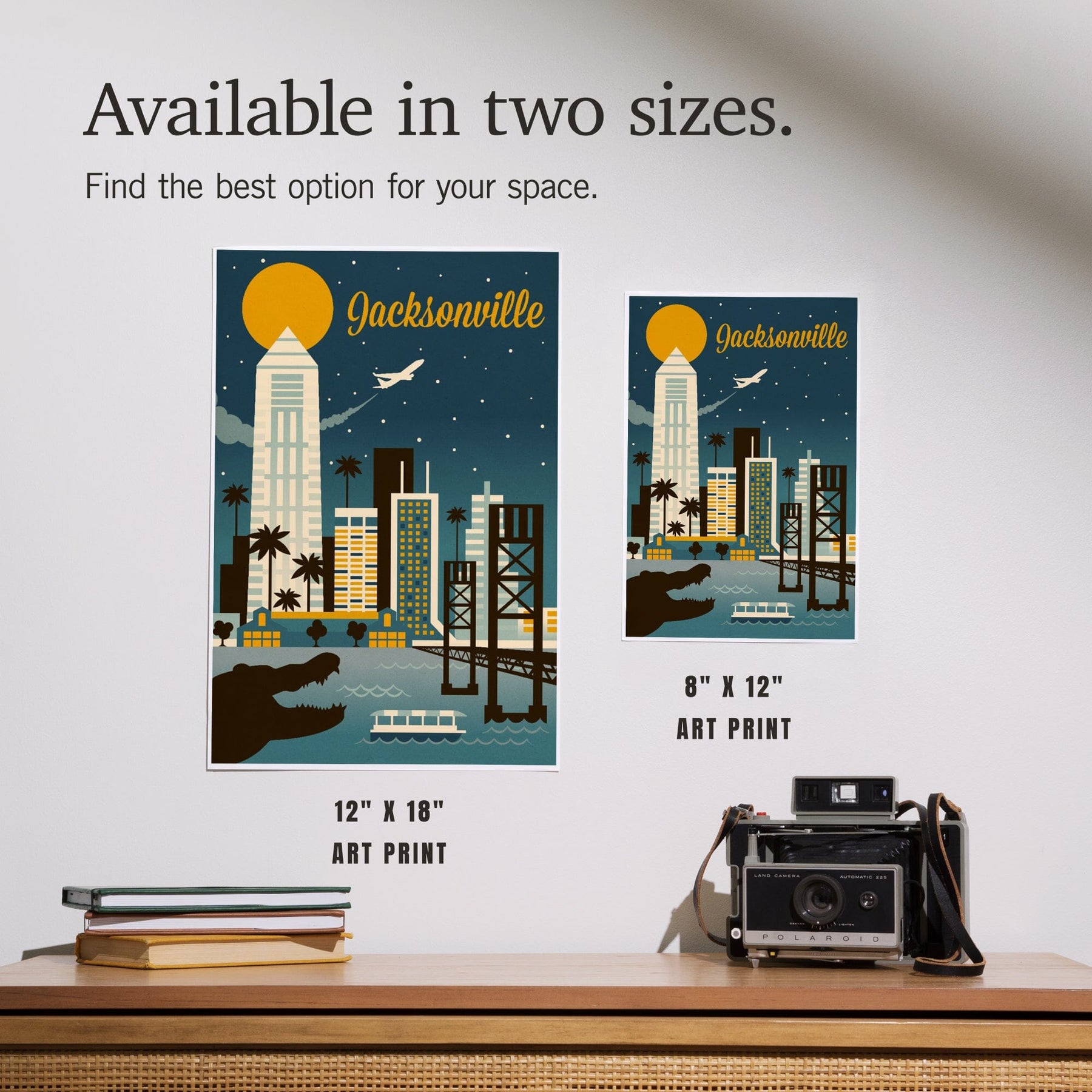 Jacksonville, Florida, Retro Skyline Series, Art & Giclee Prints - Lantern Press