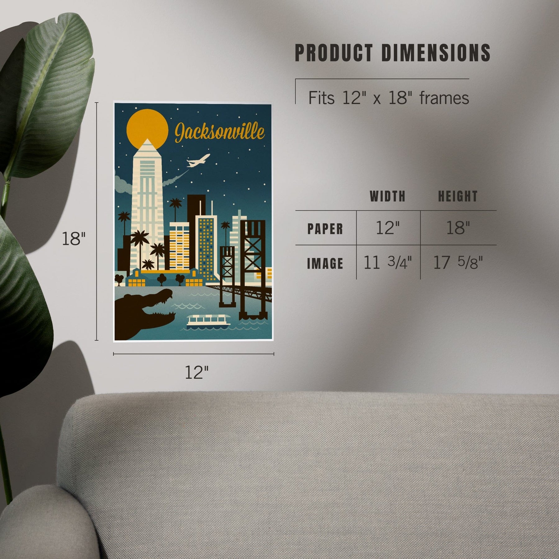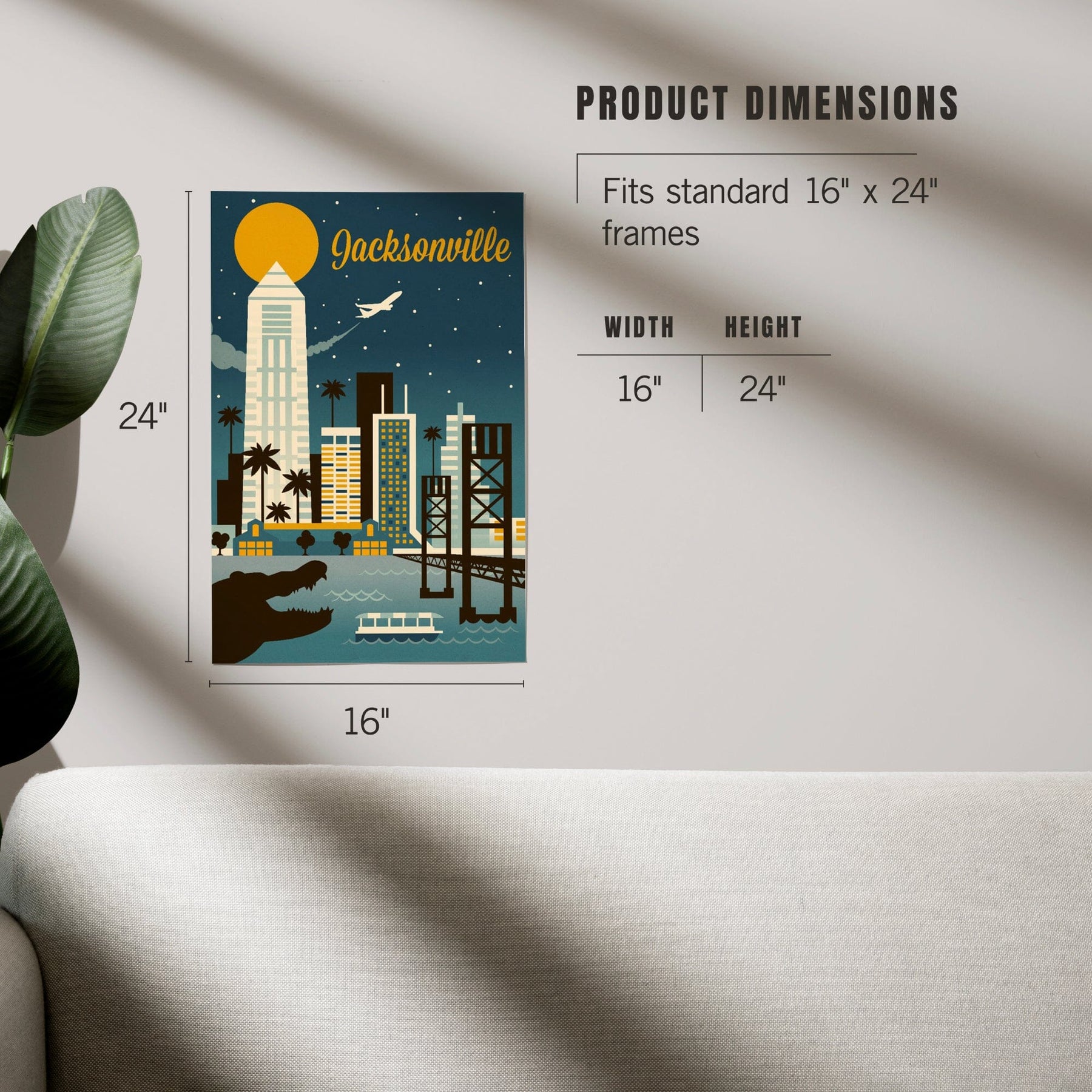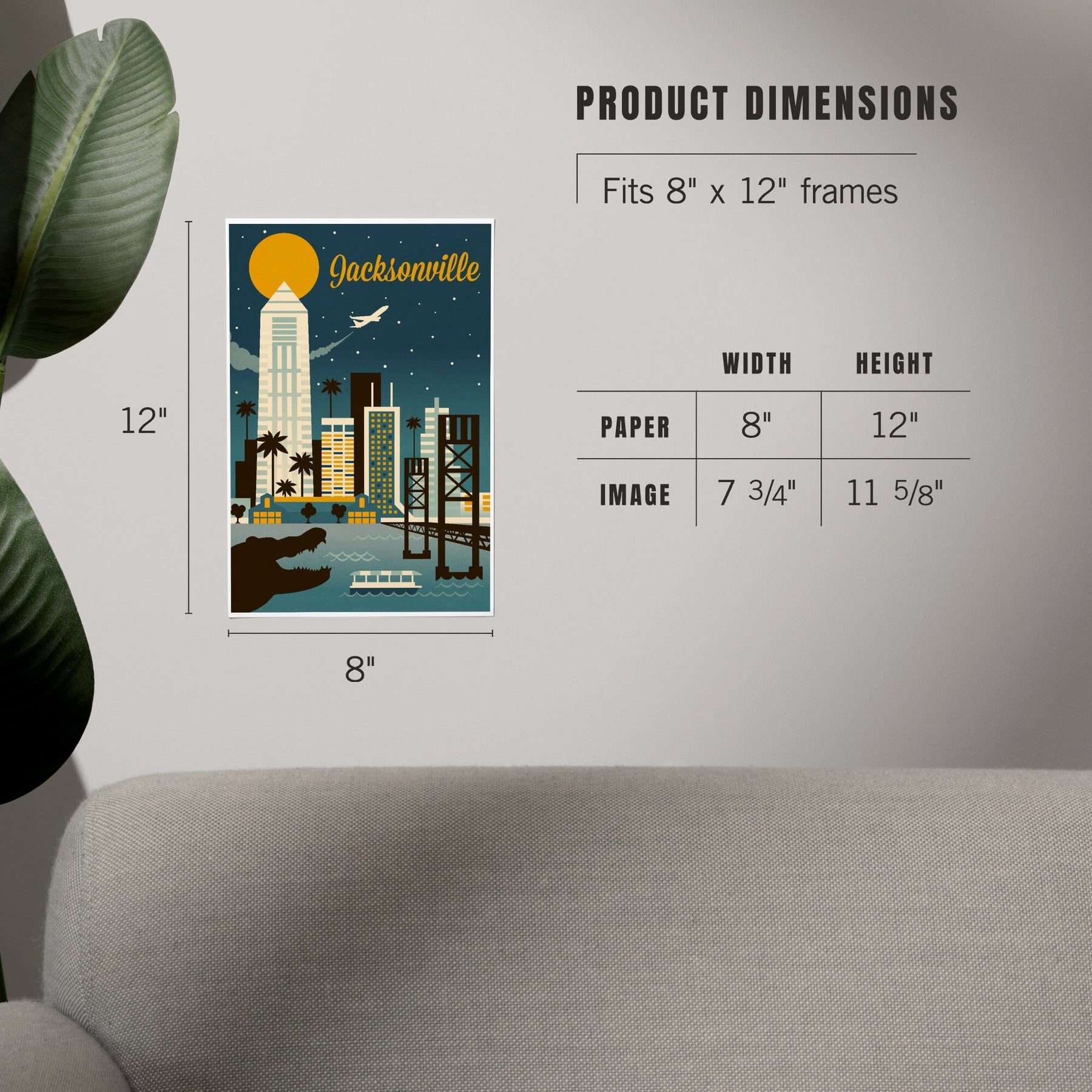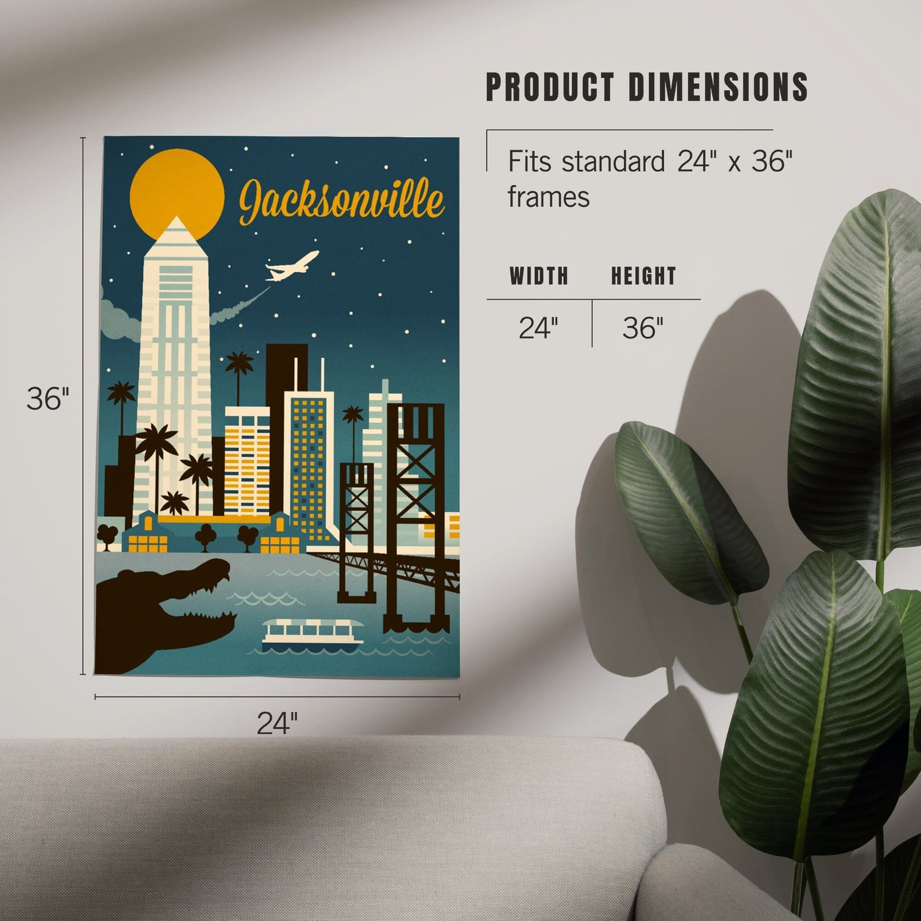 Jacksonville, Florida, Retro Skyline Series, Art & Giclee Prints - Lantern Press