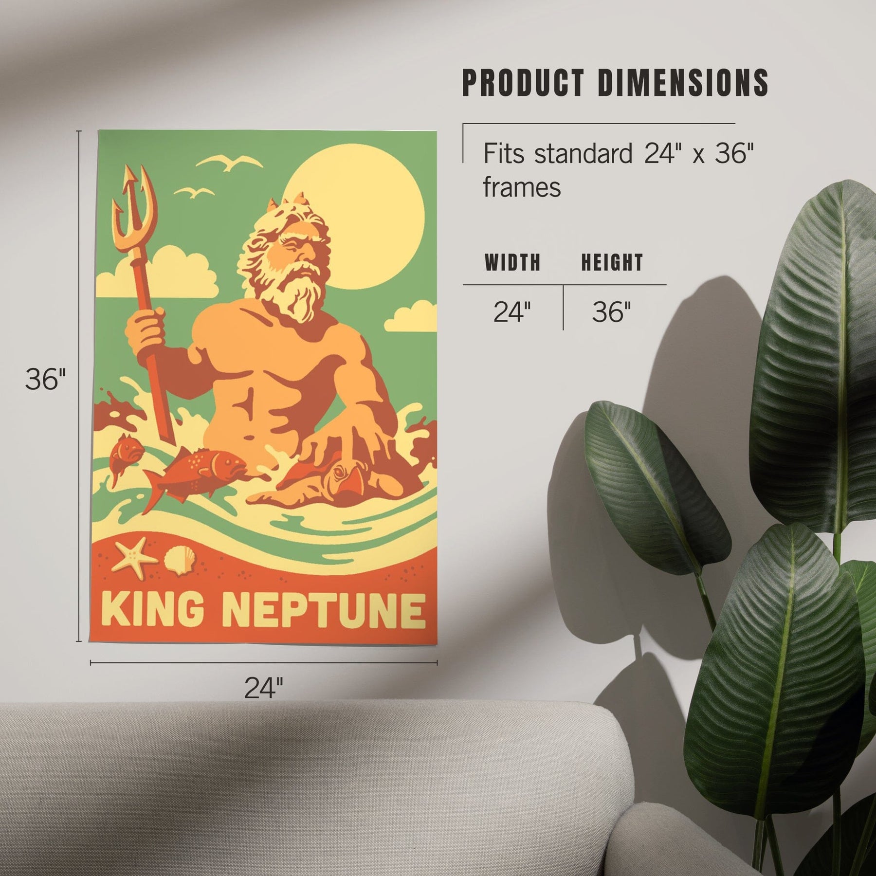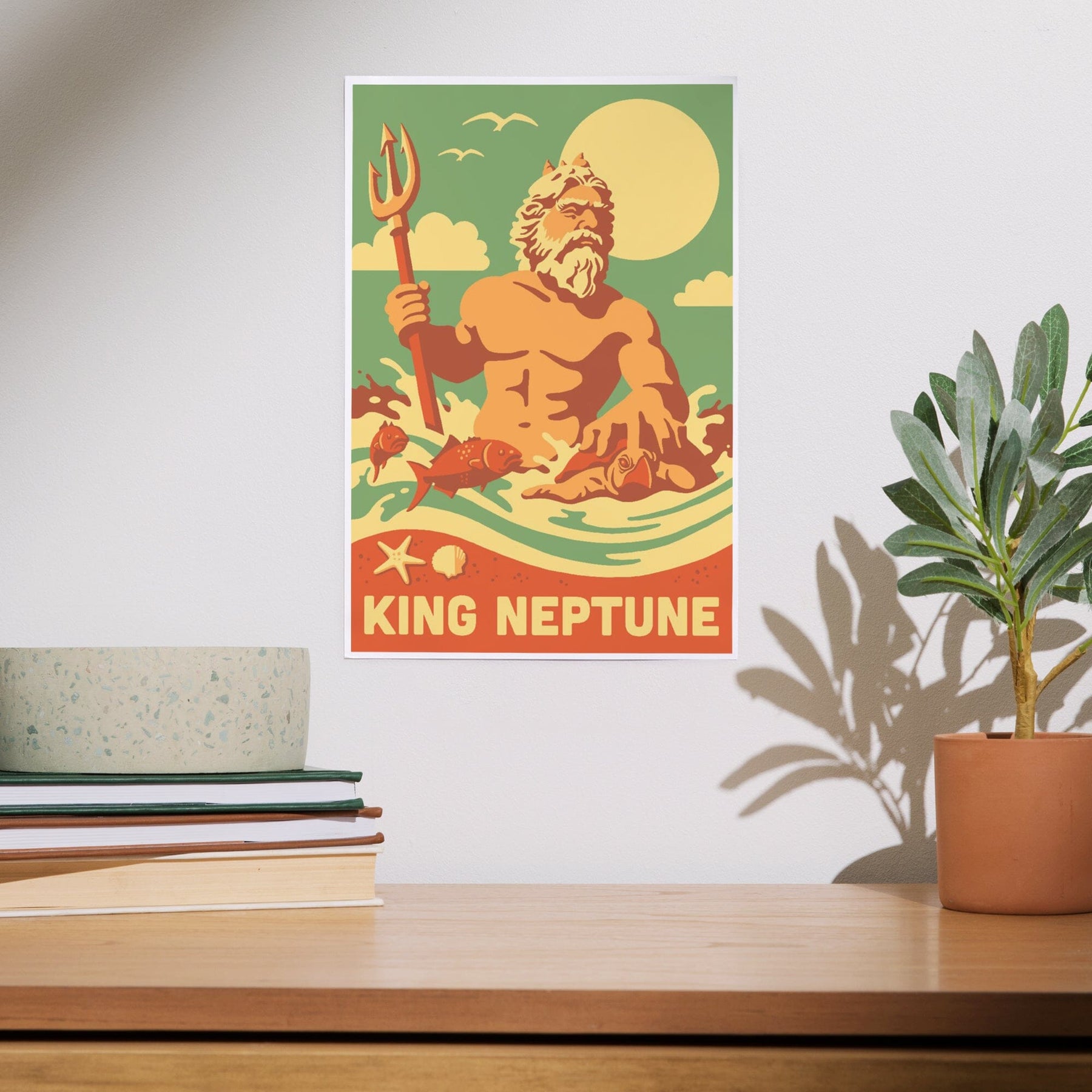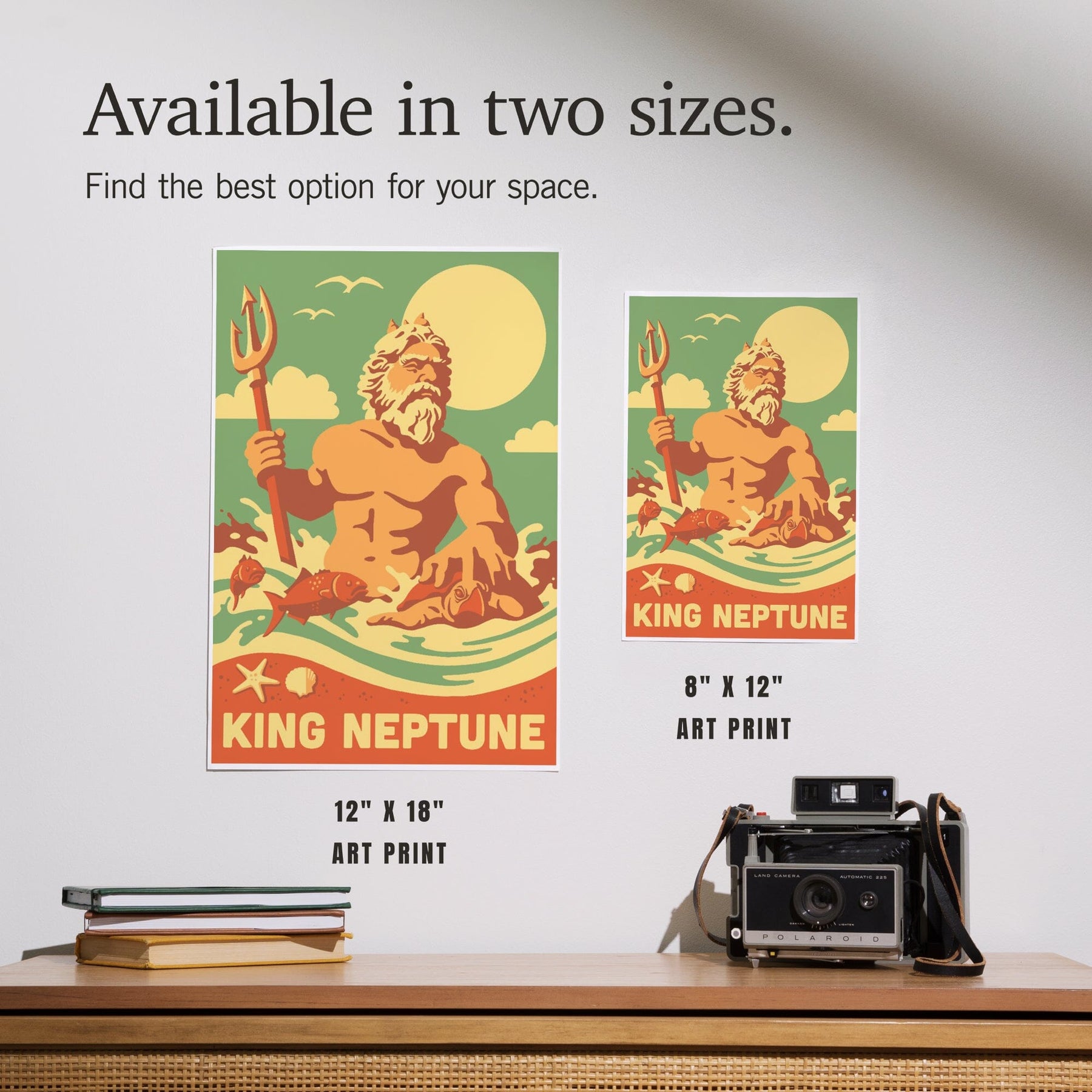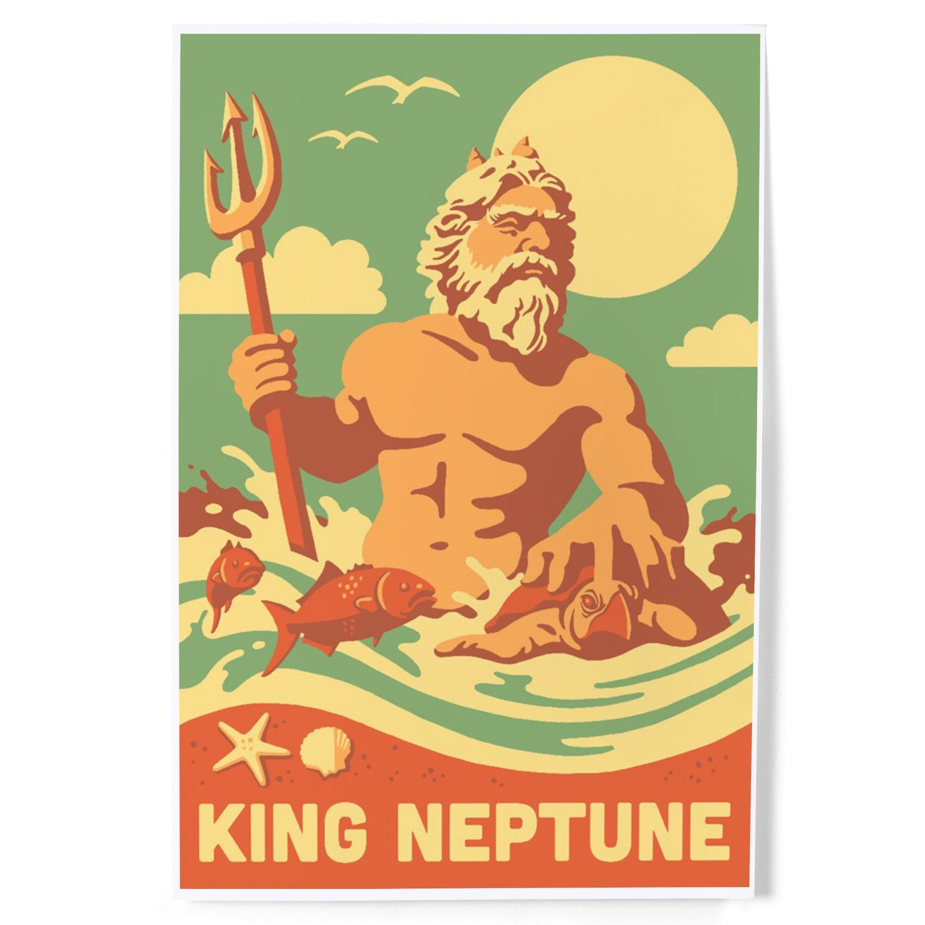 King Neptune Statue, Retro Beach, Art & Giclee Prints - Lantern Press