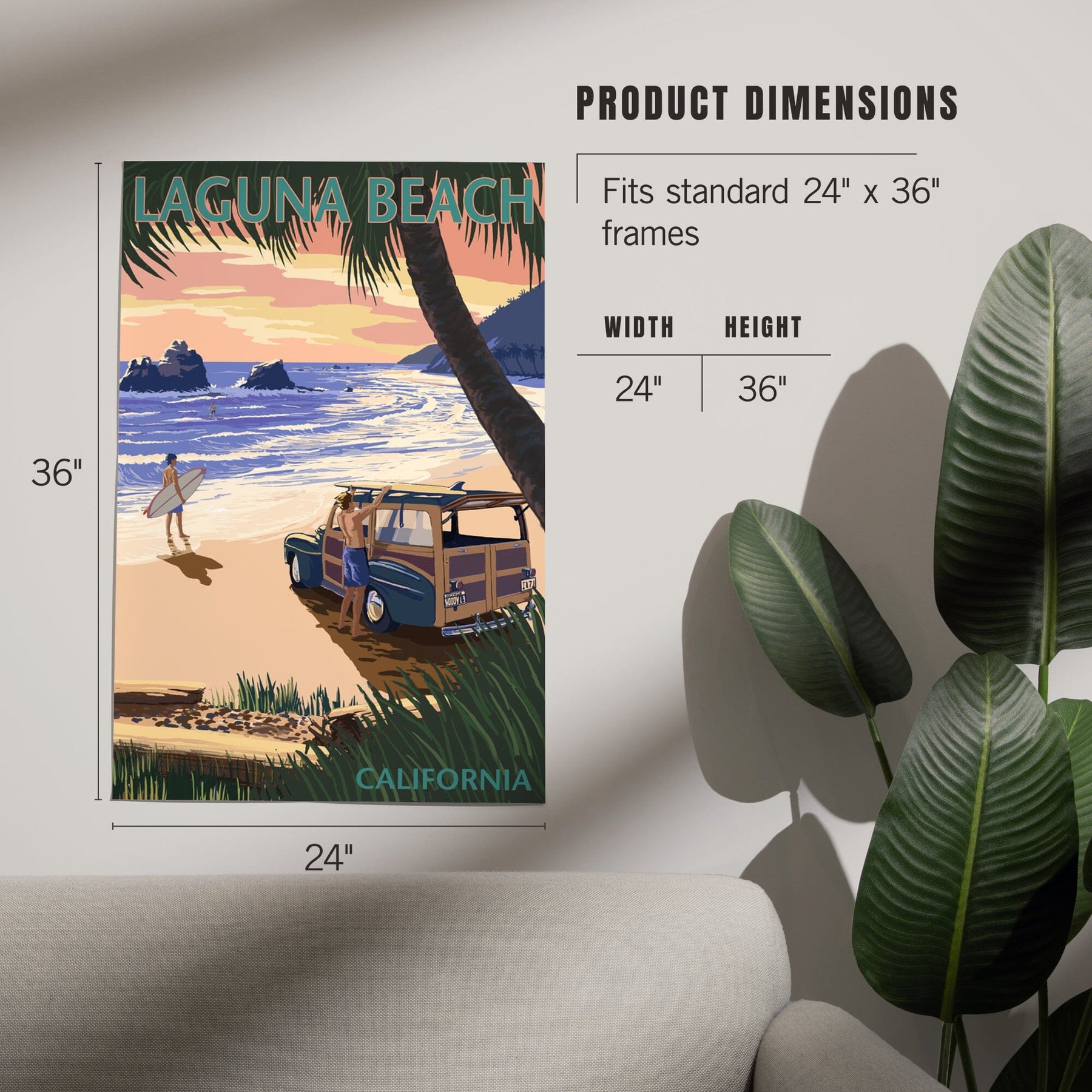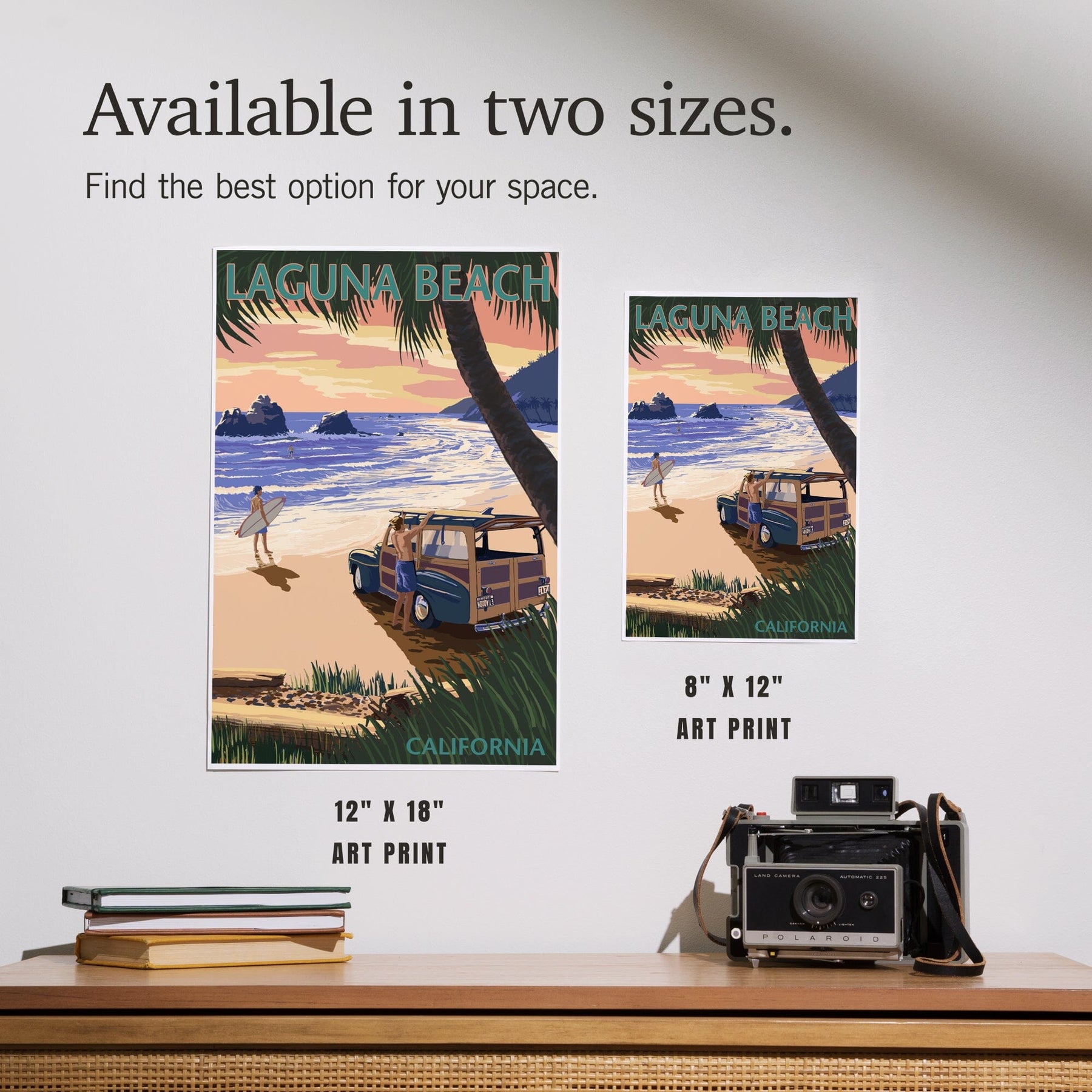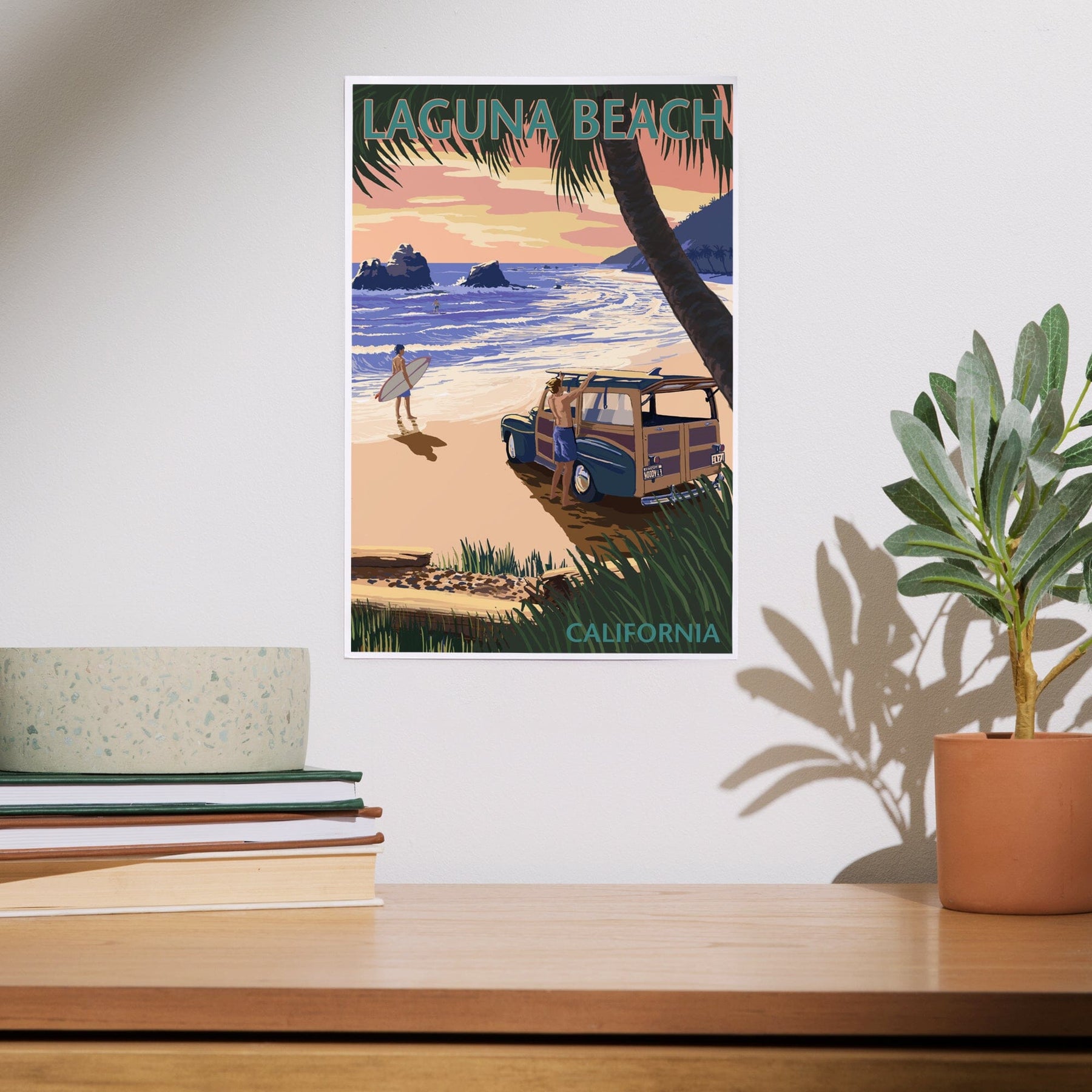 Laguna Beach, California, Woody on the Beach with Palm, Art & Giclee Prints - Lantern Press