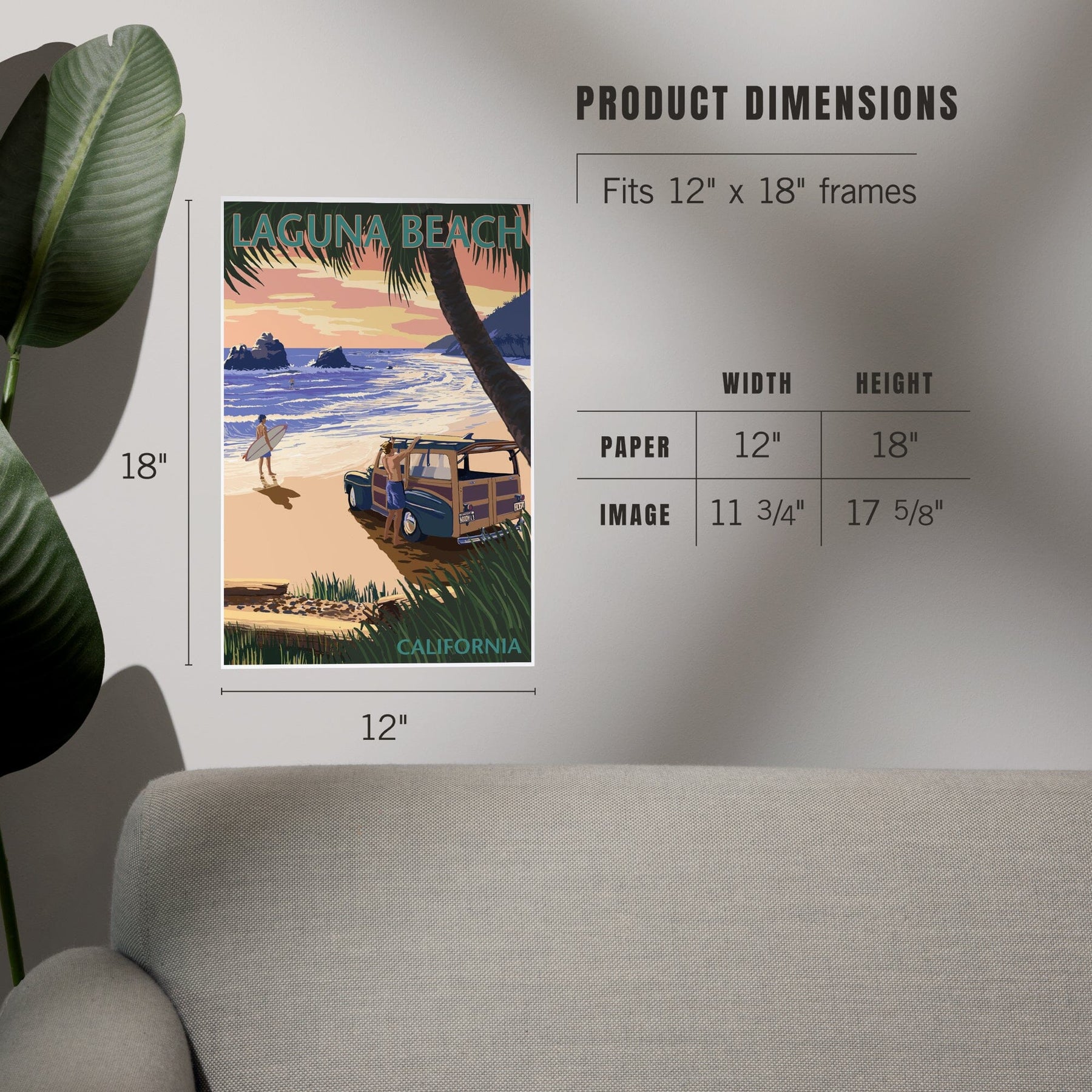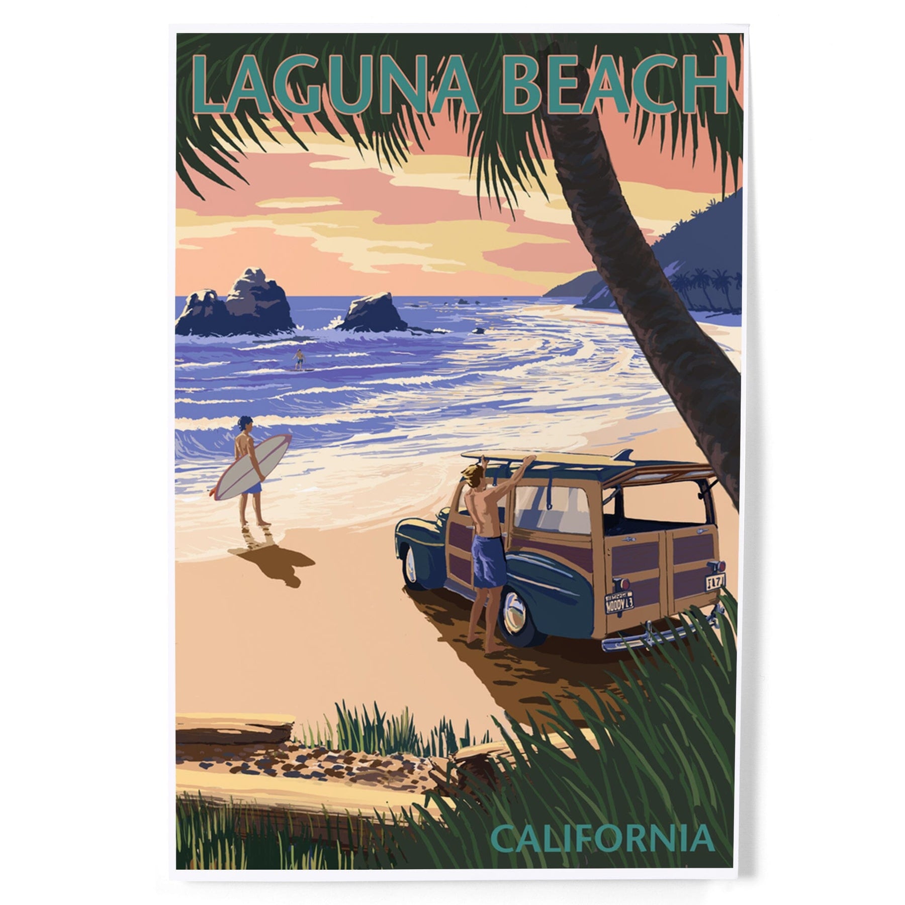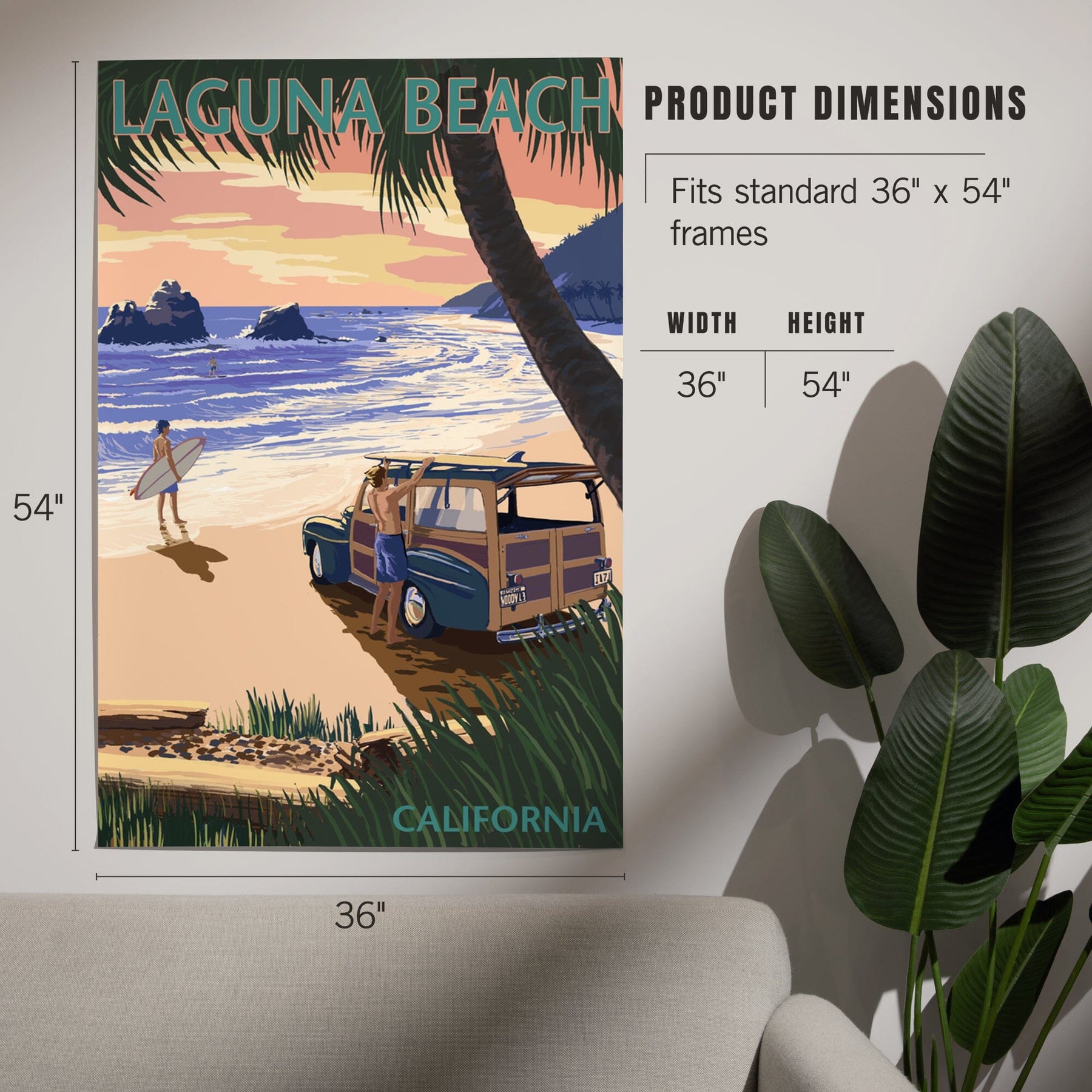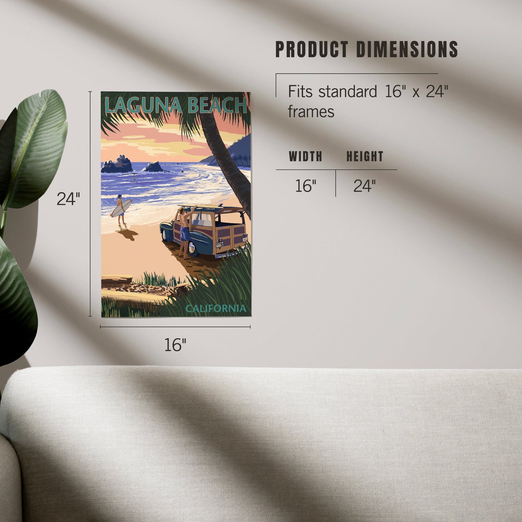 Laguna Beach, California, Woody on the Beach with Palm, Art & Giclee Prints - Lantern Press