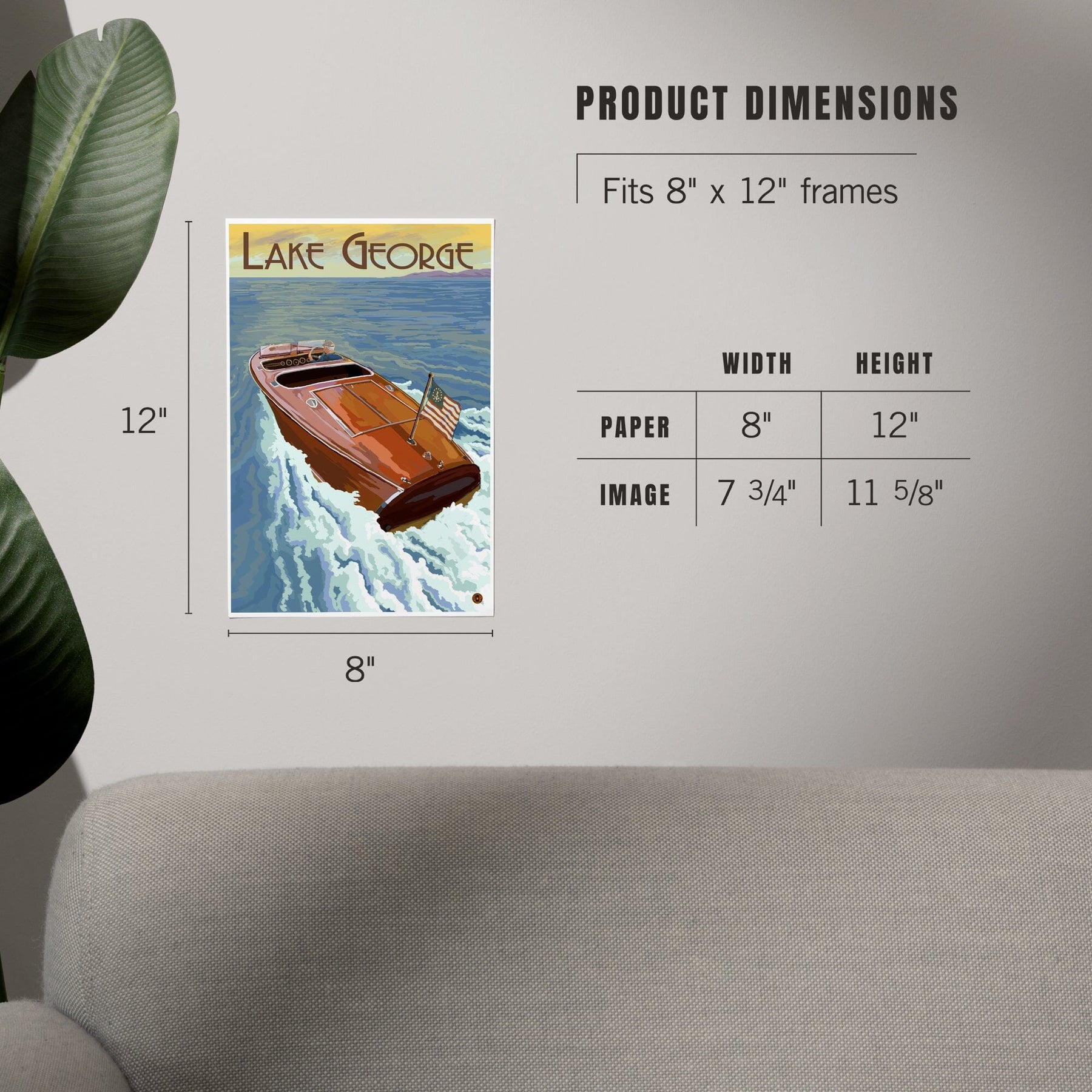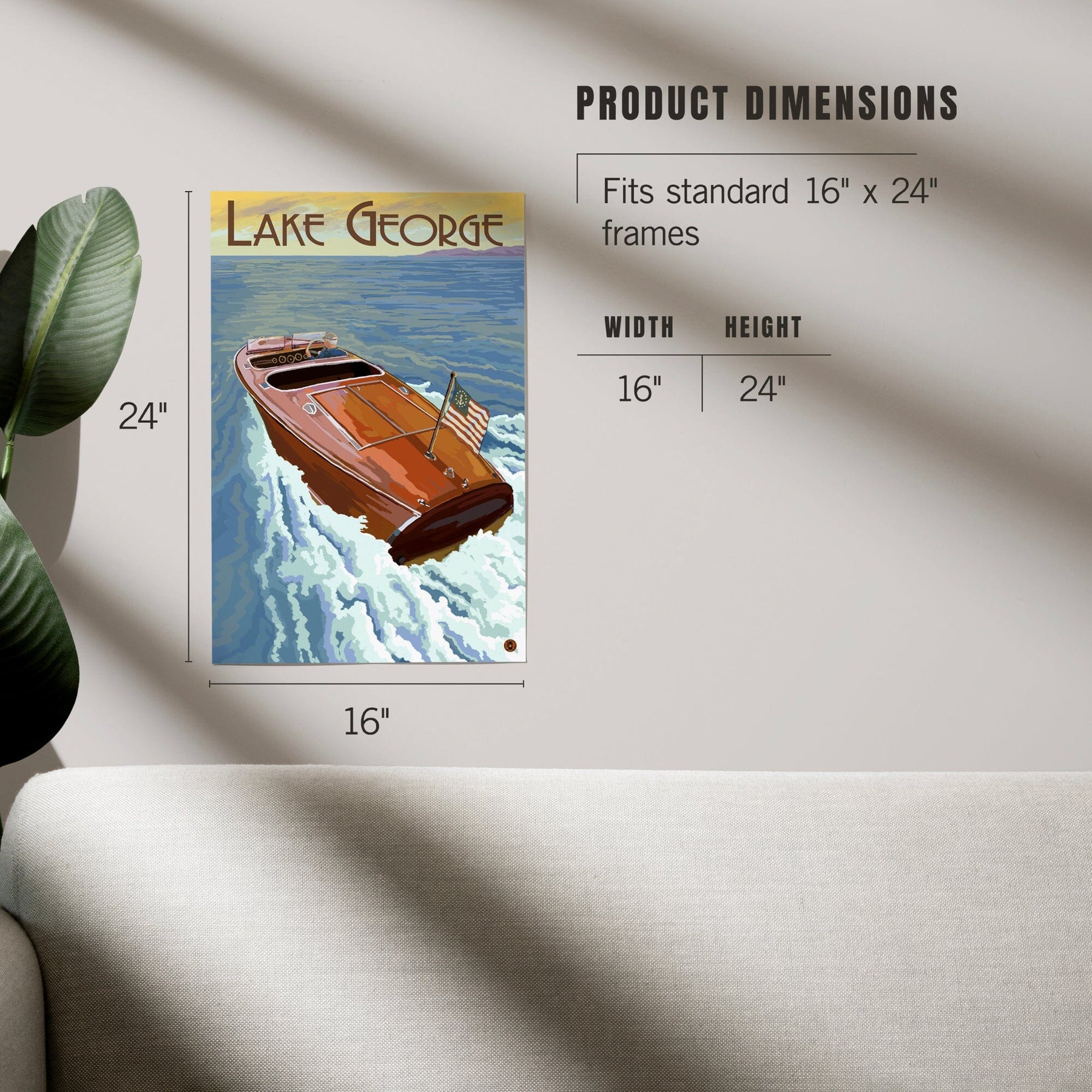 Lake George, New York, Wooden Boat on Lake, Art & Giclee Prints
