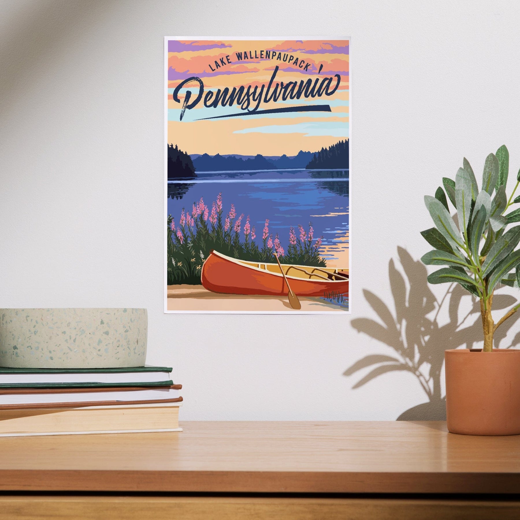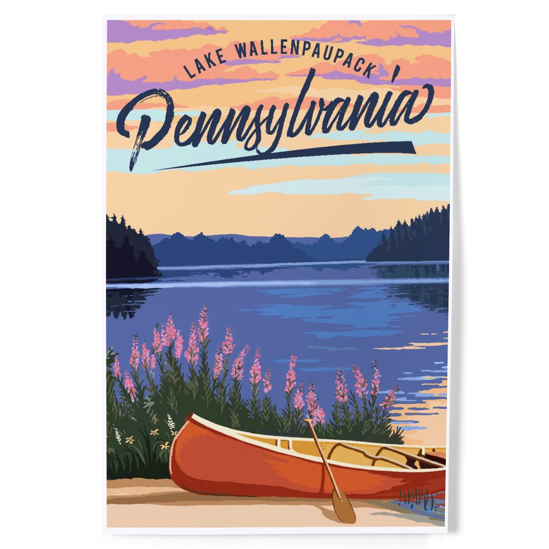 Lake Wallenpaupack, Pennsylvania, Canoe and Lake, Art & Giclee Prints - Lantern Press